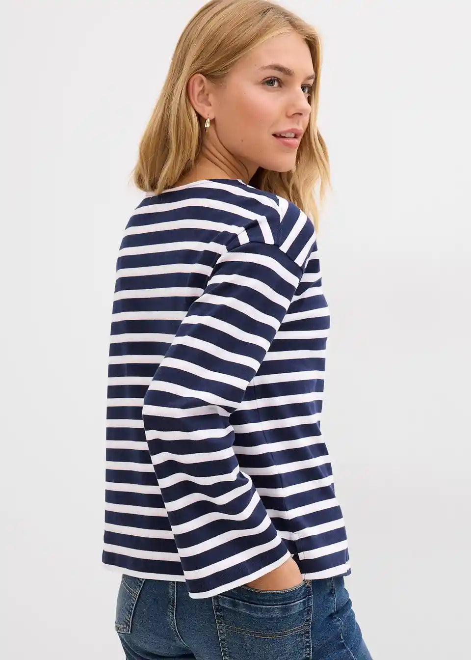 Ohlapno krojena majica z dolgimi rokavi in ladijskim izrezom