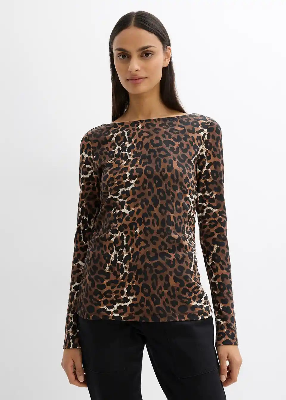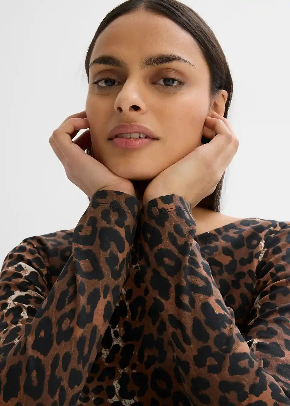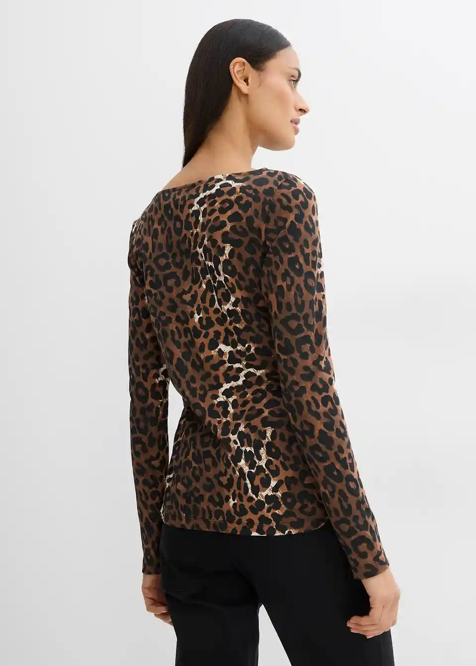 Trendovska majica z dolgimi rokavi z naborki in leopardjim vzorcem