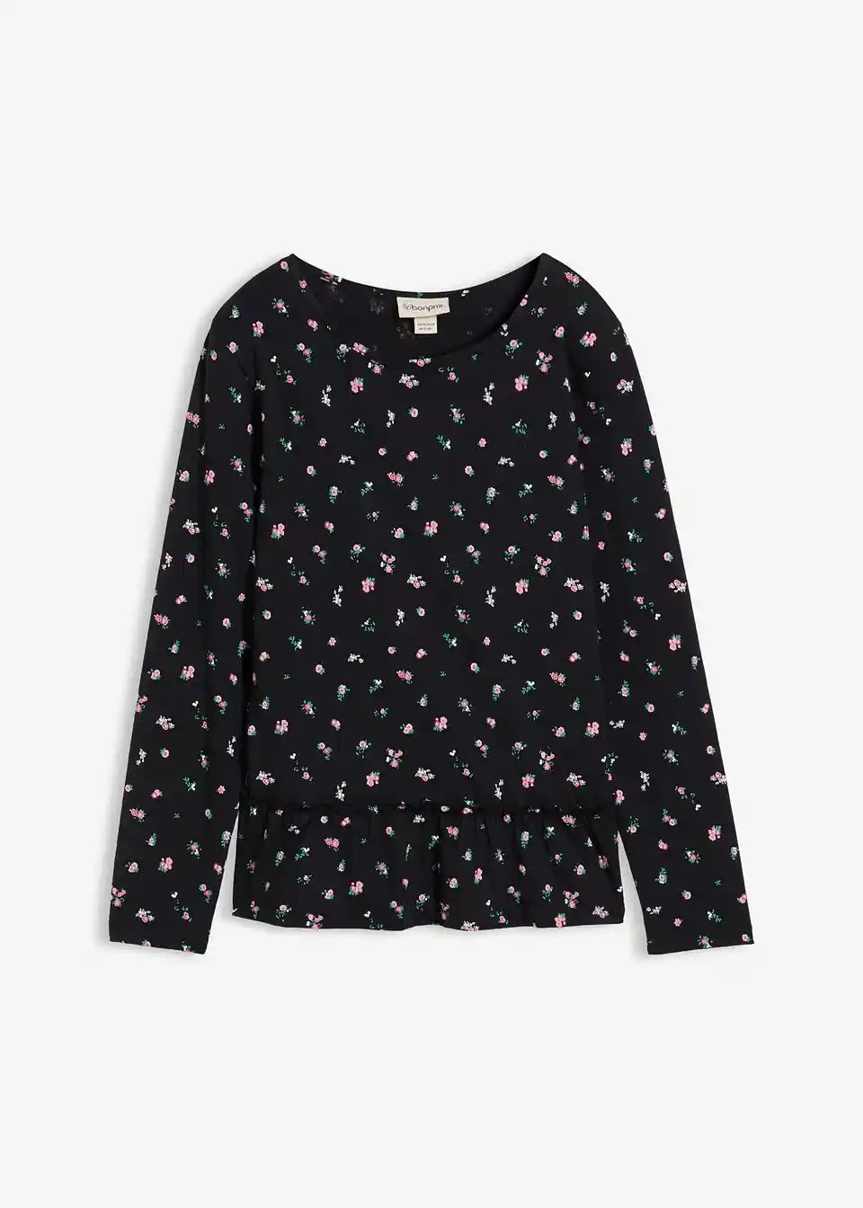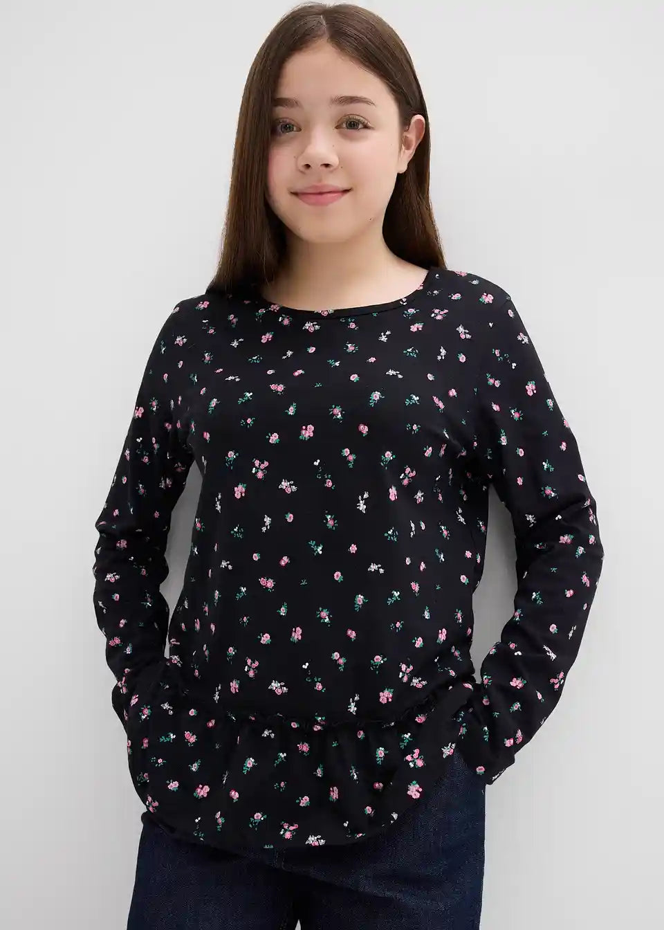 Igriva majica z dolgimi rokavi za dekleta z volani