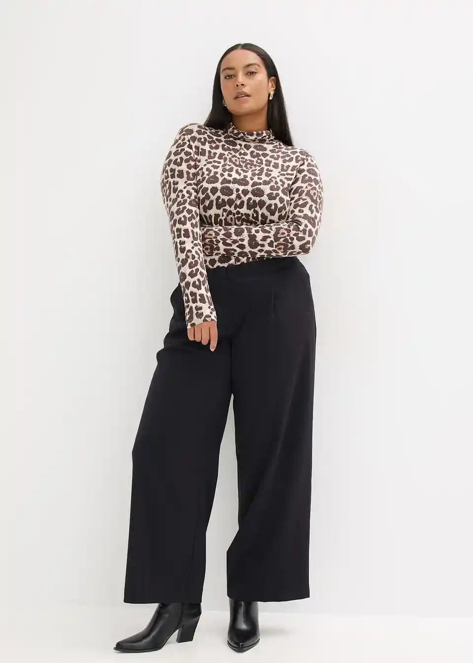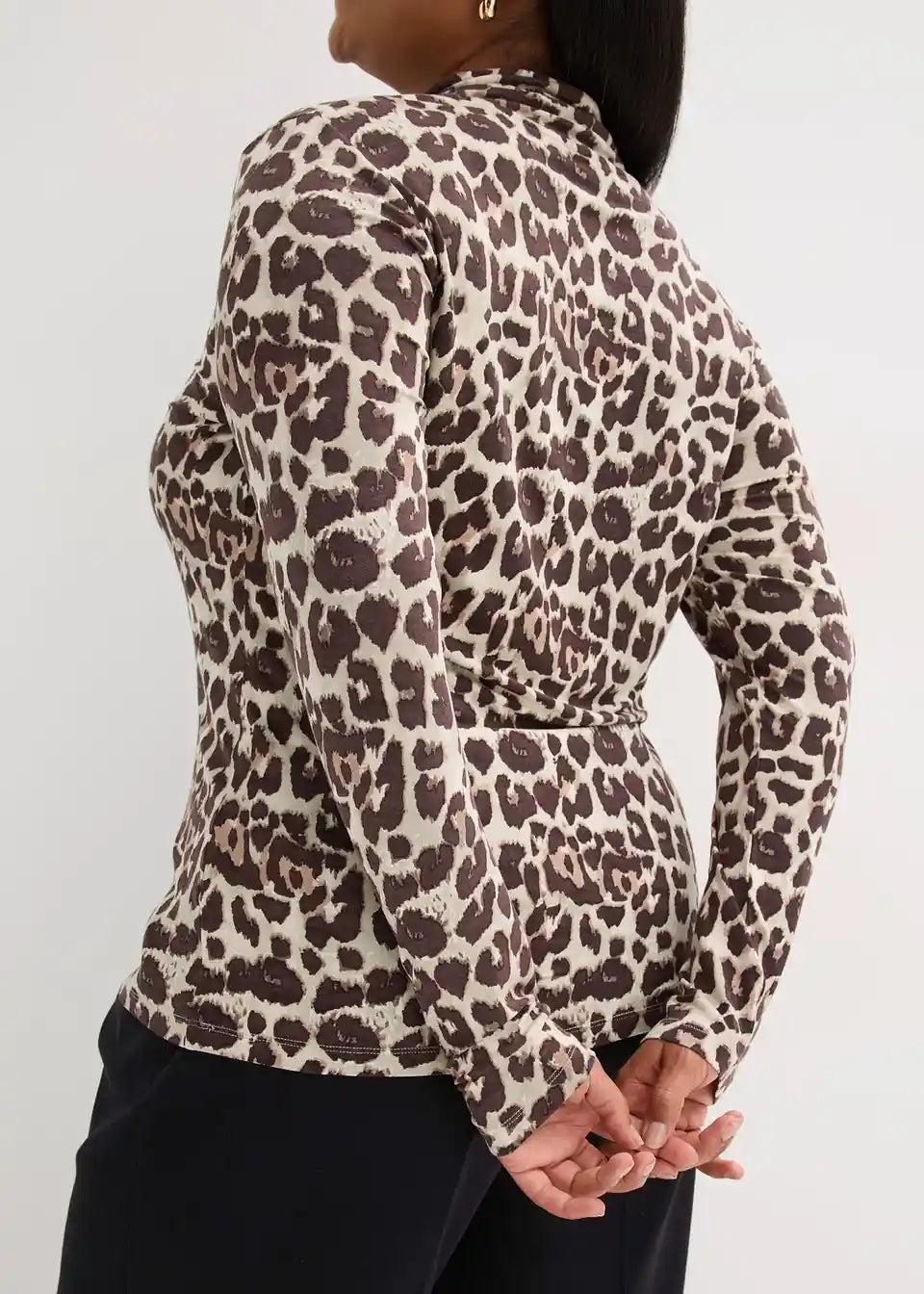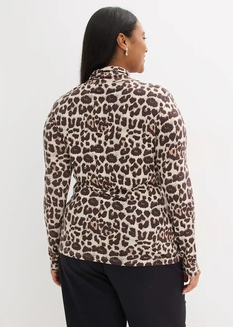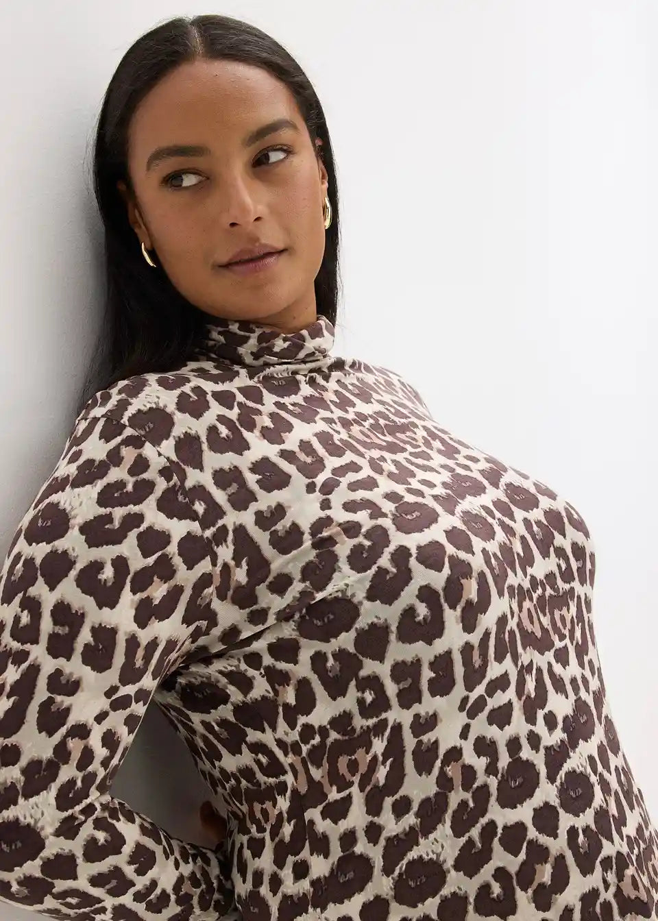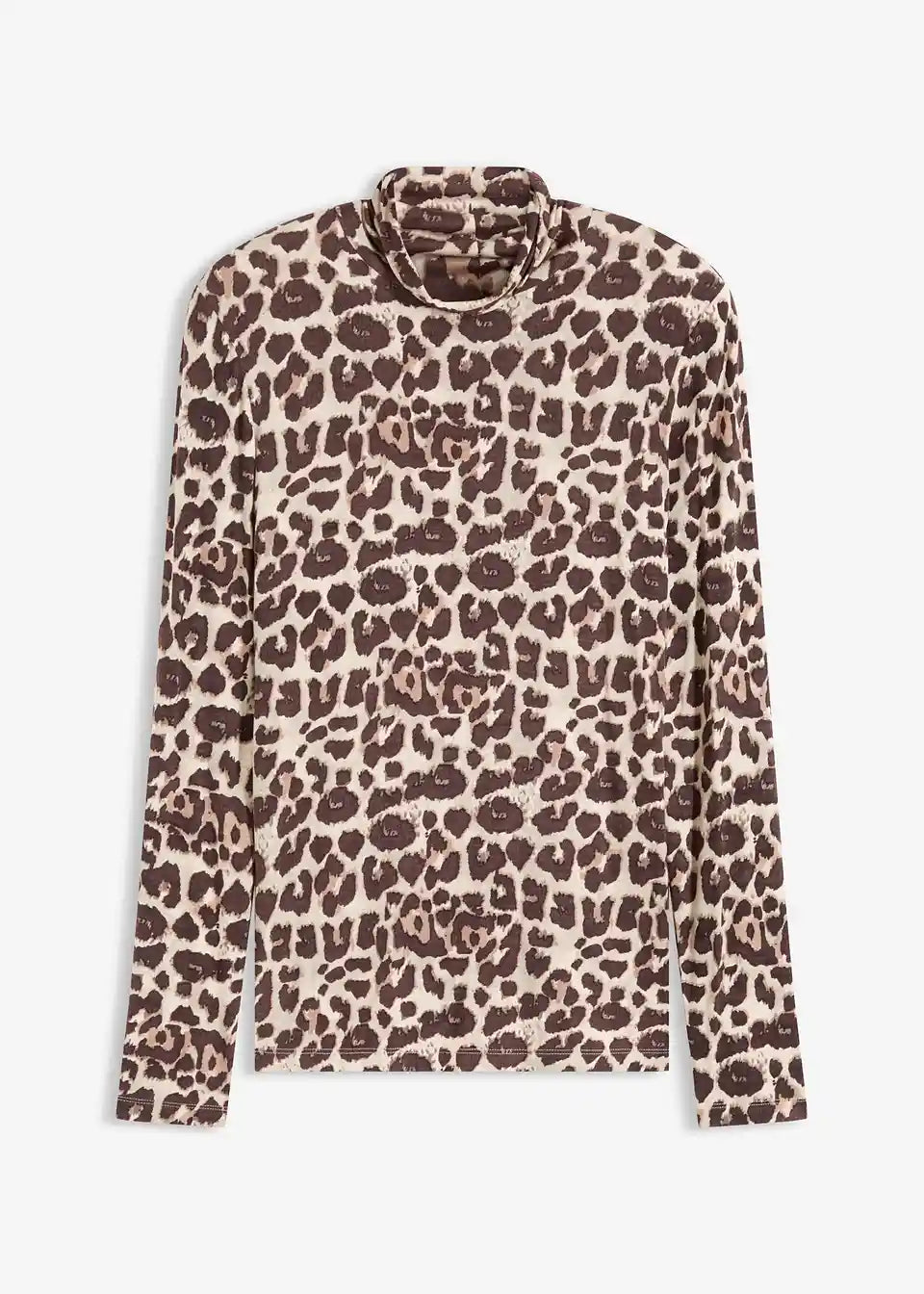 Modna majica z dolgimi rokavi s potiskom. Iz mehke viskozne mešanice s pokončnim ovratnikom