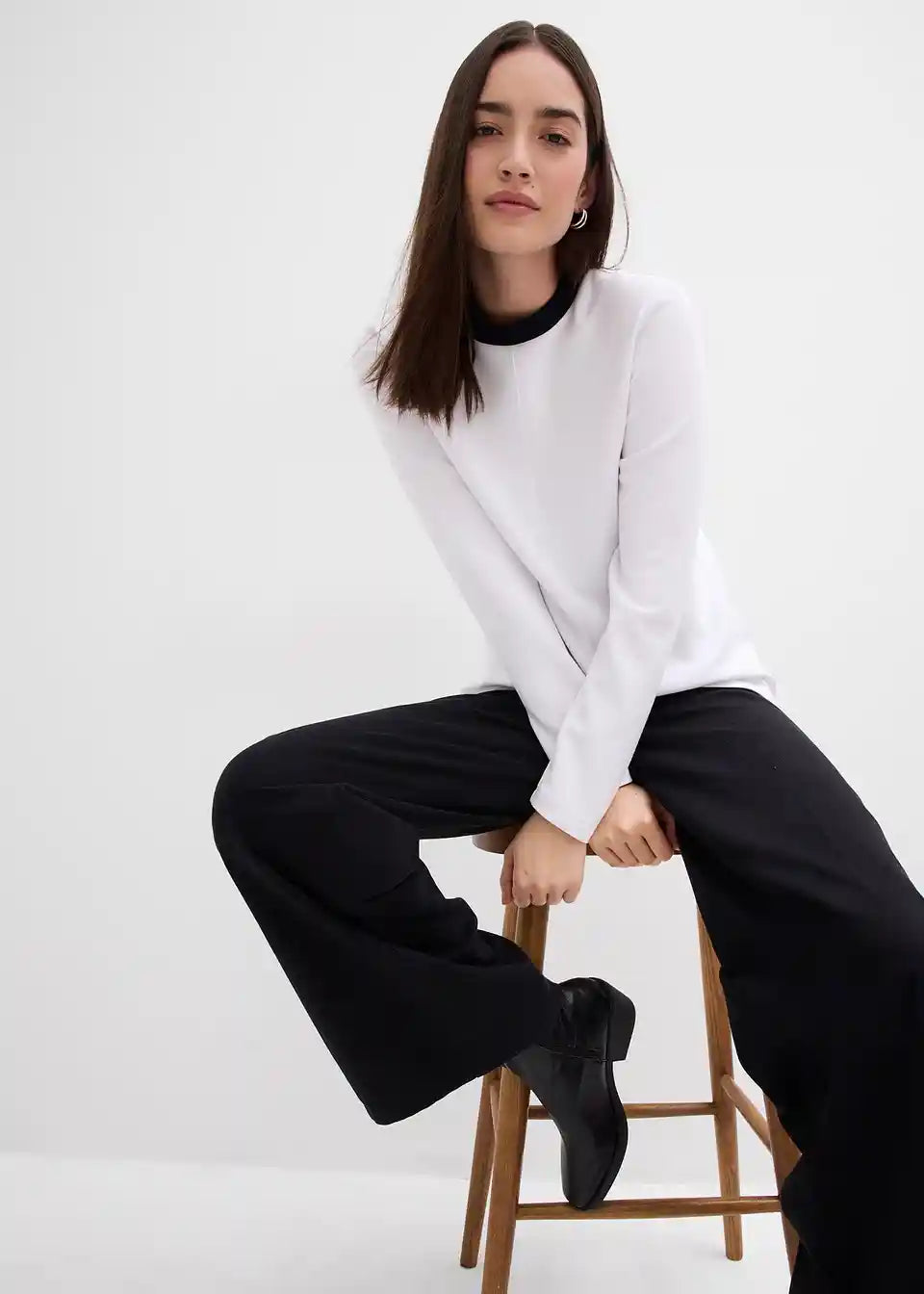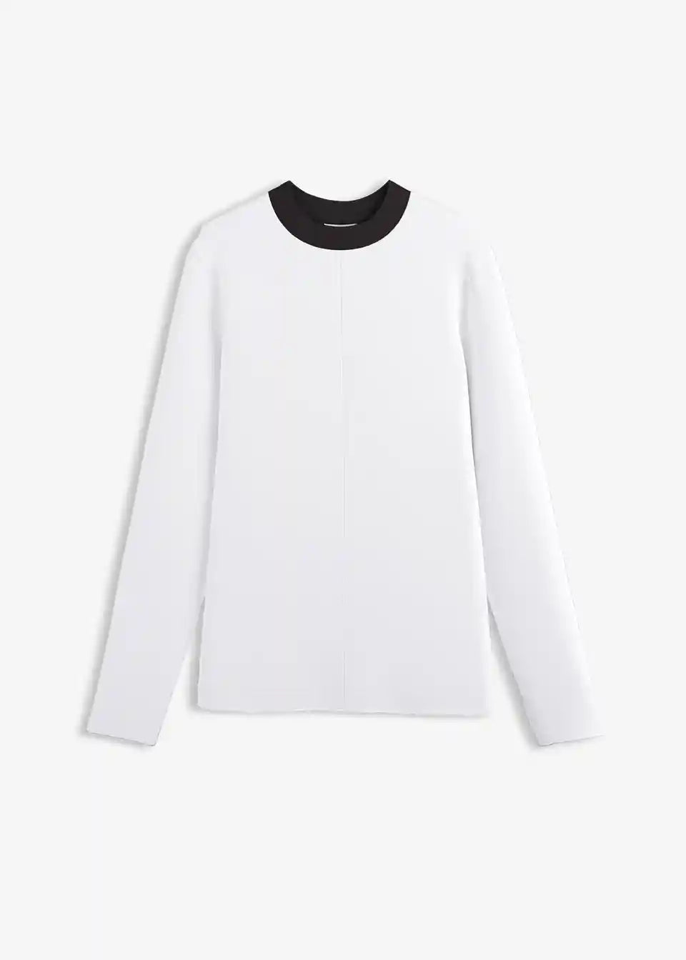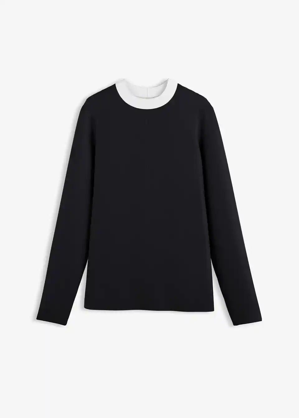 Majica z dolgimi rokavi iz viskozne mešanice s kontrastnim pokončnim ovratnikom