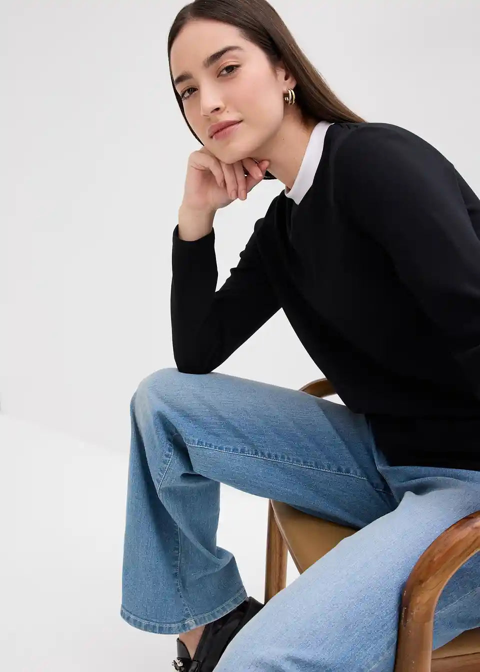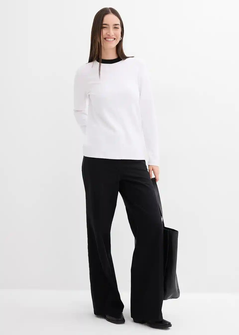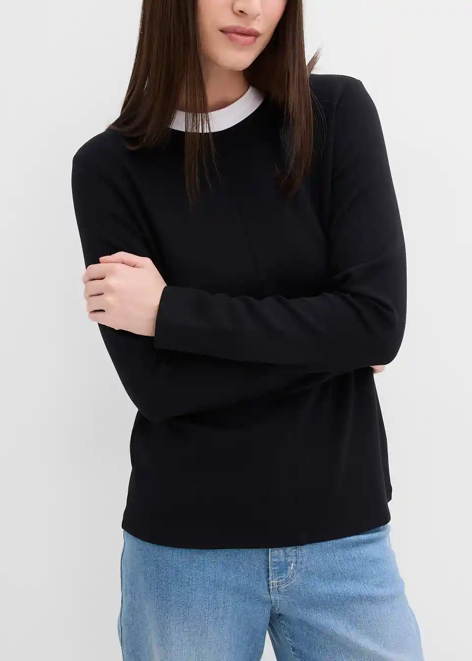 Majica z dolgimi rokavi iz viskozne mešanice s kontrastnim pokončnim ovratnikom
