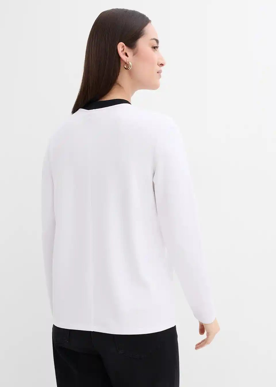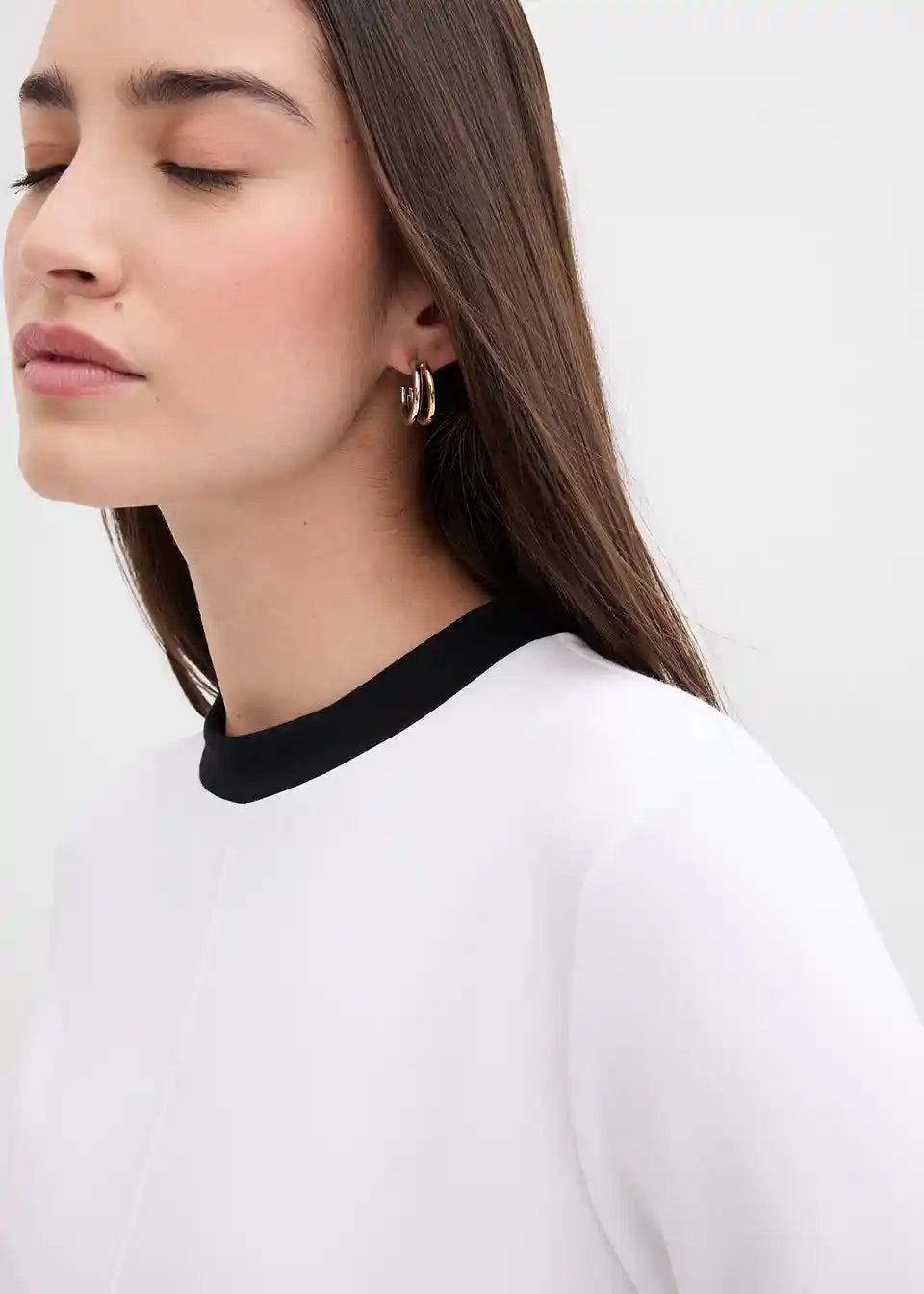 Padajoča majica s pokončnim ovratnikom in dolgimi rokavi v kontrastni barvi