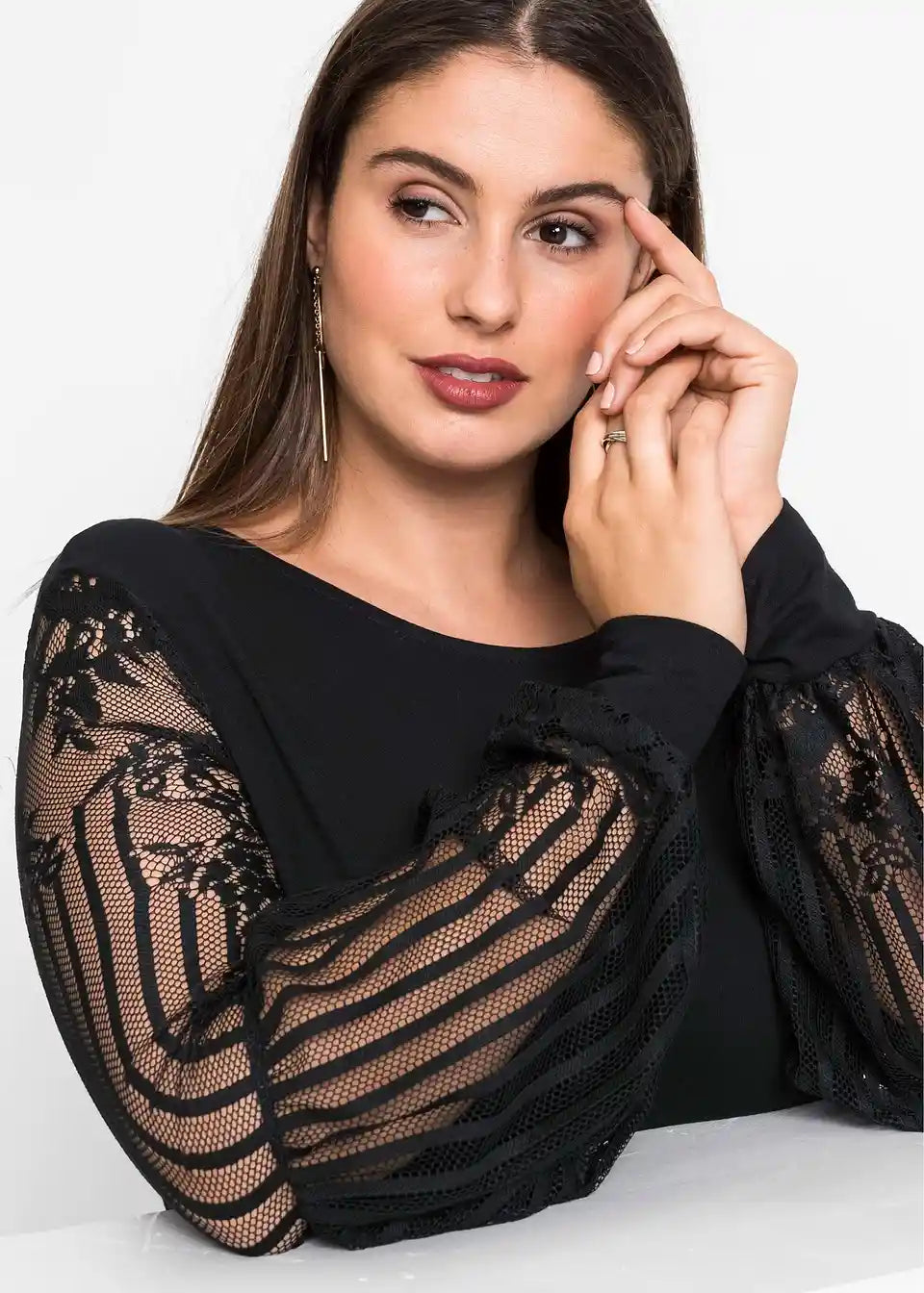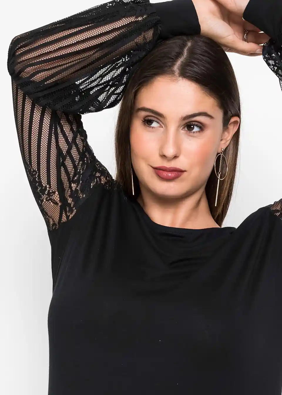 Elegantna majica z dolgimi rokavi in balonastimi čipkastimi rokavi