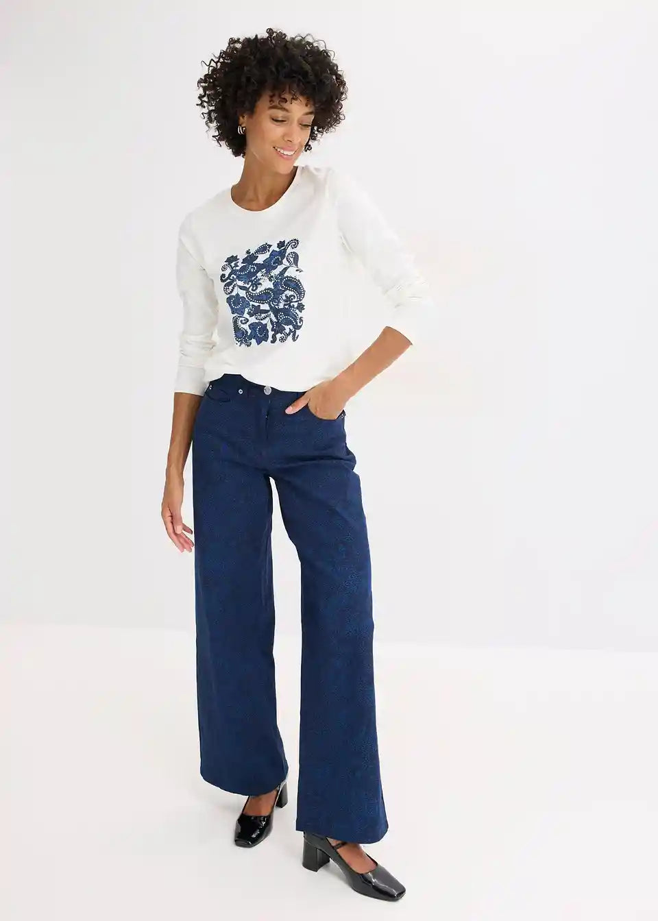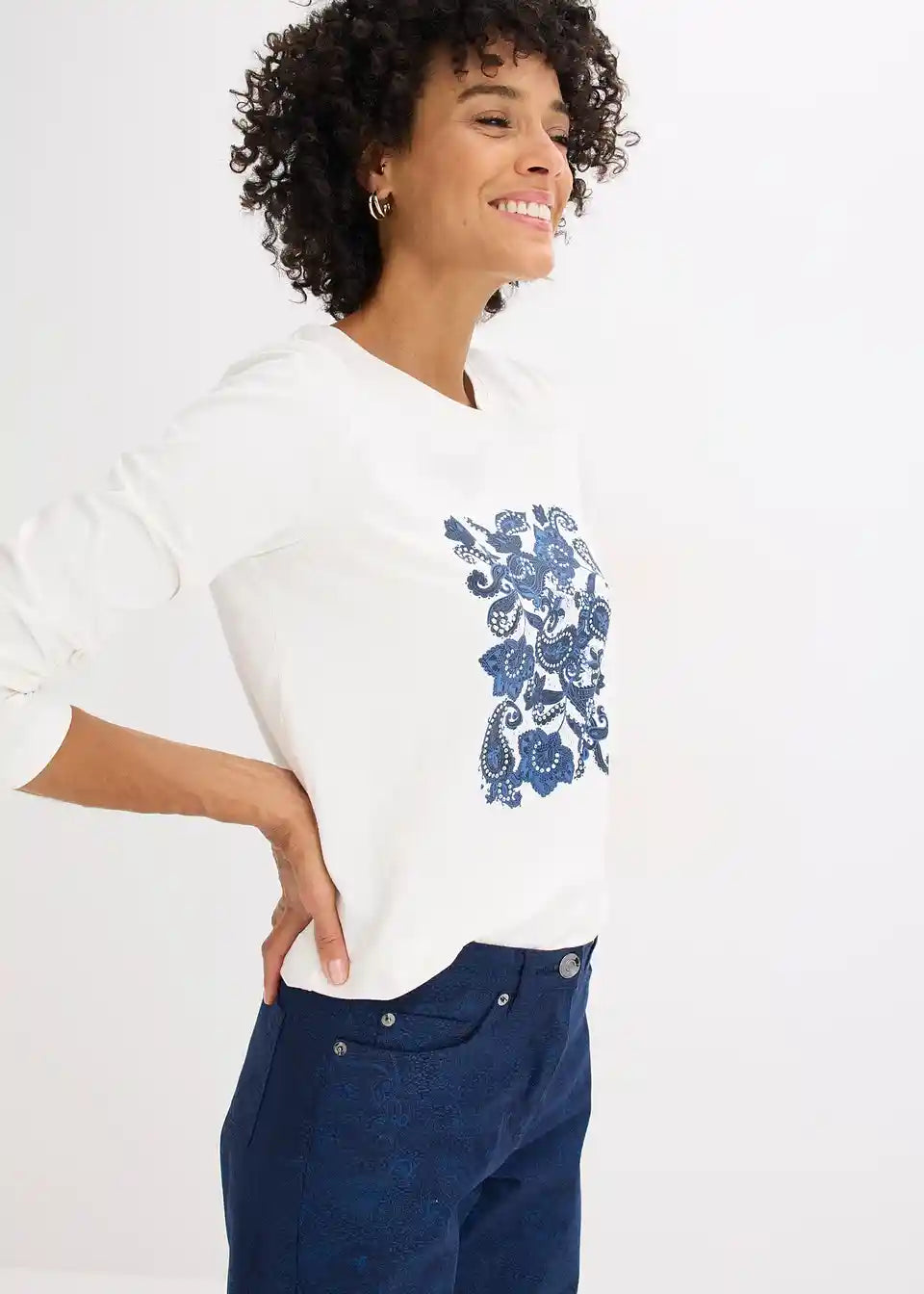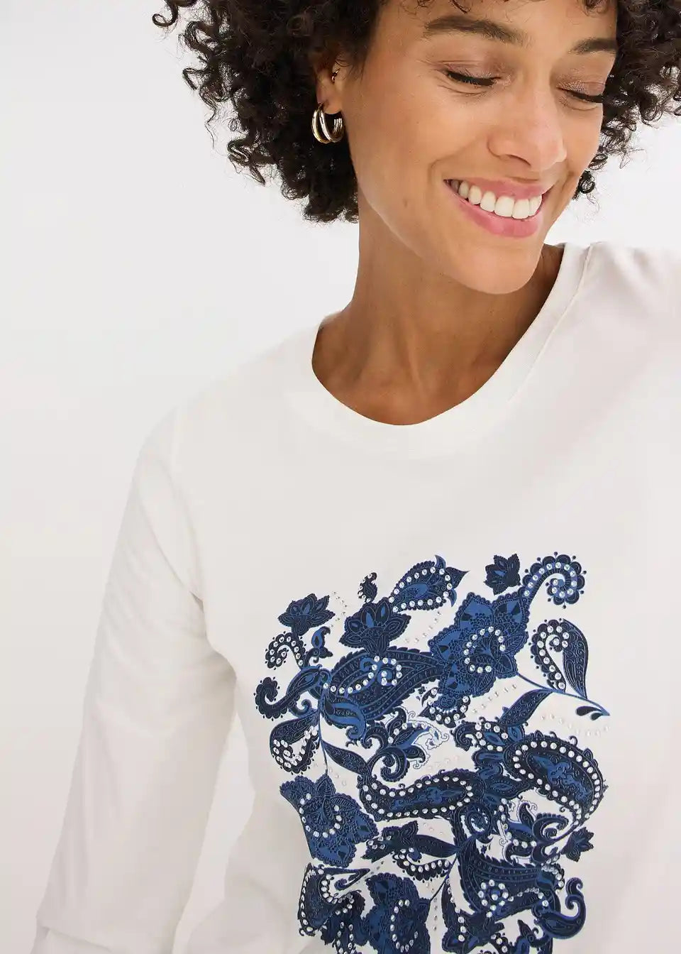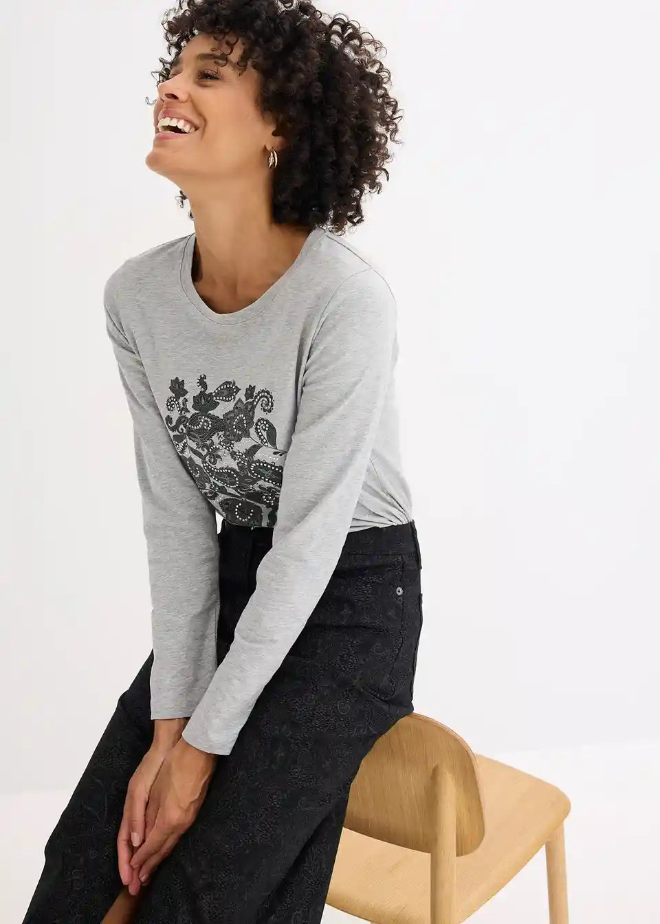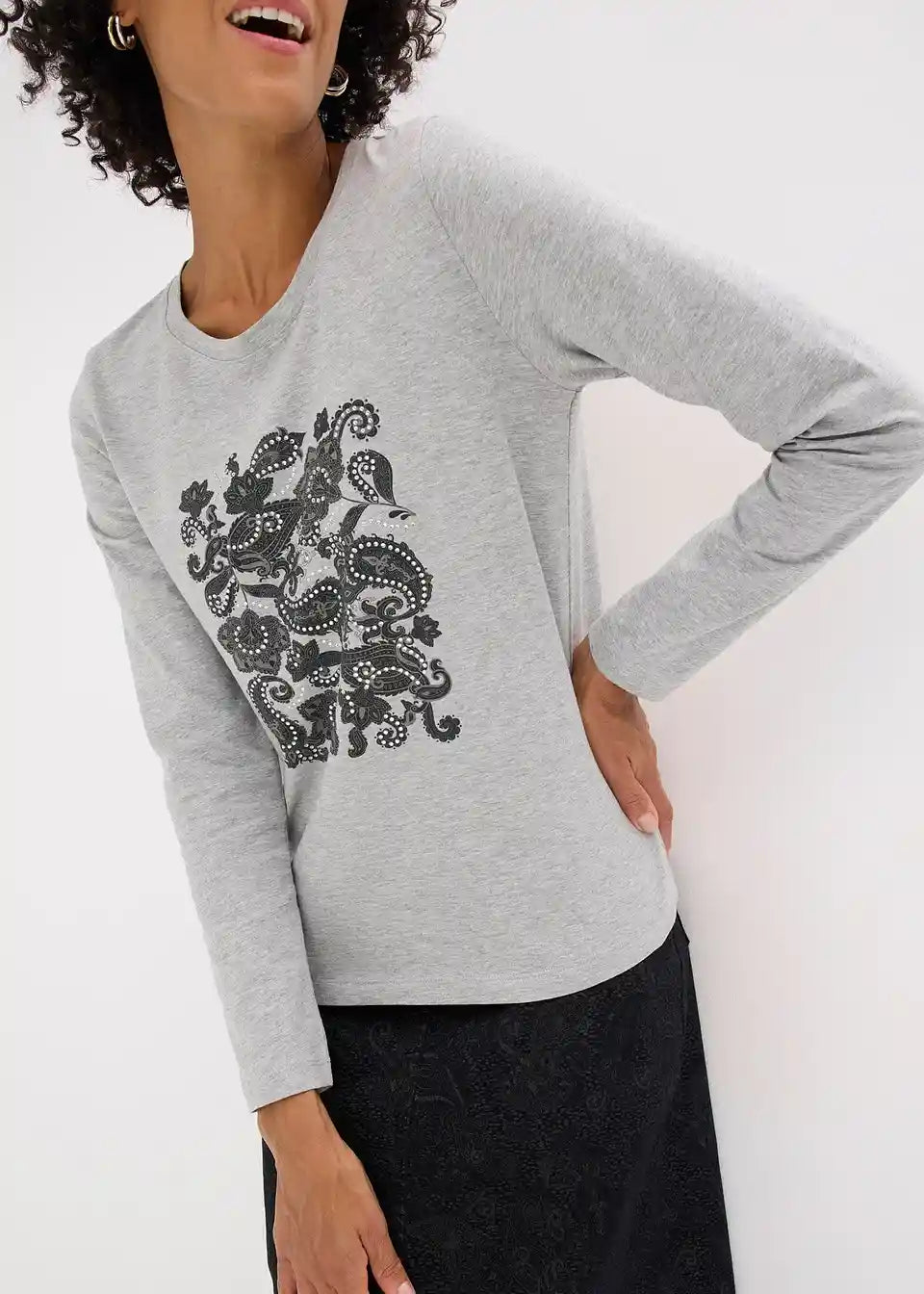 Elegantna majica z dolgimi rokavi in velikim potiskom