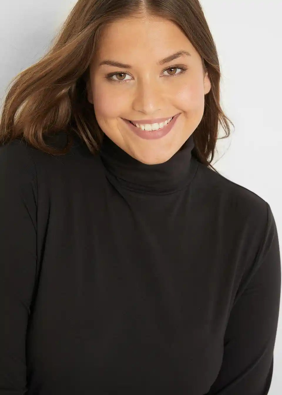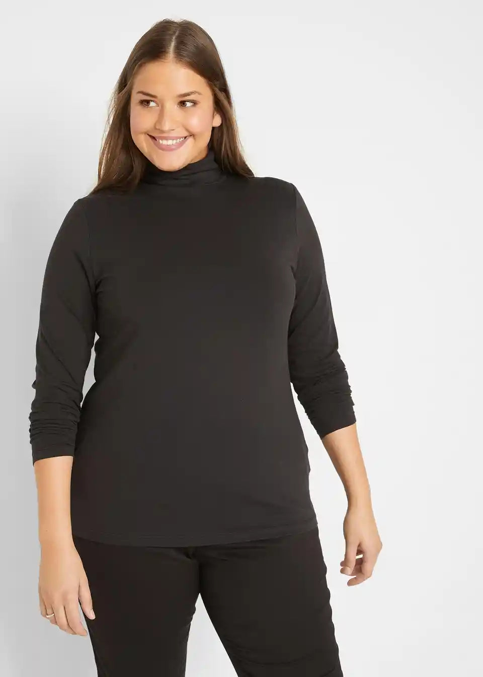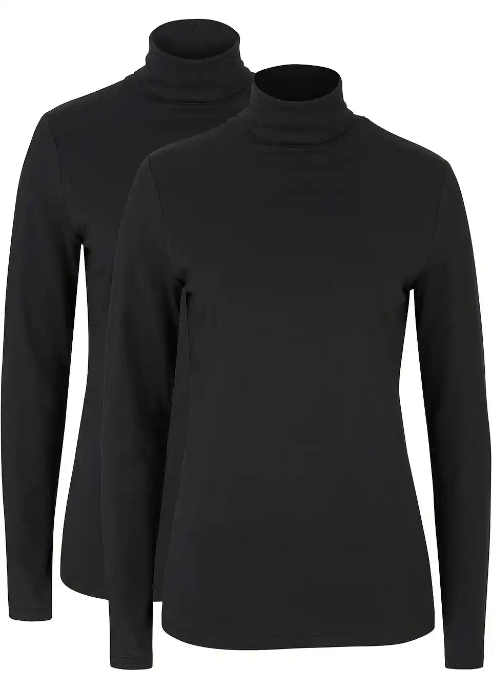 Osnovna raztegljiva majica z visokim ovratnikom v dvojnem pakiranju, dolg rokav