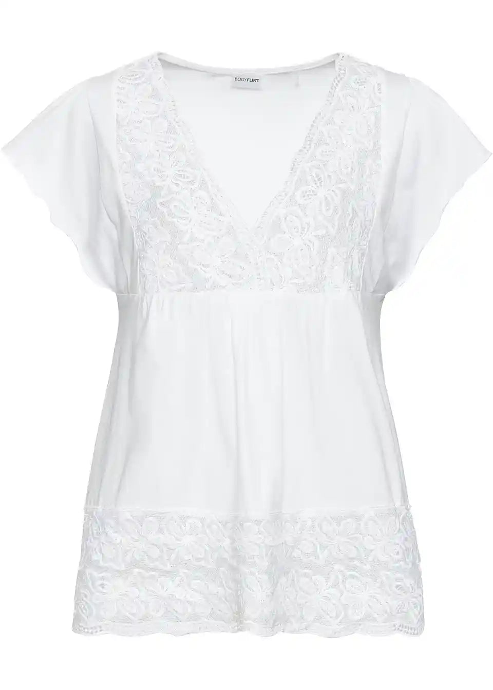 Material:zgornji material: 50% bombaž, 50% viskoza (certificirana), čipka: 100% poliester