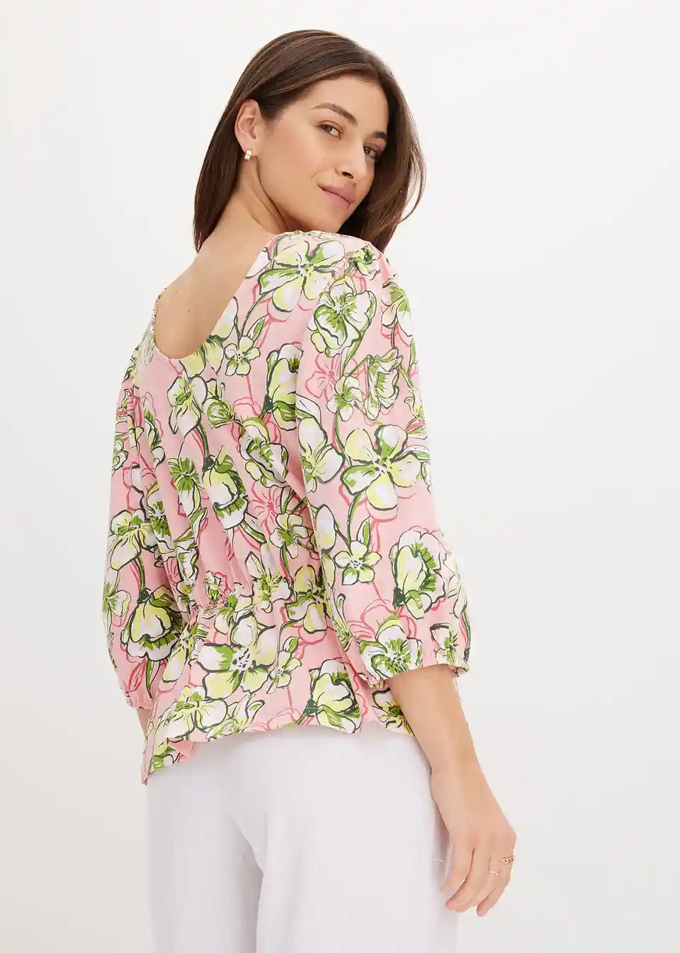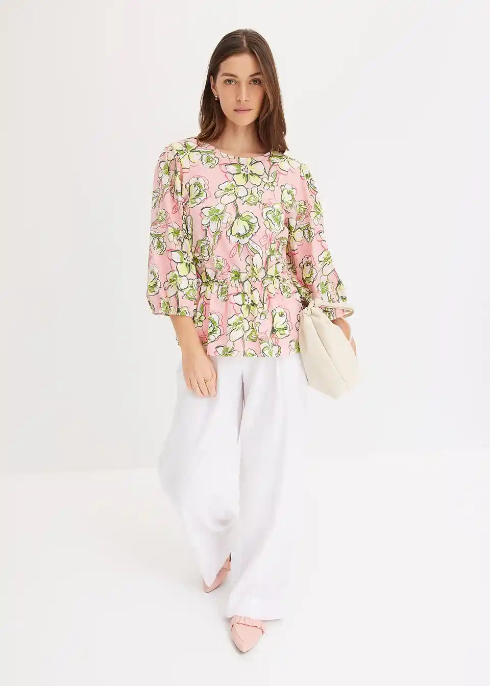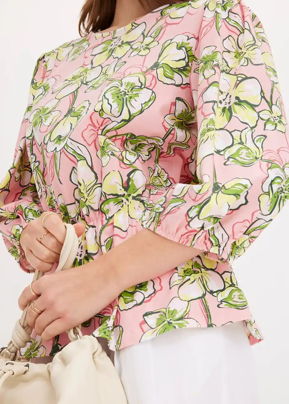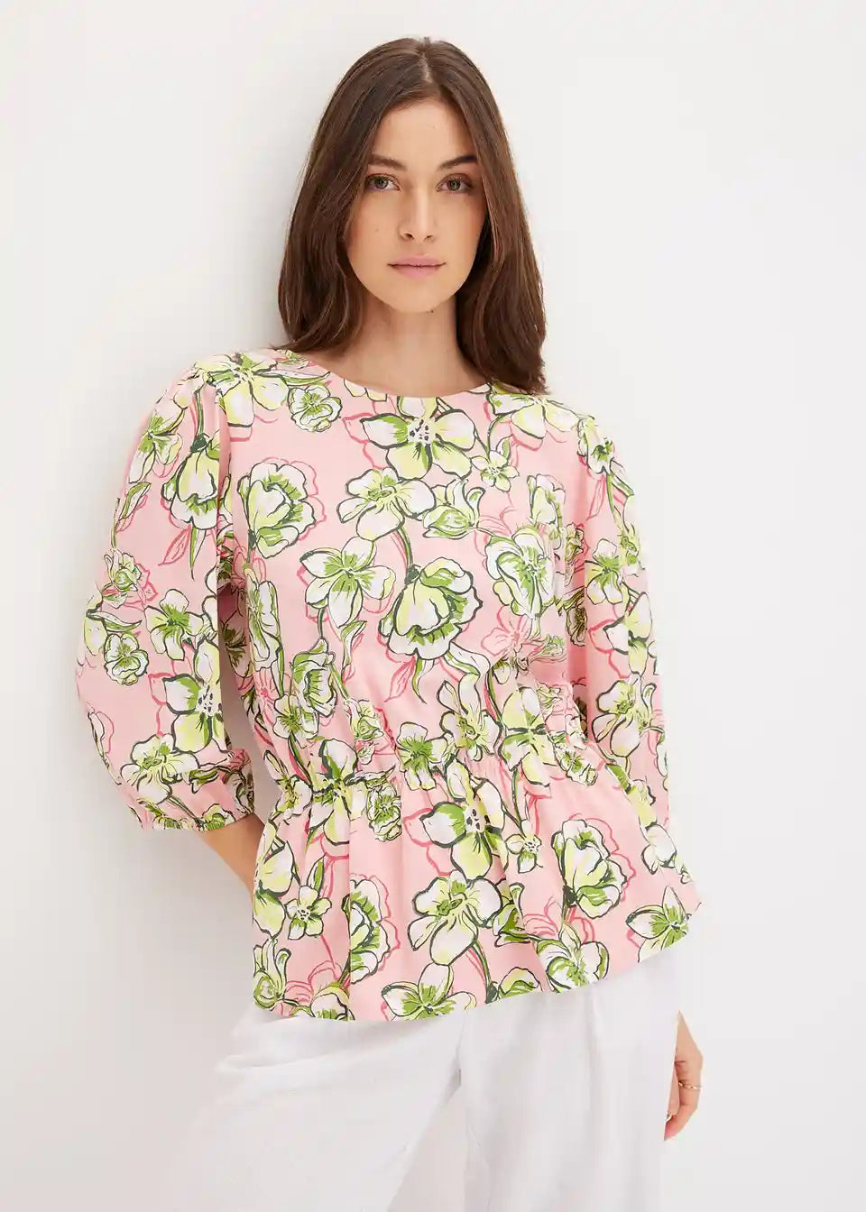 Majica z napihnjenimi rokavi in elastičnim pasnim delom