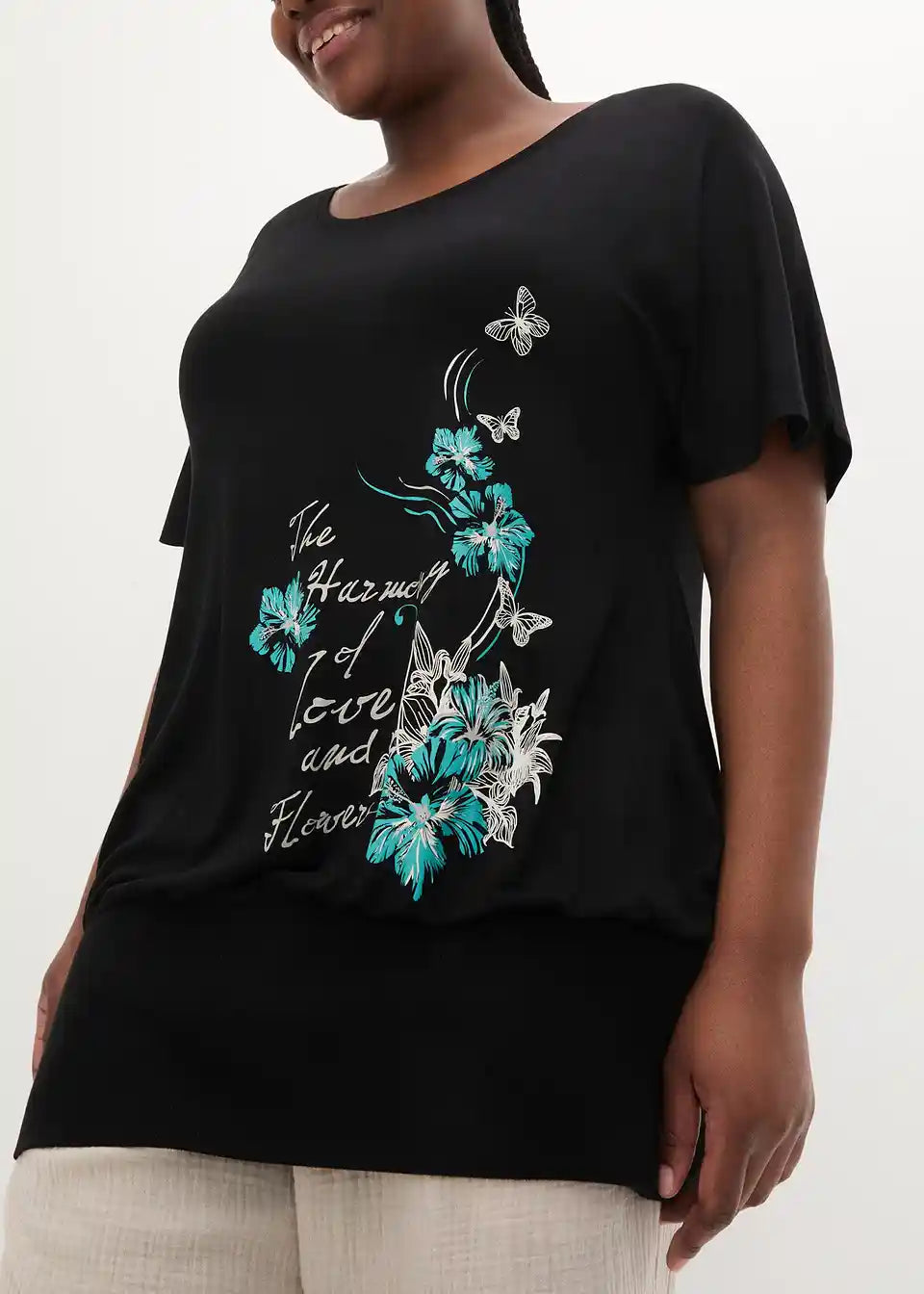 Udobno krojena majica z ladijskim izrezom, čudovitim potiskom in širokim patentom na robu