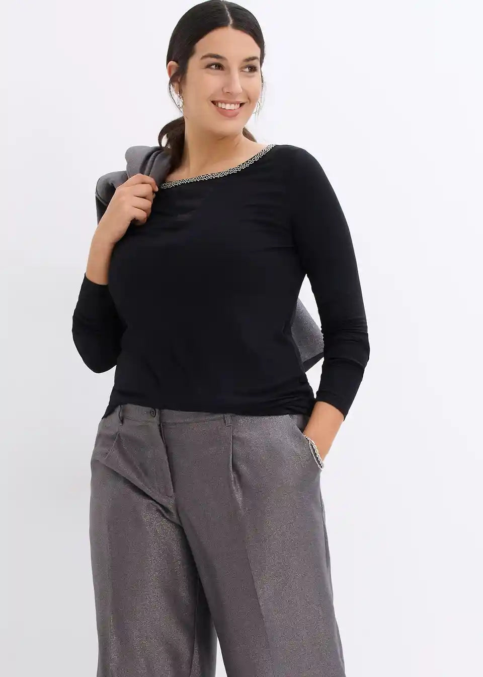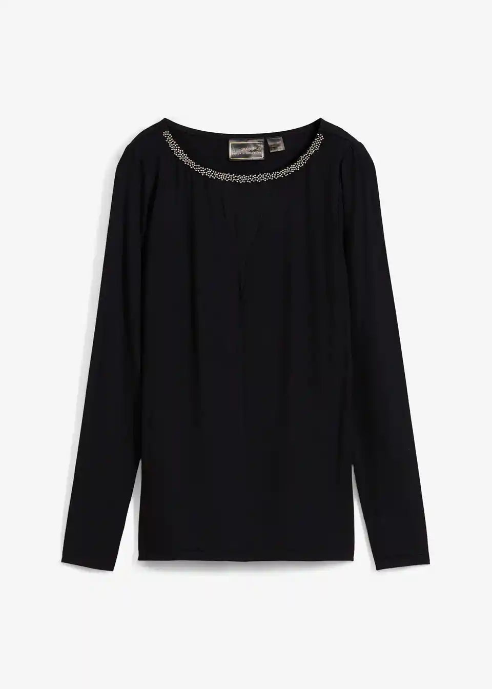 Elegantna majica z dolgimi rokavi in skrbno izdelano dekoracijo