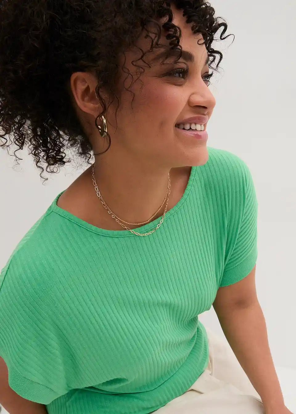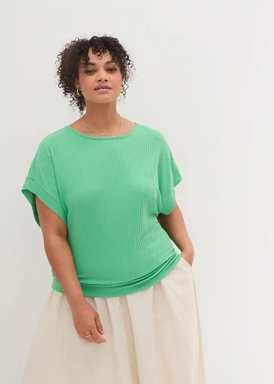 Majica z netopirskimi rokavi z rebrasto strukturo