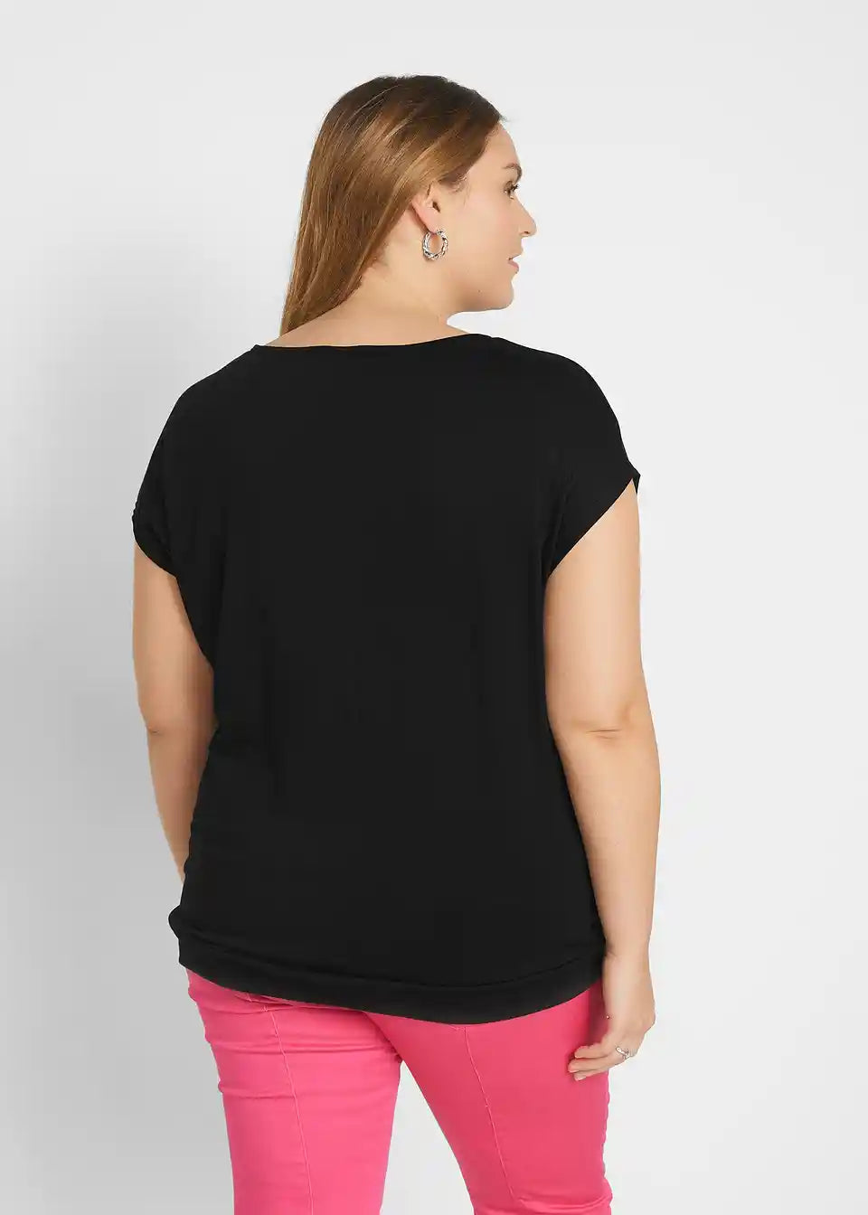 Ta majica blagovne znamke bpc je lep dodatek za vsakodnevne kombinacije. Majica s spuščeniimi rokavi zahvaljujoč ohlapnemu kroju lepo ovije postavo. Ima širok V-izrez z zadrgo. Prišit rob zaokroži dizajn majice. V kombinaciji z oprijetimi kavbojkami in supergami izgleda ta majica odlično.