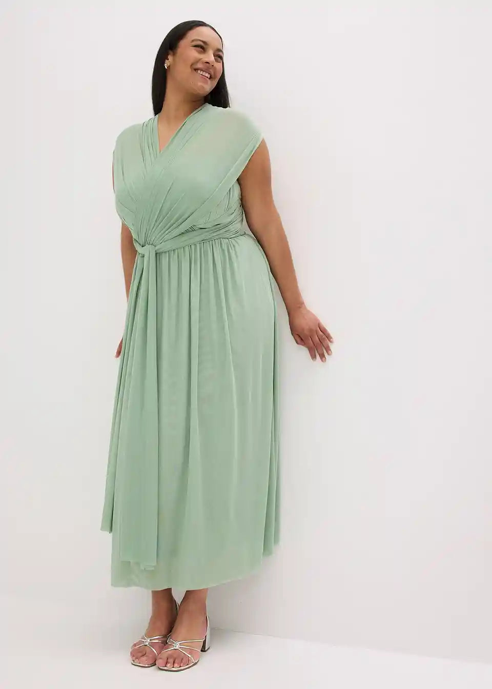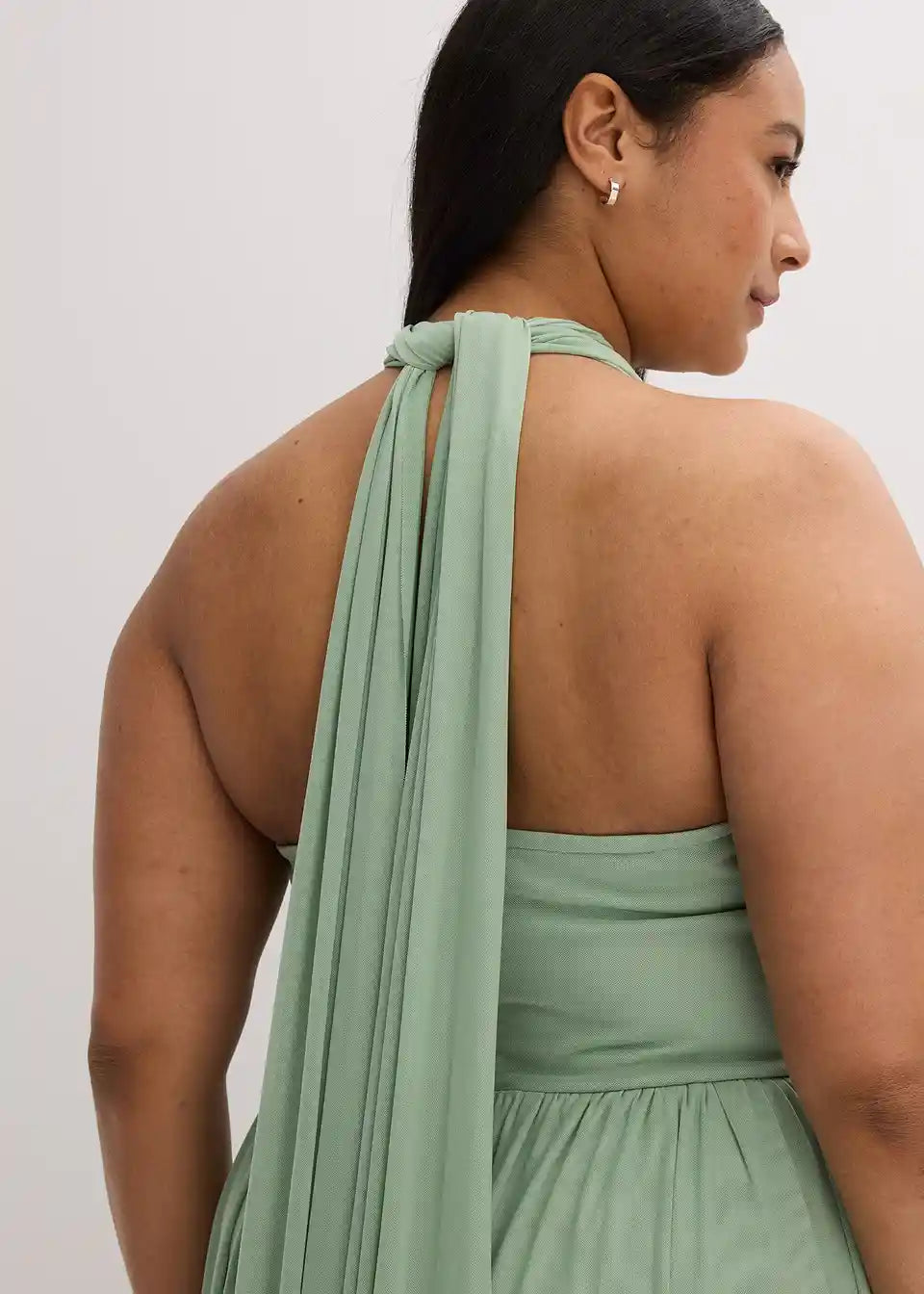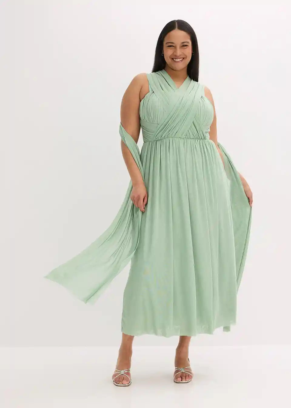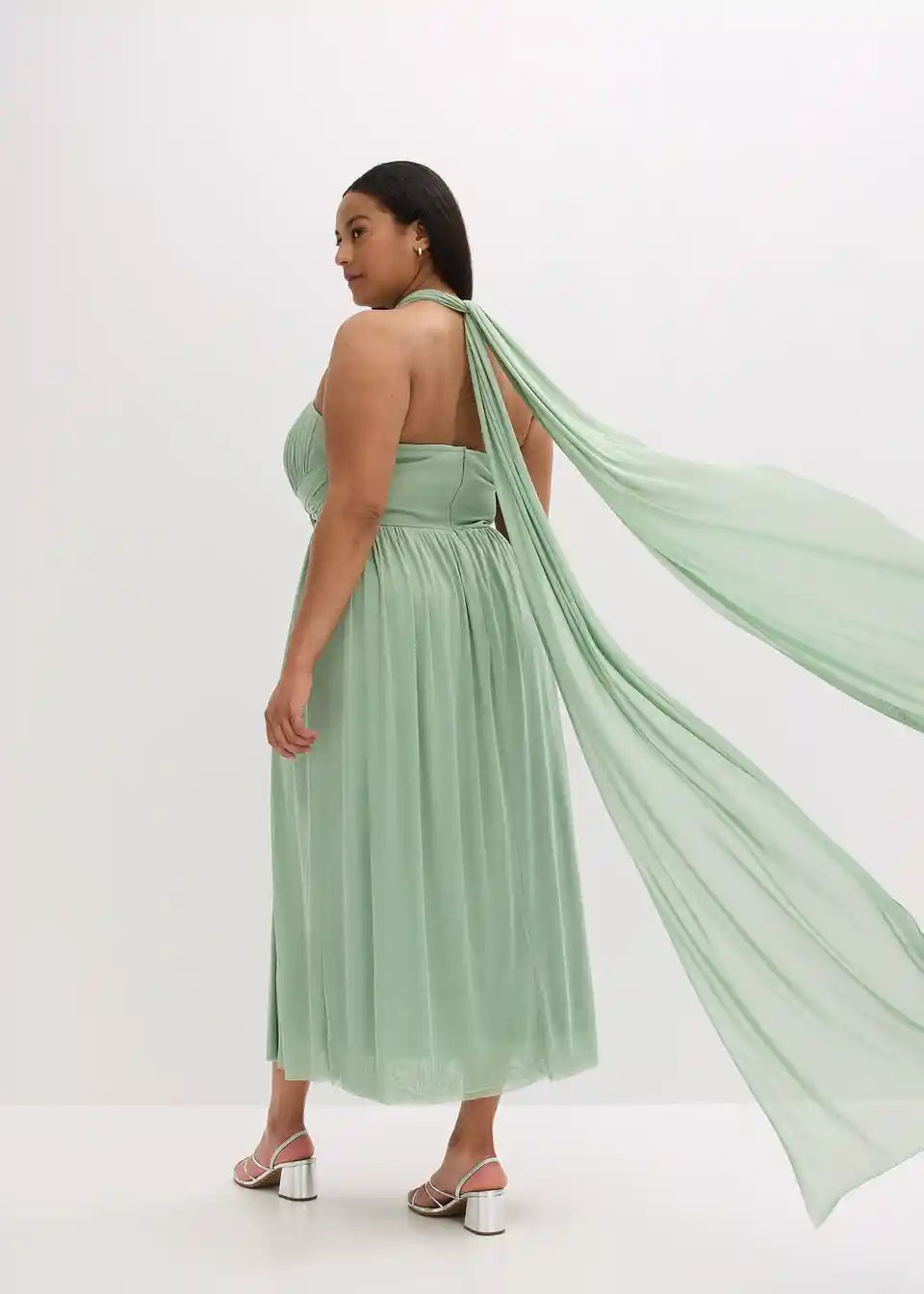 Večerna obleka iz mrežaste tkanine v maksi dolžini z različnimi možnostmi nošenja