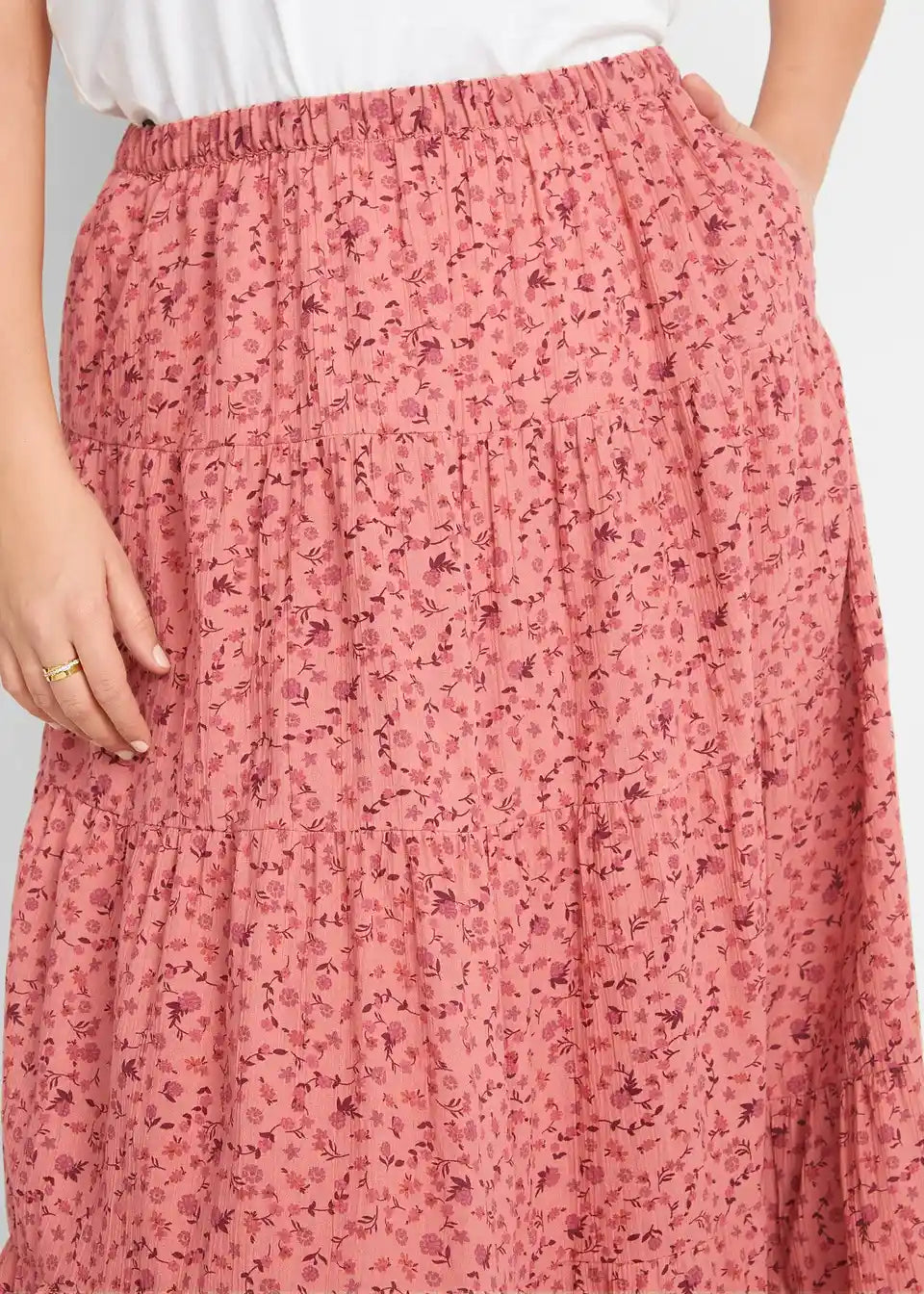 Bombažno, stopničasto krilo z elastičnim pasom v maksi dolžini