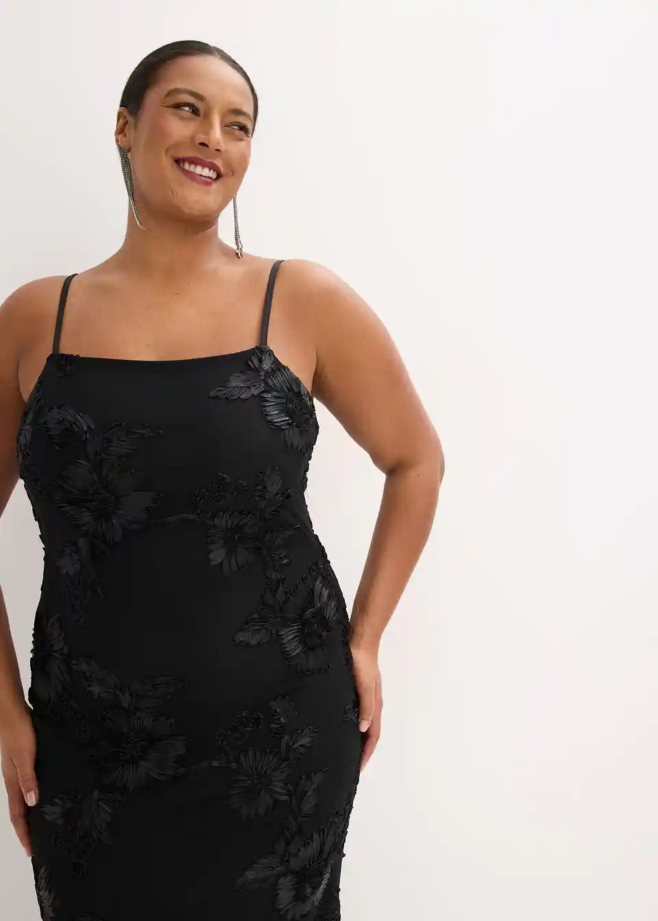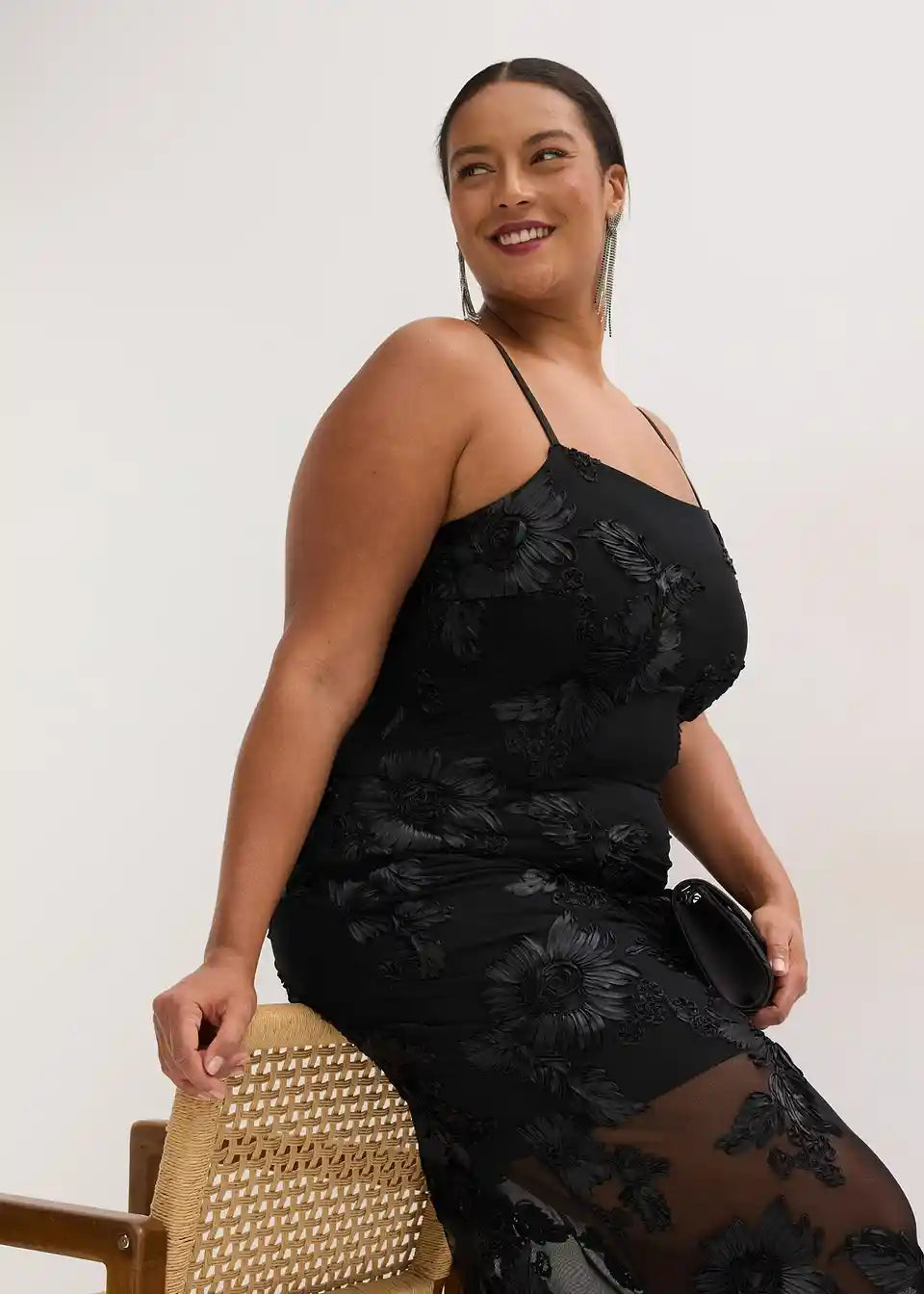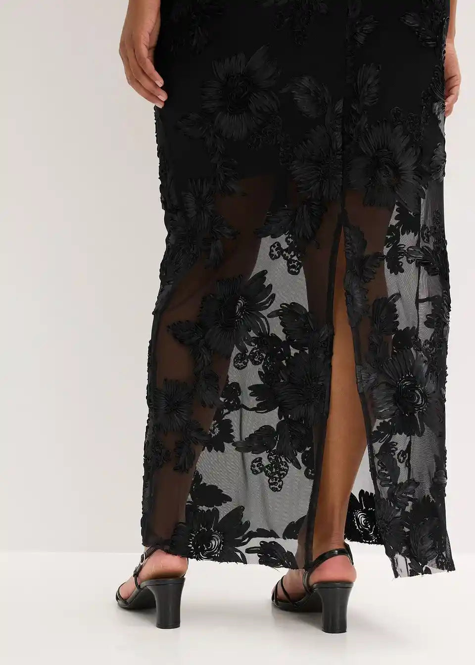 Moderna in ženstvena večerna obleka z naramnicami v dolgem kroju iz kakovostne čipke