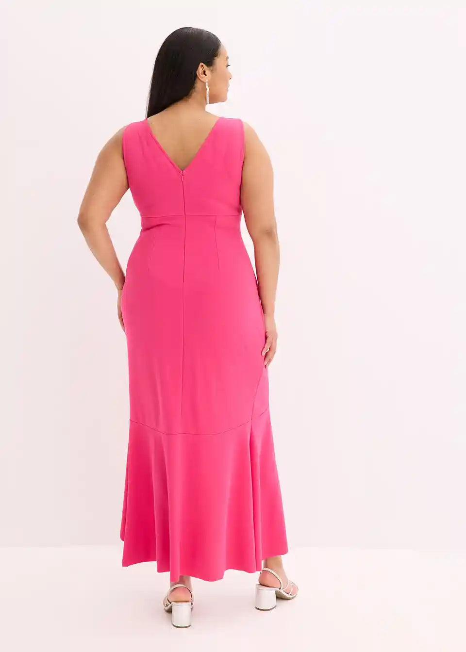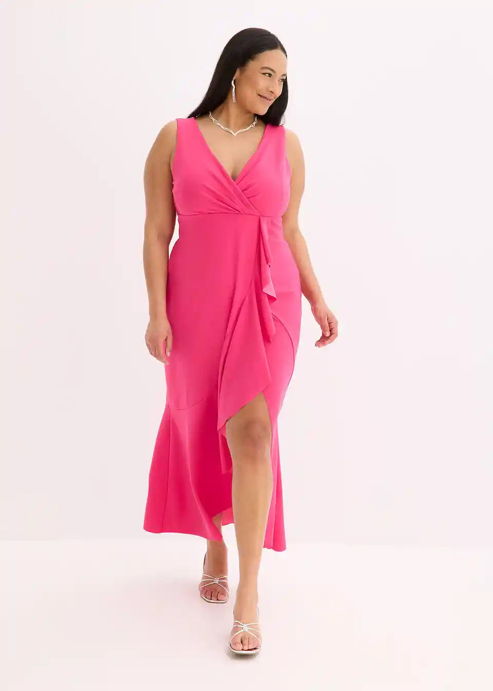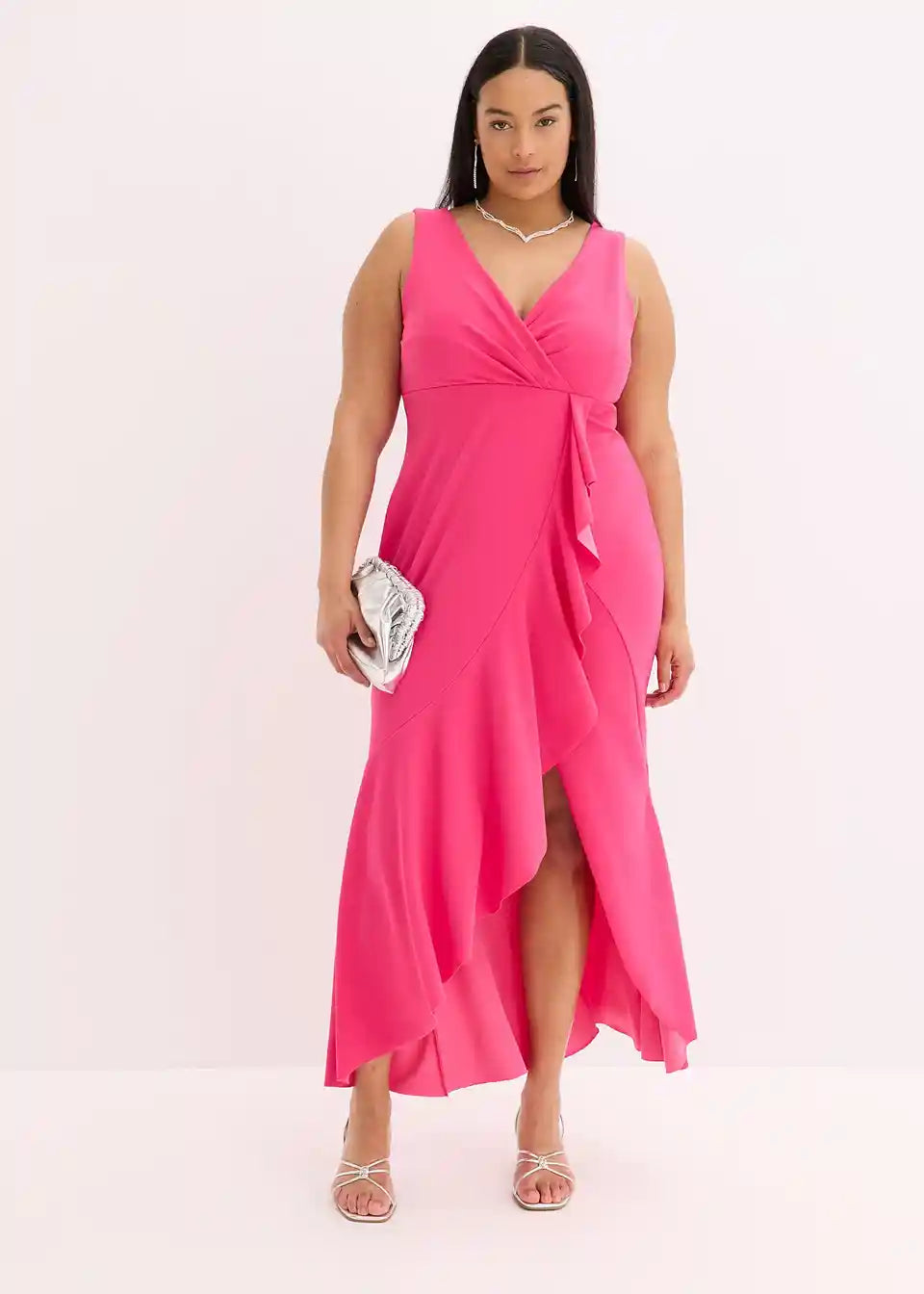 Moderna in ženstvena: večerna obleka iz strukturiranega krep materiala z volančki