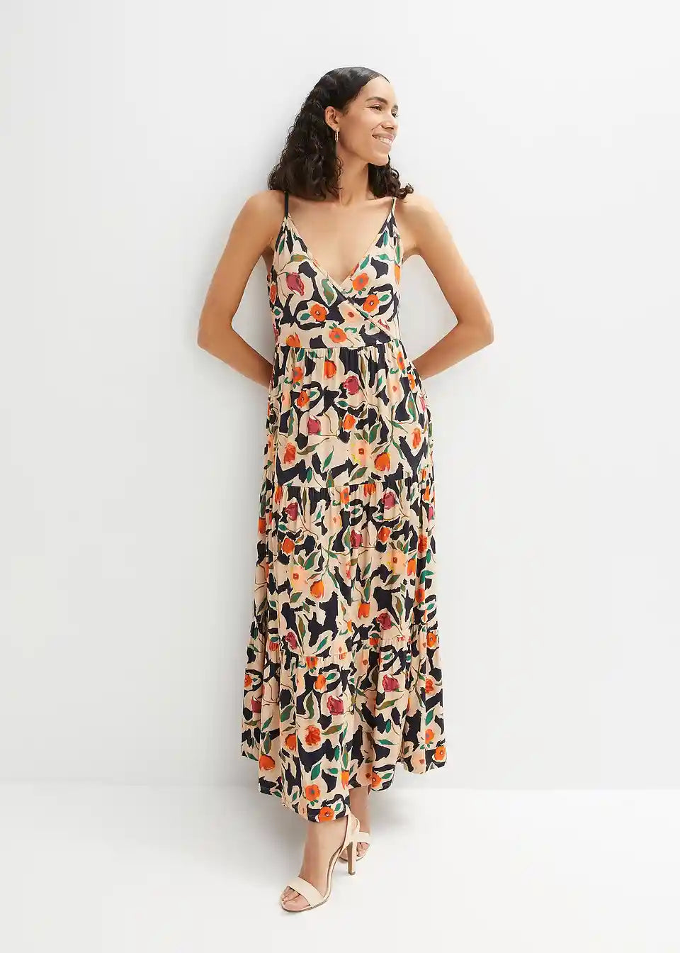 poletna maksi obleka s čudovitim tiskom in globokim V-izrezom spredaj in zadaj.