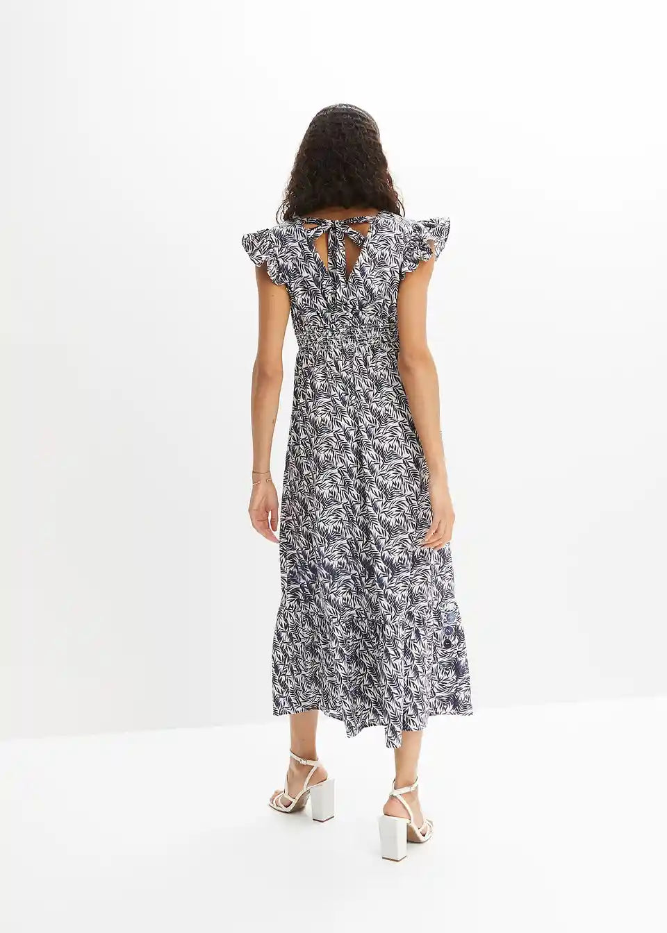 Der Stoff ist angenehm leicht und für die Sommertage genau richtig. Das Muster gefällt mir sehr gut. Der Schnitt passt perfekt. Die Länge ist für mich kein Midi sondern Maxikleid. Gefällt mir aber auch sehr gut.