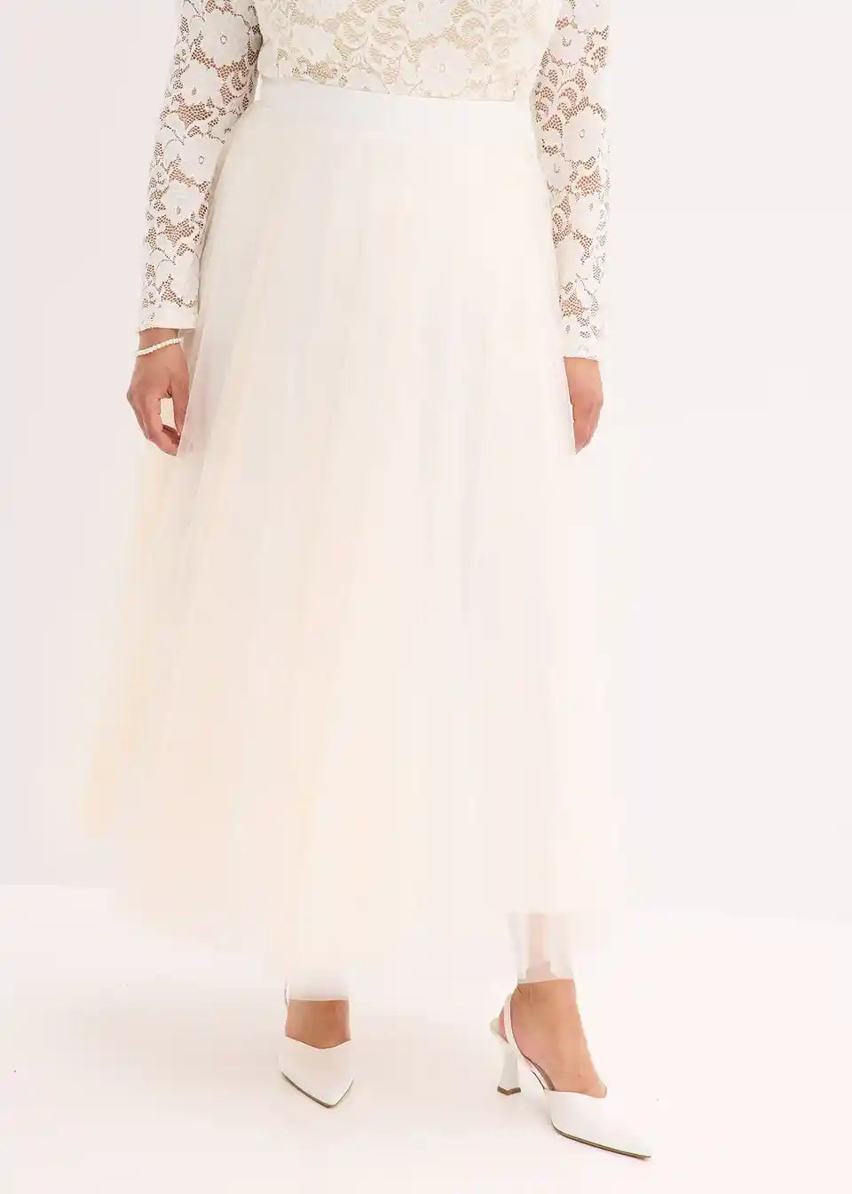 Romantično ženstveno: maksikrilo iz nežnega tila s plastjo tila v barvi šampanjca