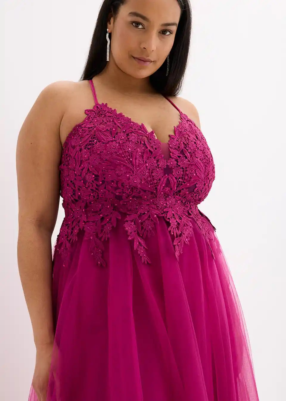 Moderna in ženstvena: Očarljiva večerna obleka v maksidolini iz nežnega tila z čipko