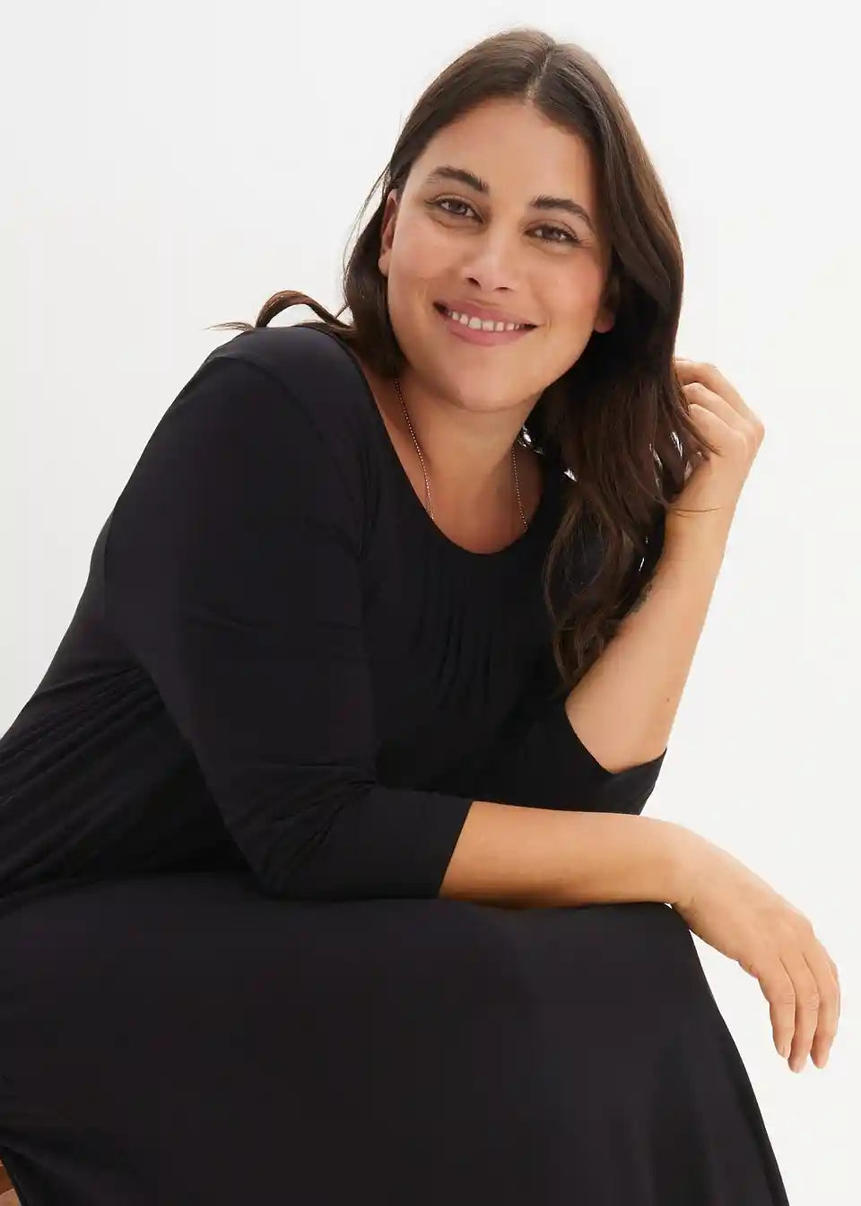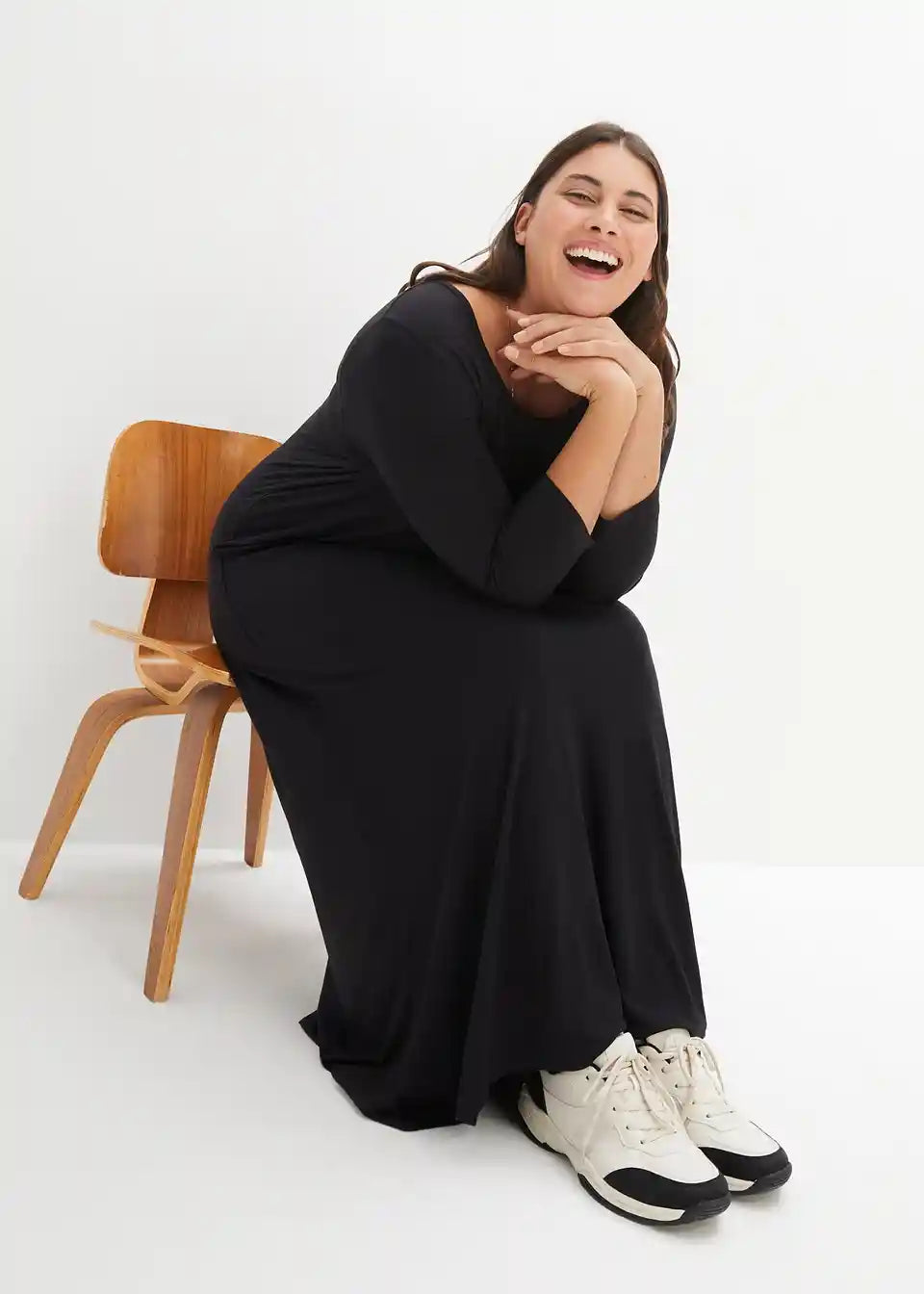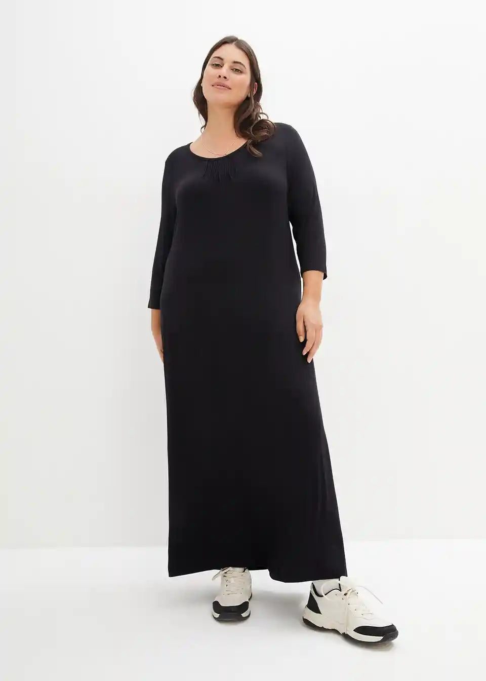 Postavi prijazna maksimalna obleka v A-liniji z okroglim izrezom
