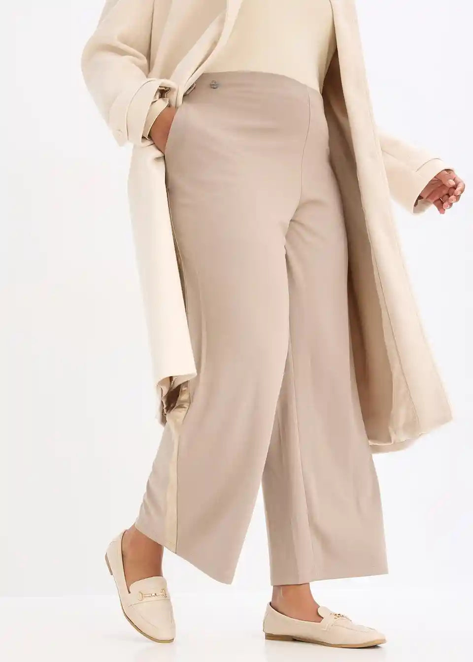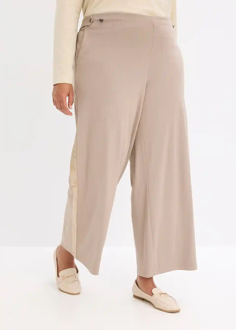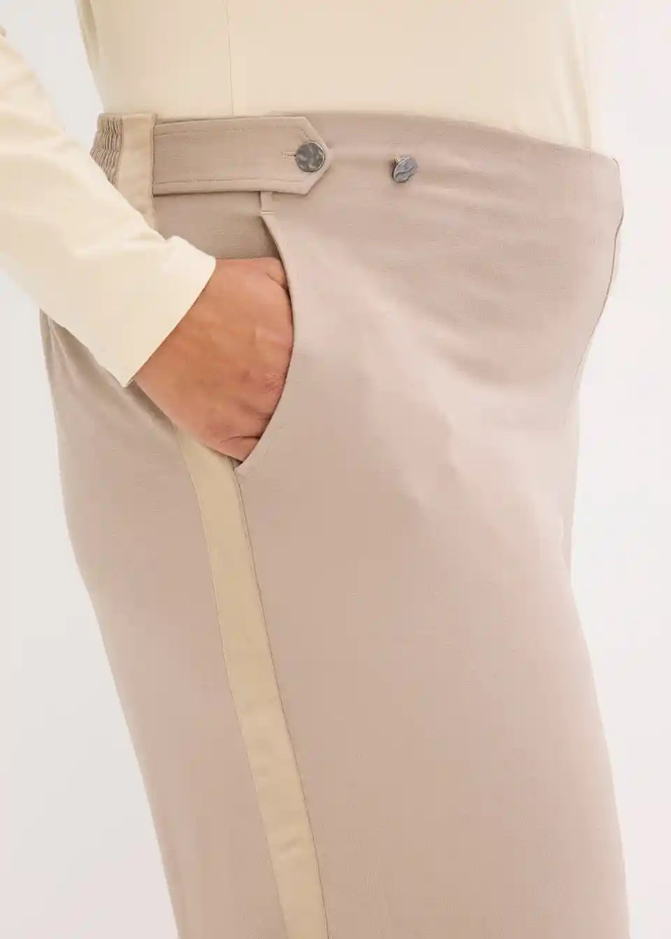 Elegantne marlene hlače iz Punto Di Roma trikoja s satenastim trakom