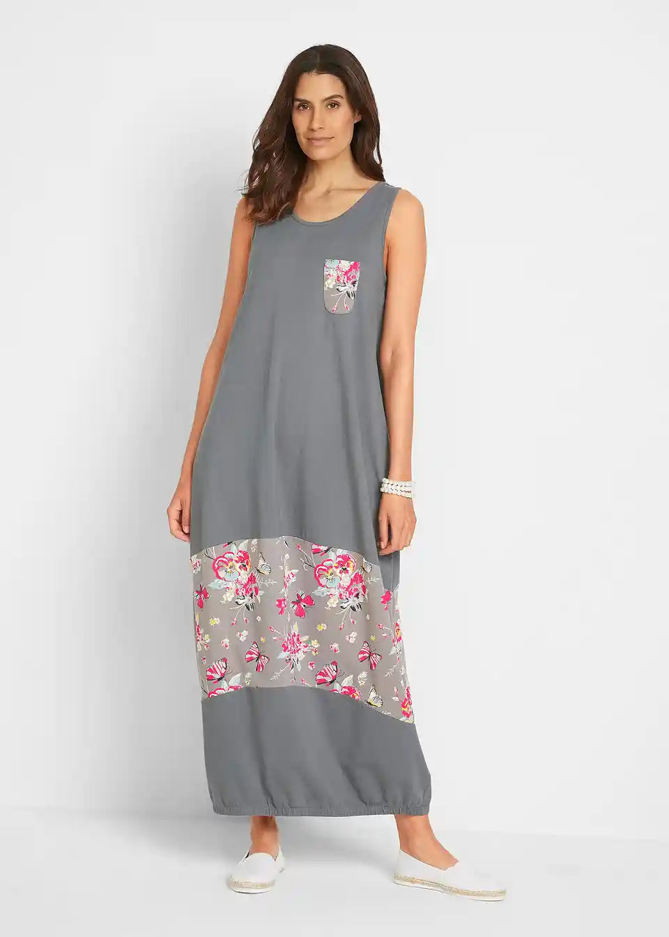 Udobna bombažna obleka v O-formi z motivnim vložkom