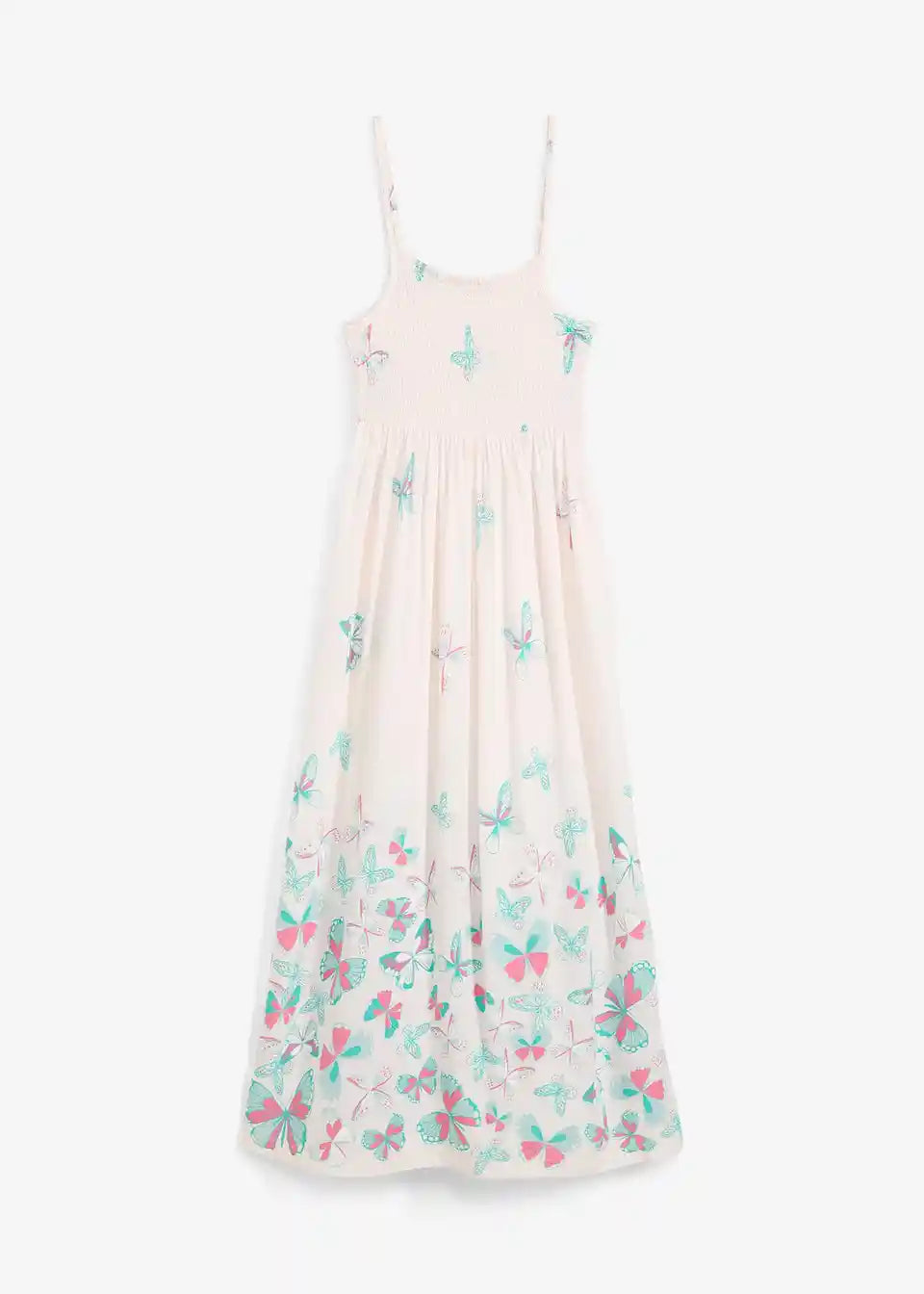 Ta lepa maxi obleka izstopa na dva načina. Čudovit vzorec na robu sega do pasu. Zgornji del je izdelan iz elastičnega naborka, ki je videti lepo in zagotavlja optimalno udobje nošenja. Nastavljive naramnice dopolnjujejo čudovit dizajn iz kolekcije znamke bpc. Naj gre za na plažo s sandalci ali natikači ali za vsakdan v kombinaciji z jeans jakno: Ta obleka prinaša dobro voljo.