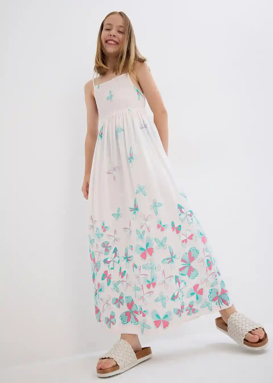 Maxi obleka za dekleta z naborkom na zgornjem delu