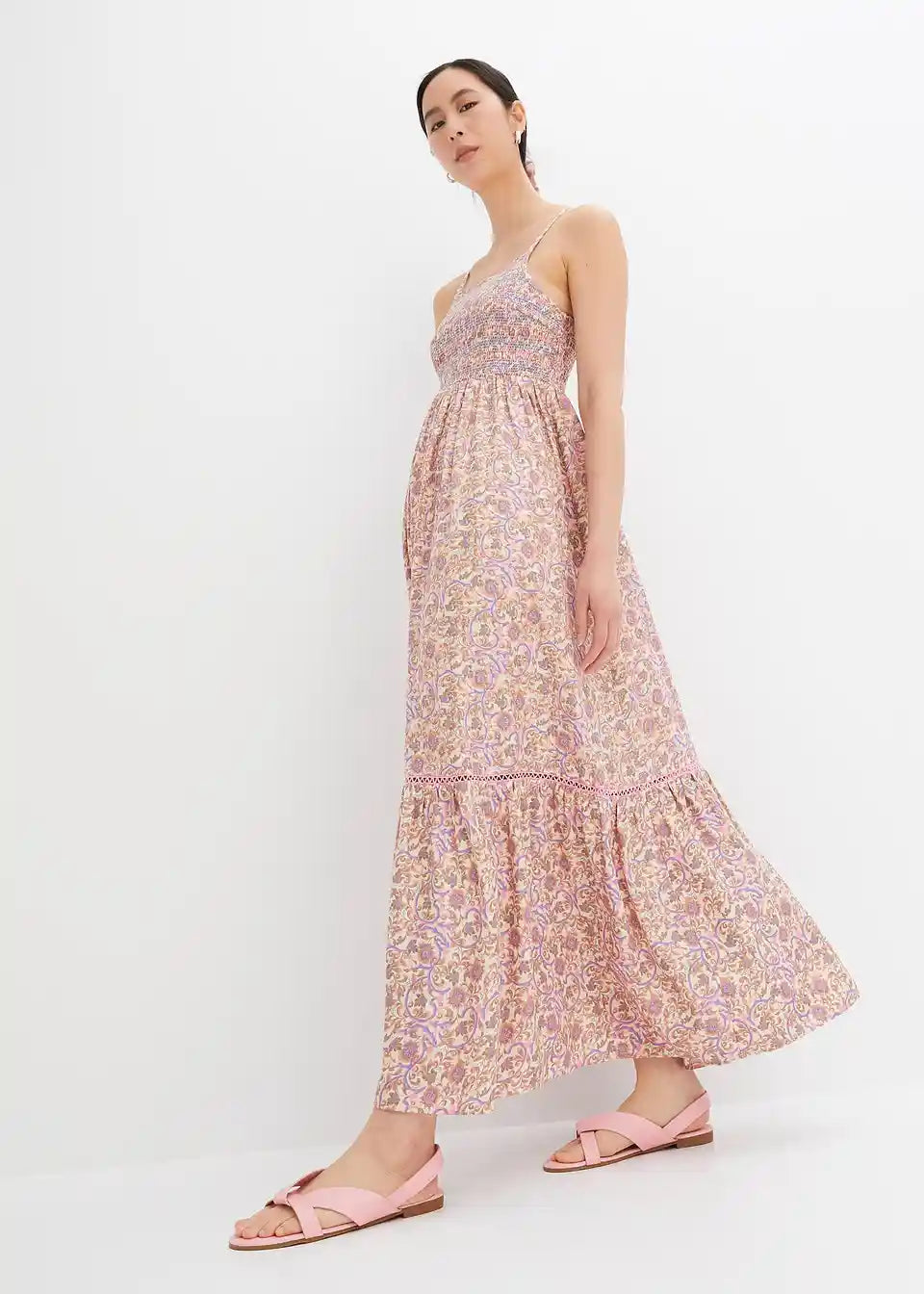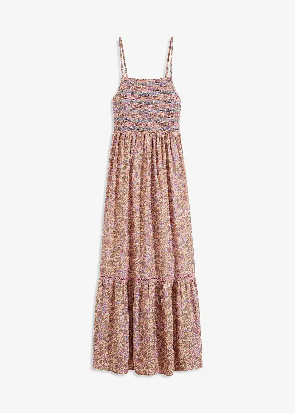 Vzorčasta maxi obleka s kakovostnimi detajli