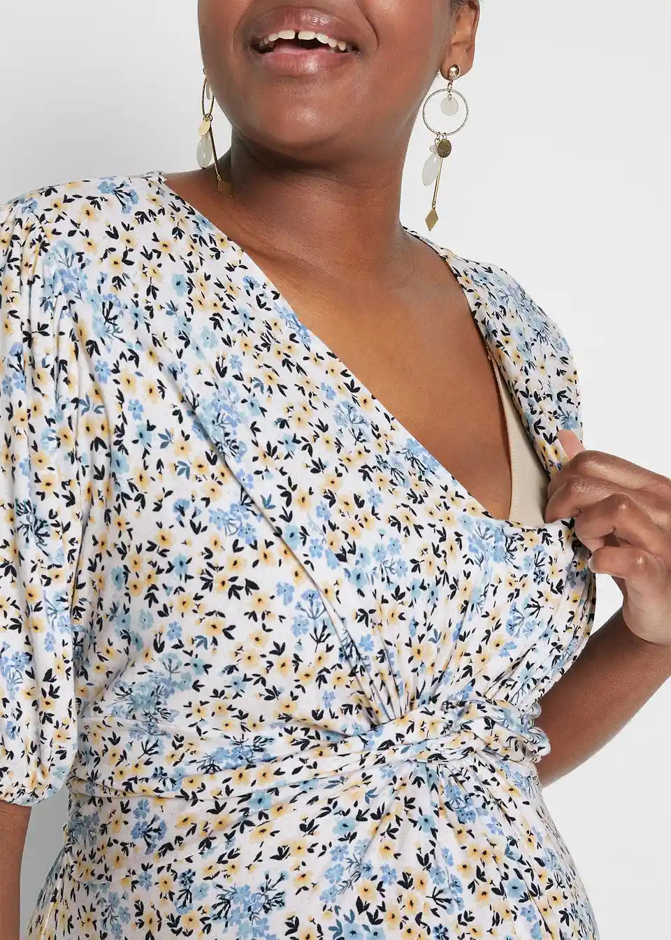 Dolga nosečniška obleka iz trajnostnega jerseya za nosečnost in po njej