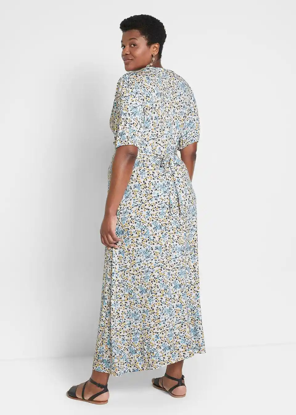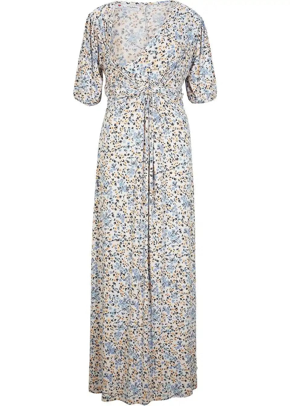 Ta dolga obleka je primerna za vsak mesec nosečnosti in je zaradi prekrivnega videza na izrezu praktična tudi kot obleka za dojenje. Izjemno mehko in udobno blago iz trajnostne viskoze.