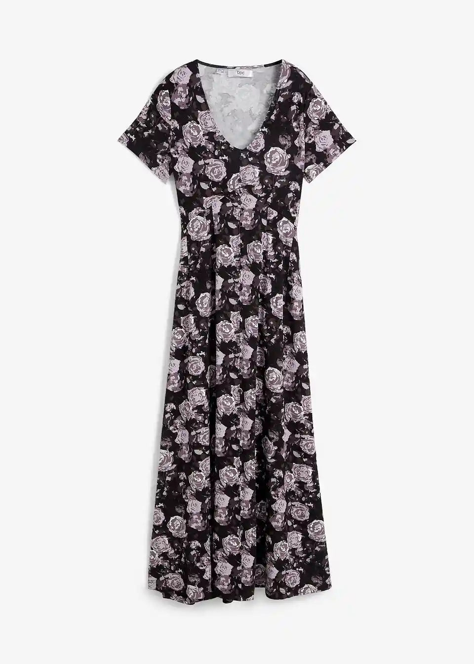 Dolga obleka iz trikoja s kratkimi rokavi