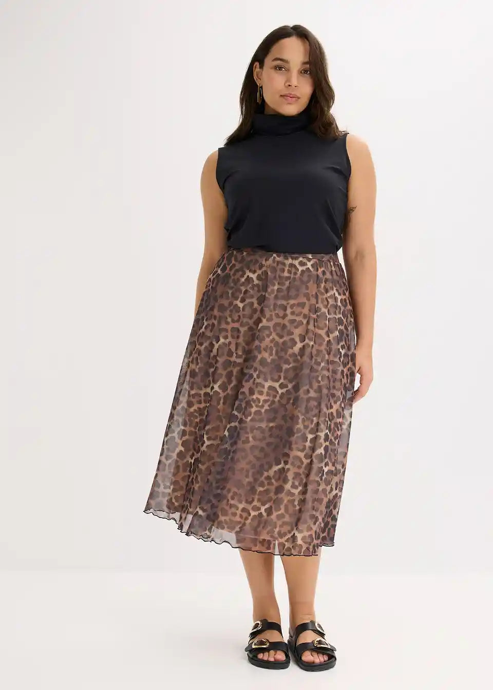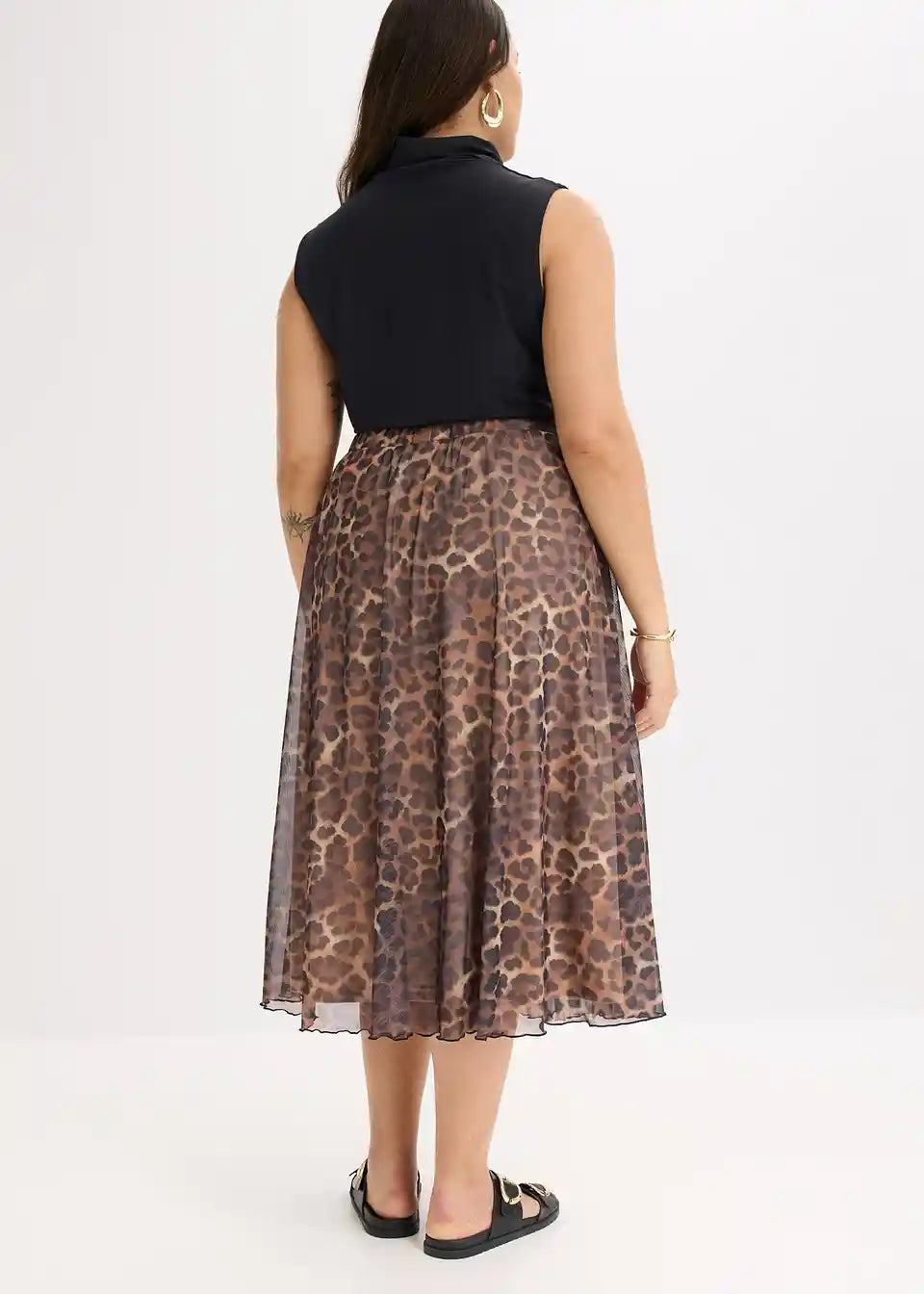 modno potiskan midi krilo iz mehkega meša z elastičnim pasom