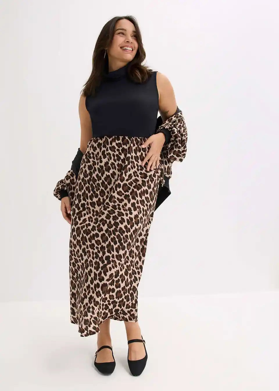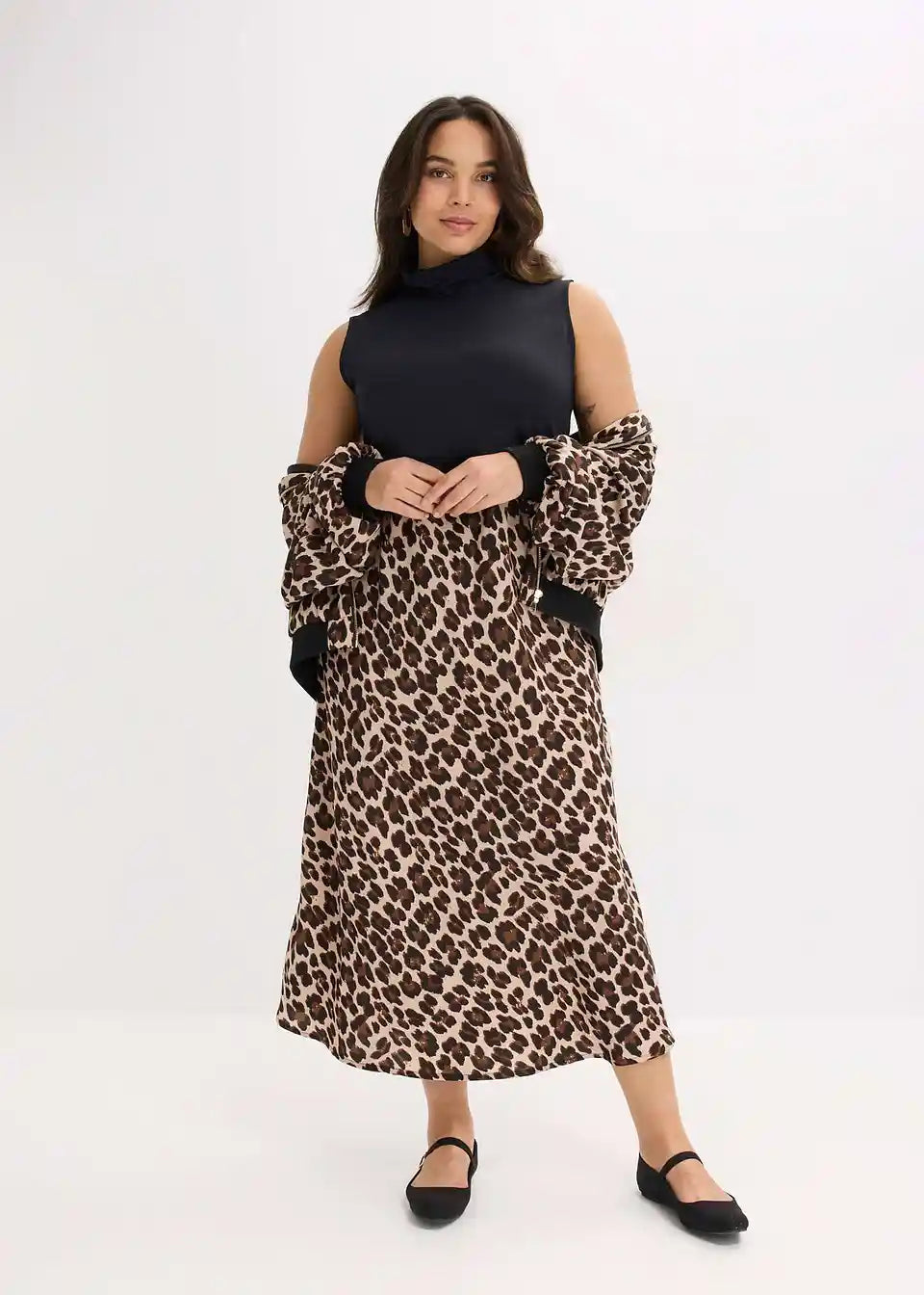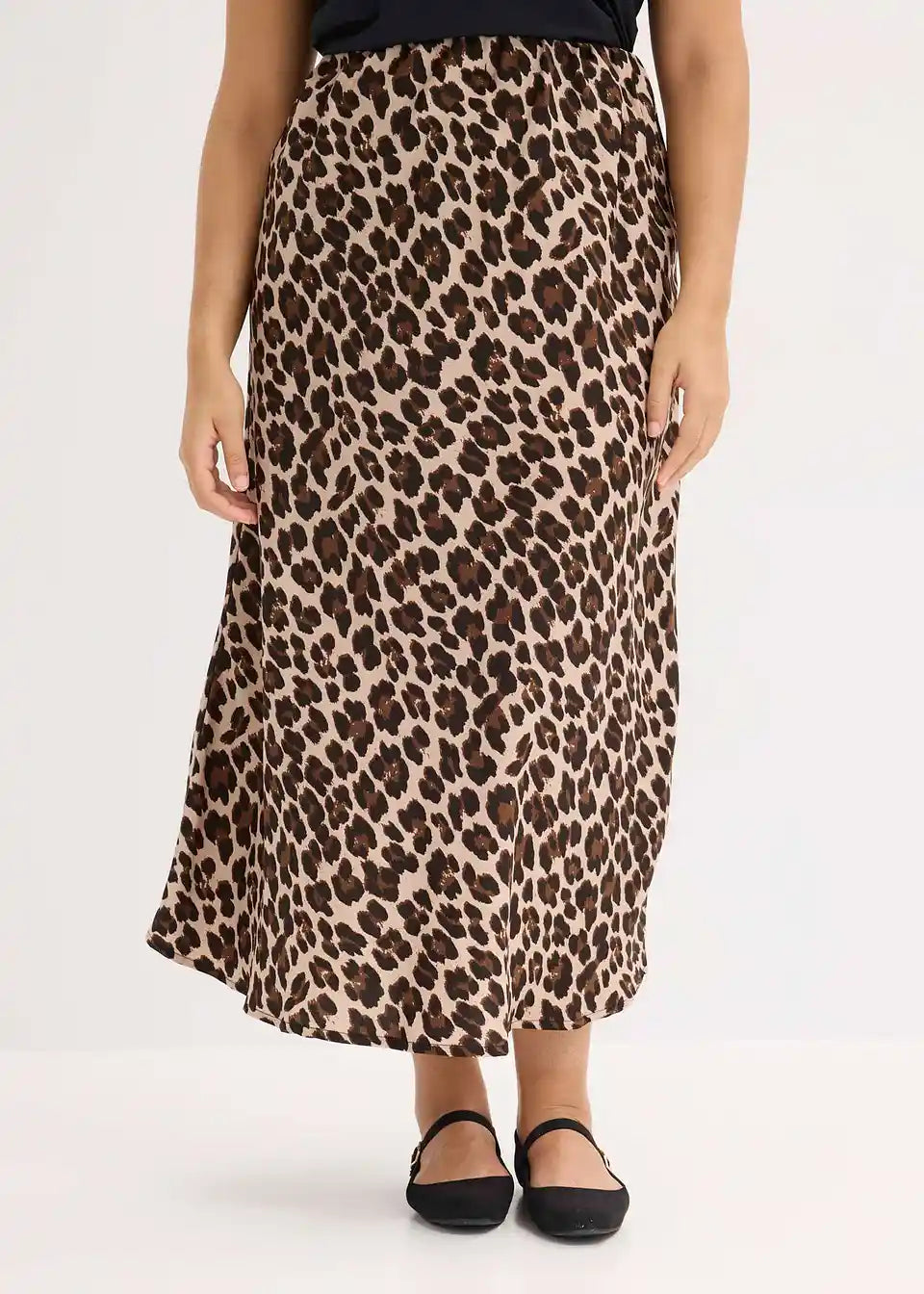 modno potiskano krilo srednje dolžine iz tekočega satena z elastičnim pasom