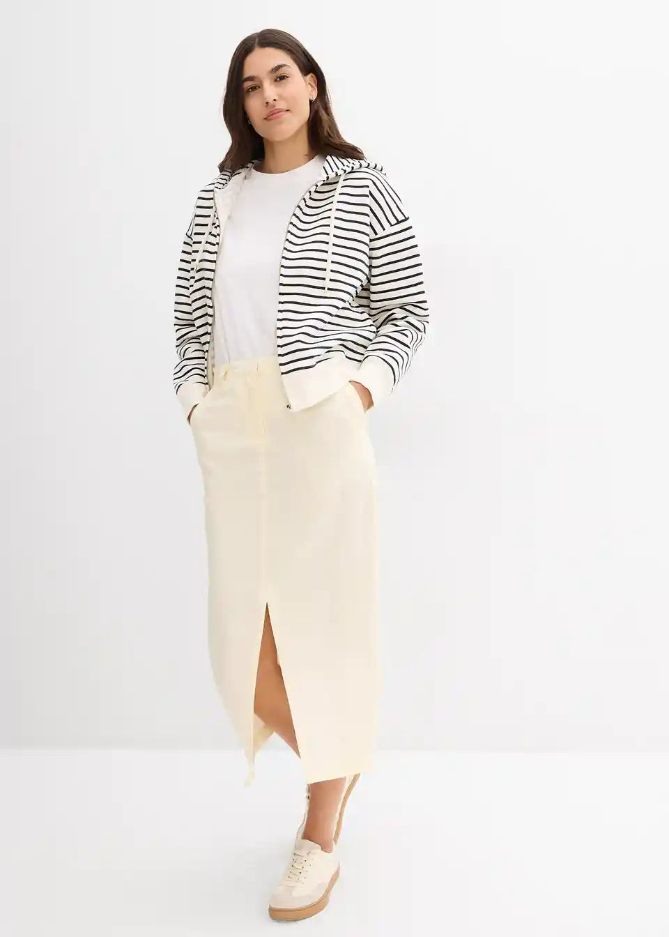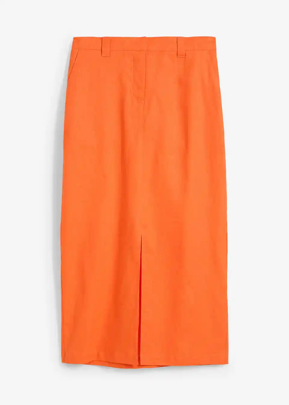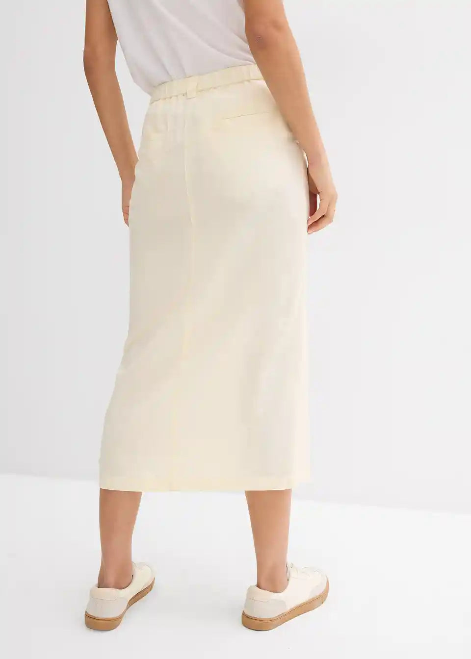 Midi krilo s prednjim razporkom, žepi in elastičnim pasom zadaj