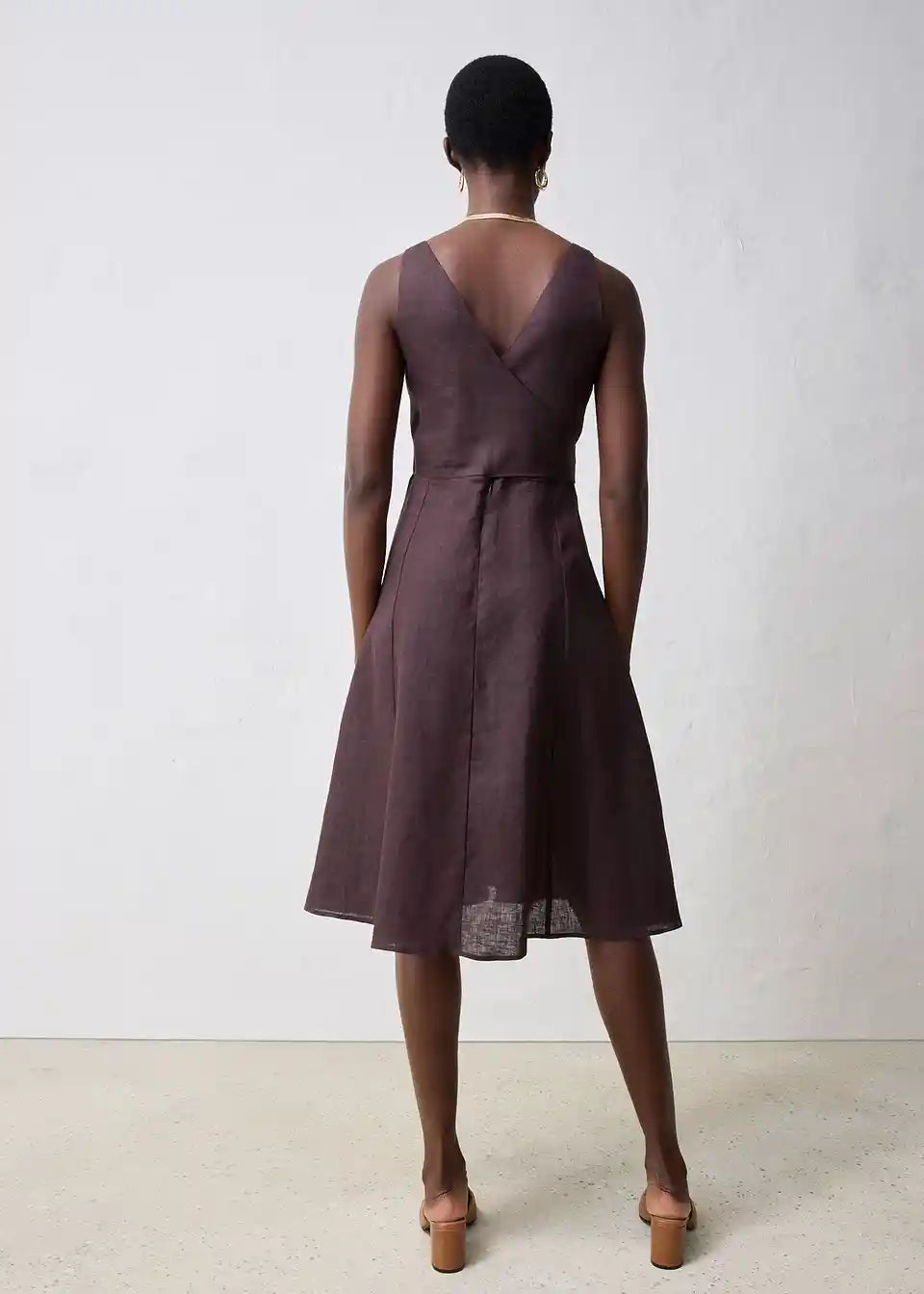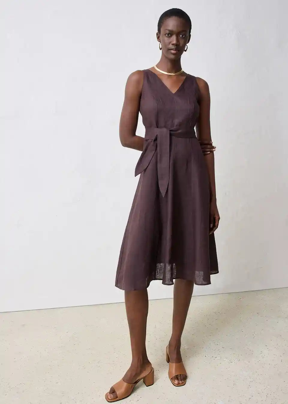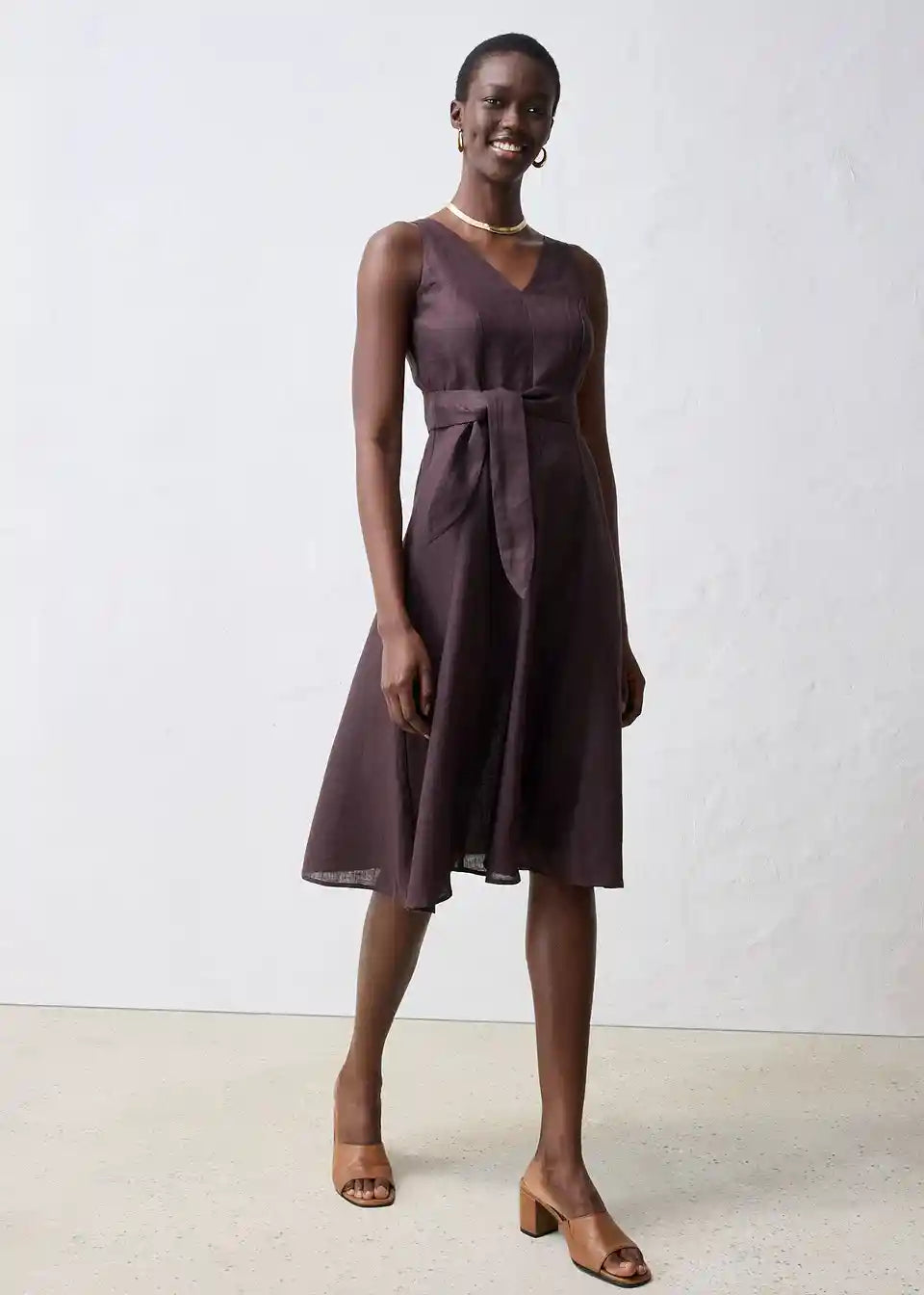 Midi obleka iz čistega lanu