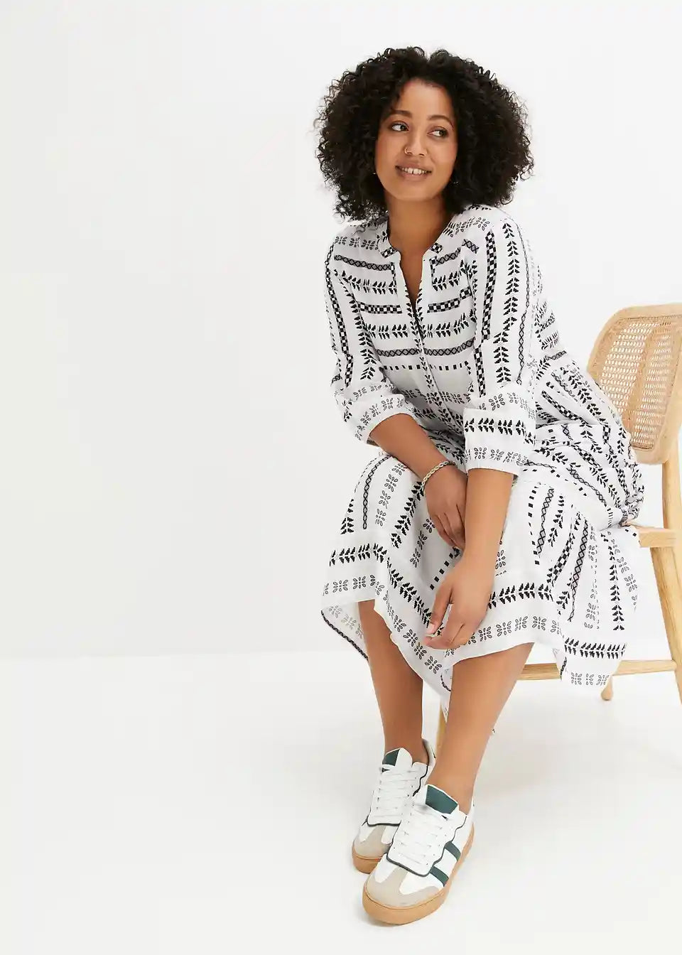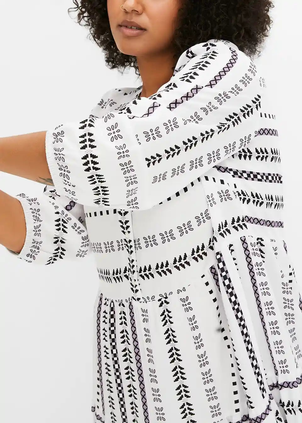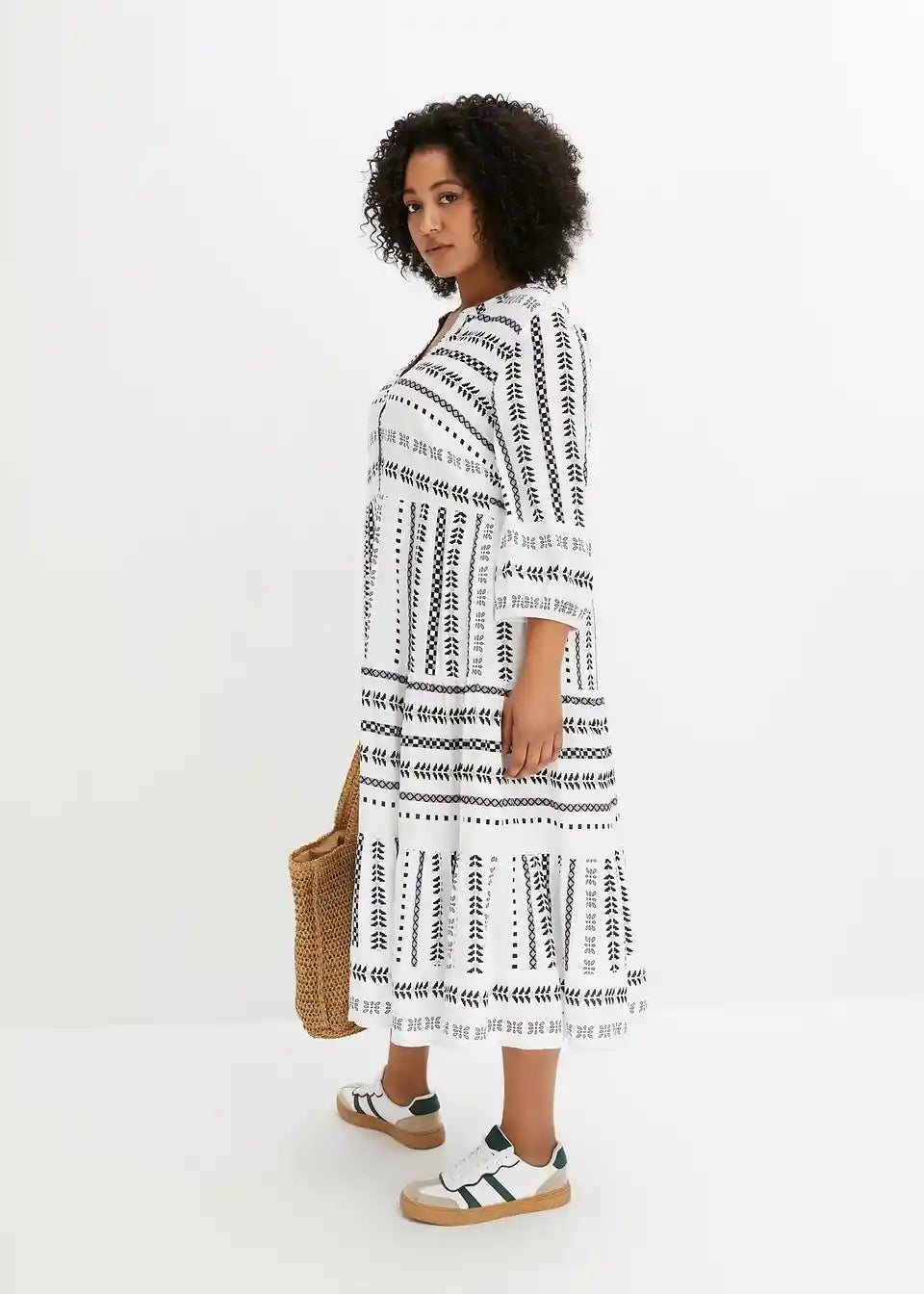 Tiskana in postavi prijazna midi obleka s 3/4 rokavi