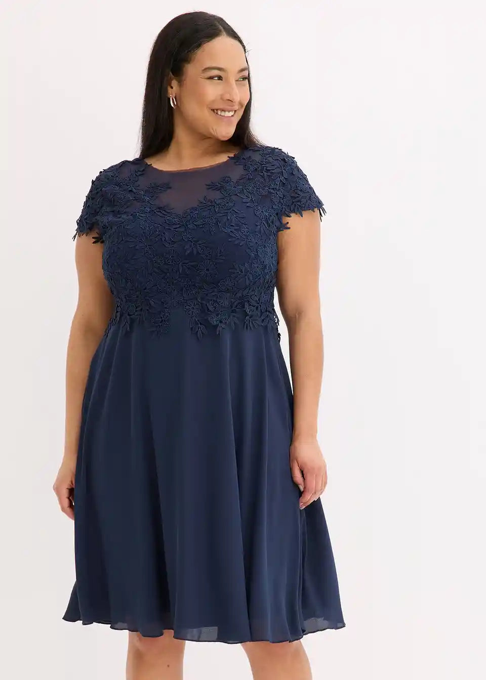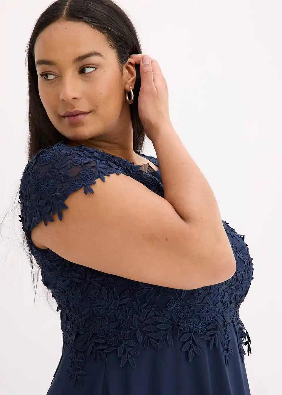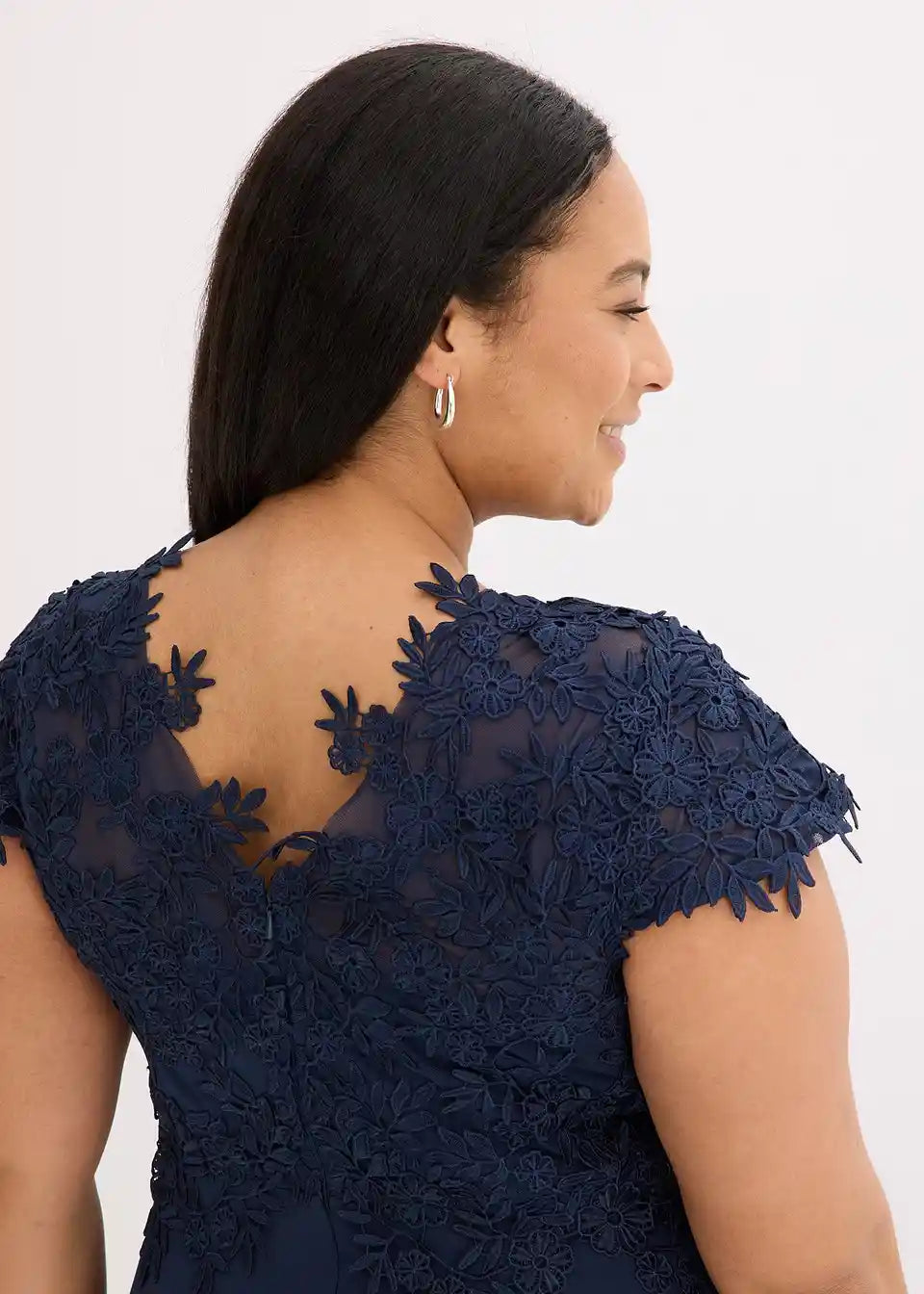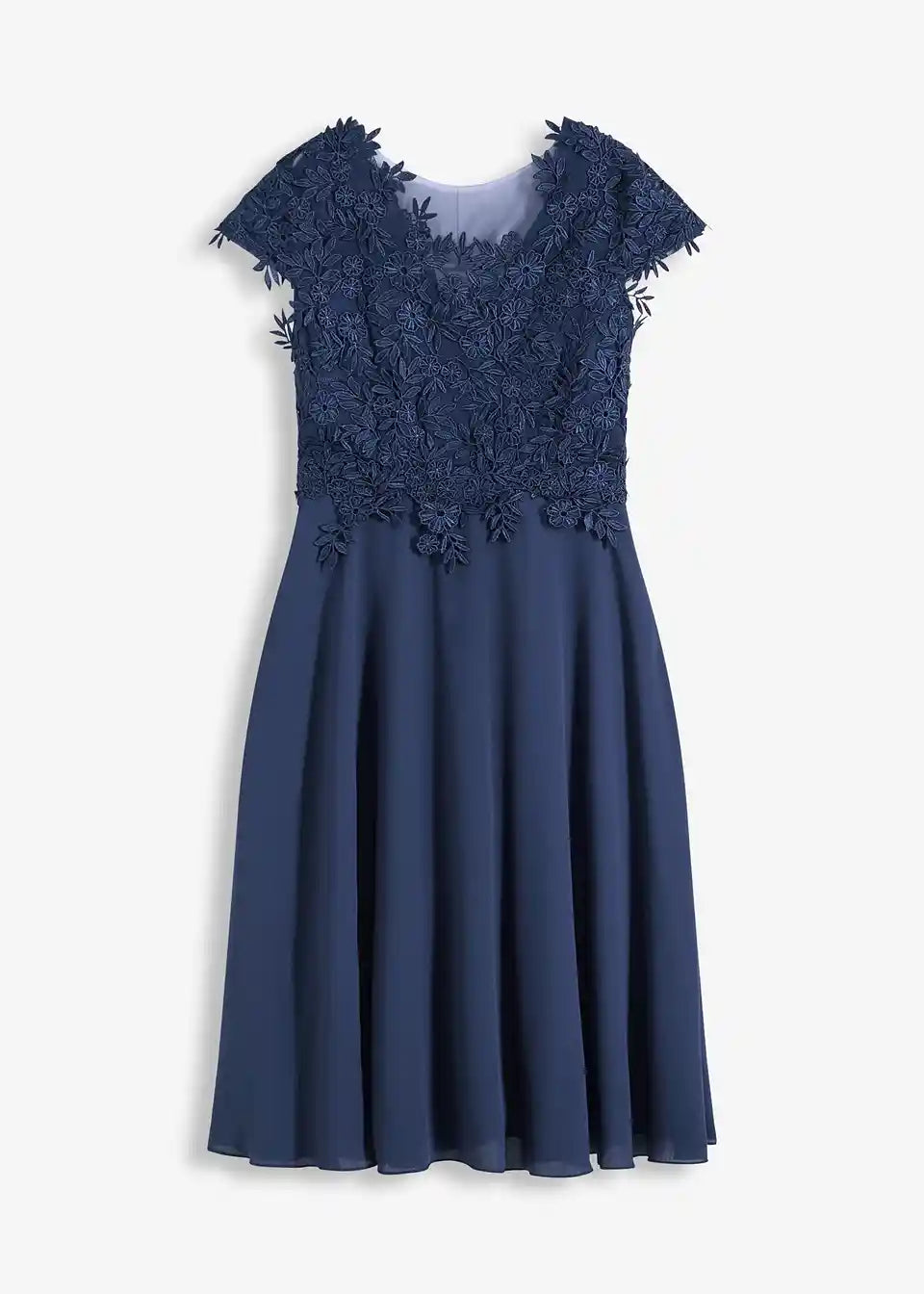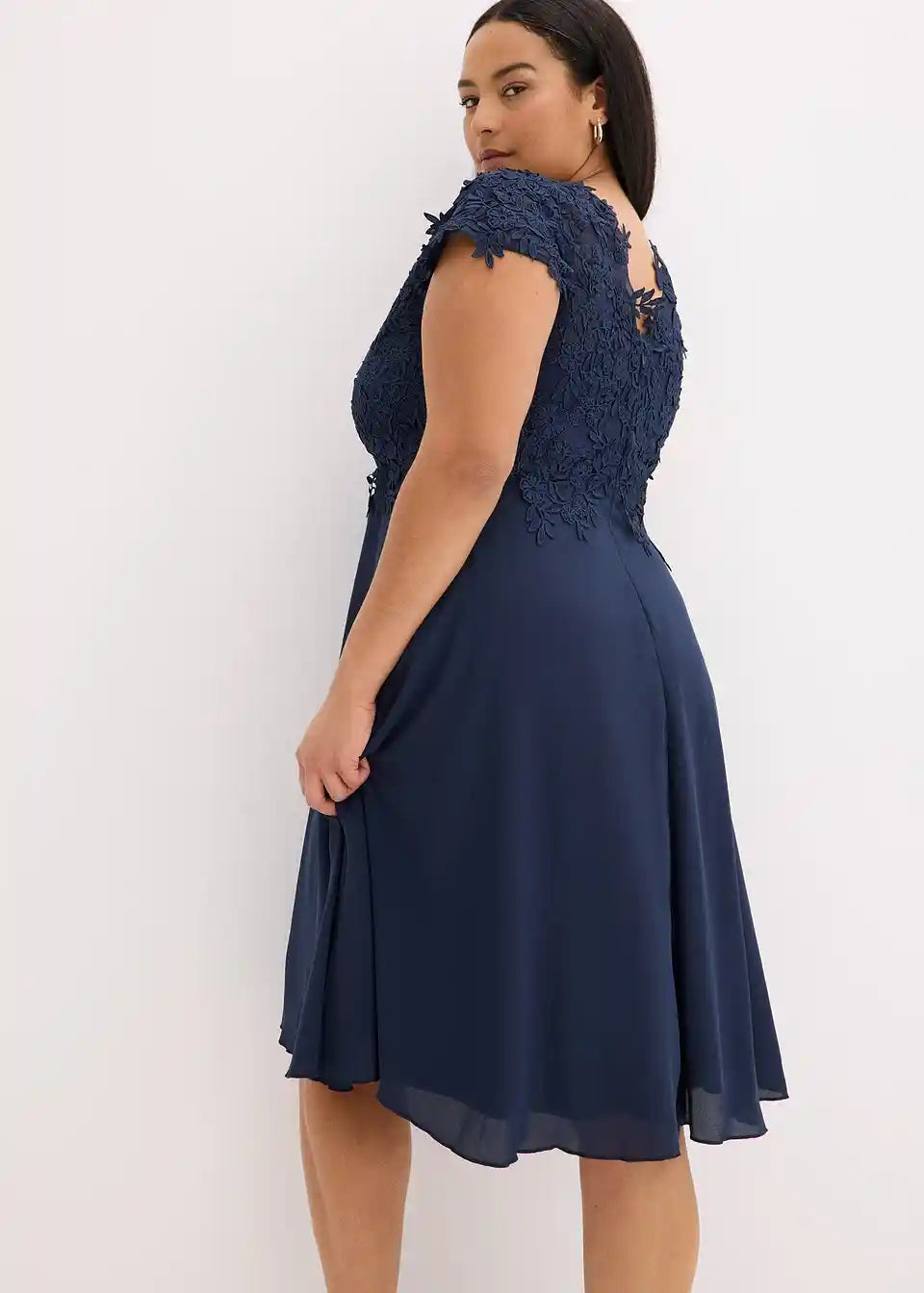 Romantična in ženstvena: koktajl obleka v midi dolžini iz nežnega tila s čipko