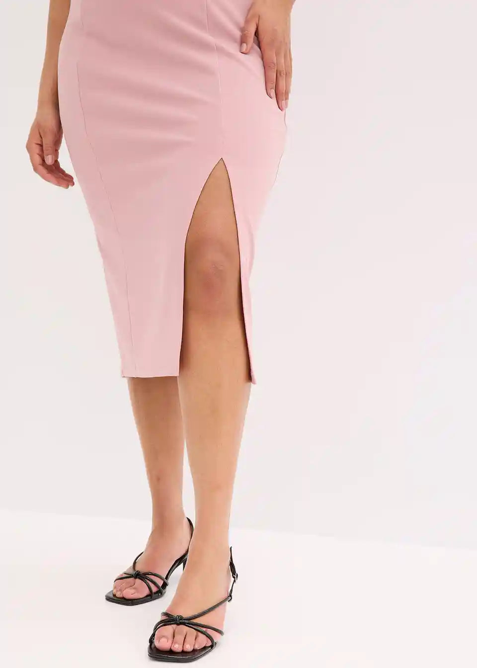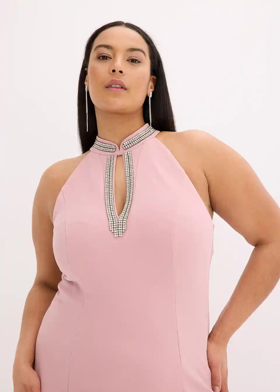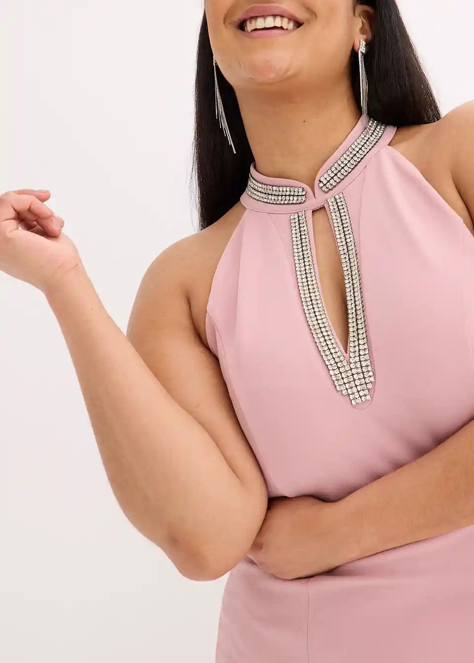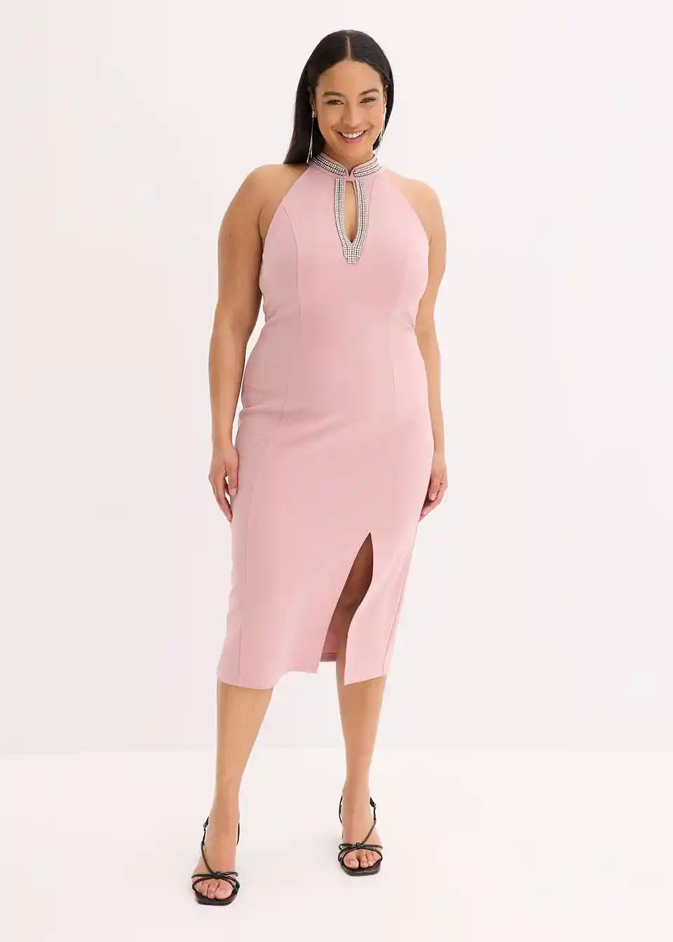 Seksi koktajl obleka iz strukturiranega krep blaga v midi dolžini z razporkom pri izrezu in okrašena s kristalčki