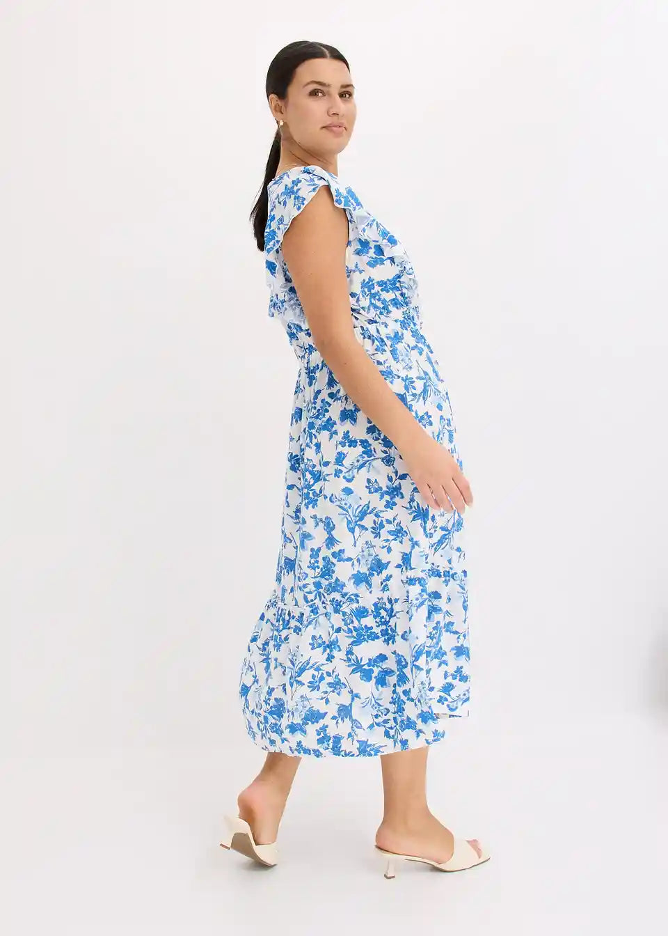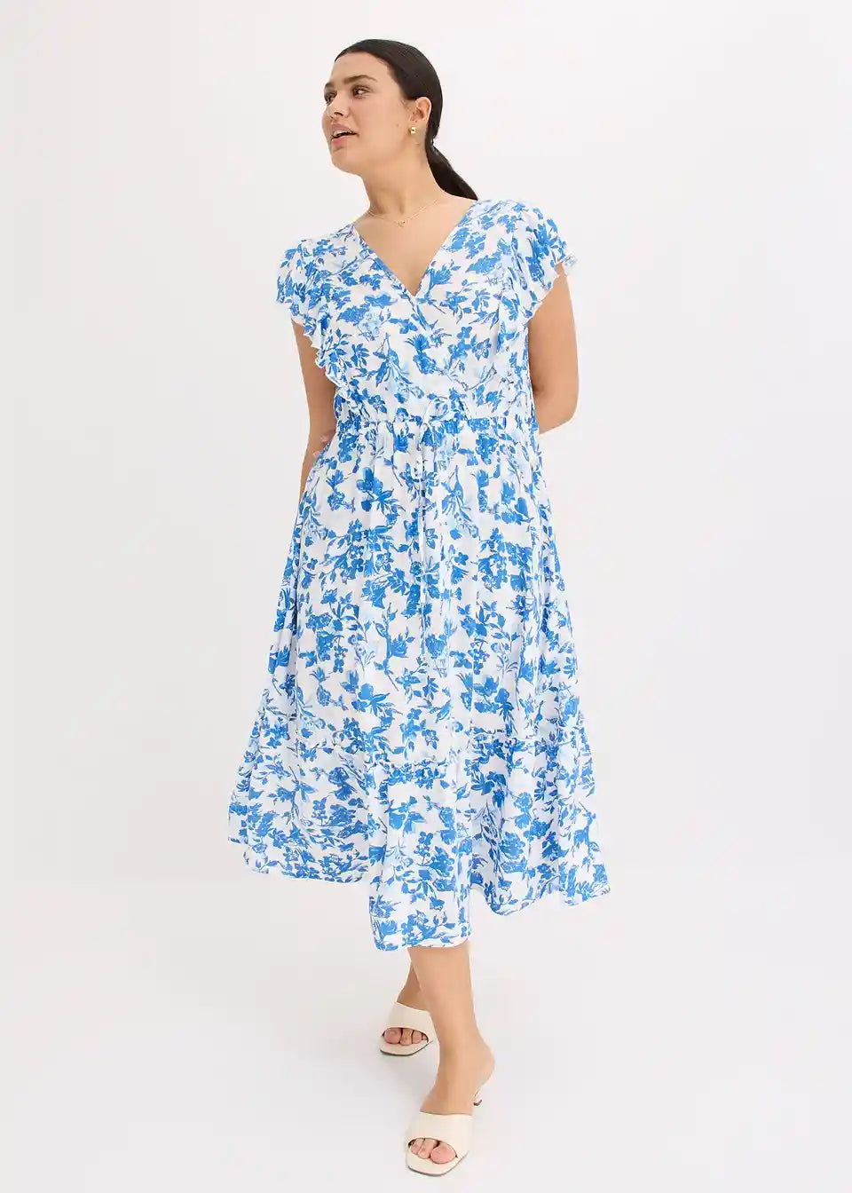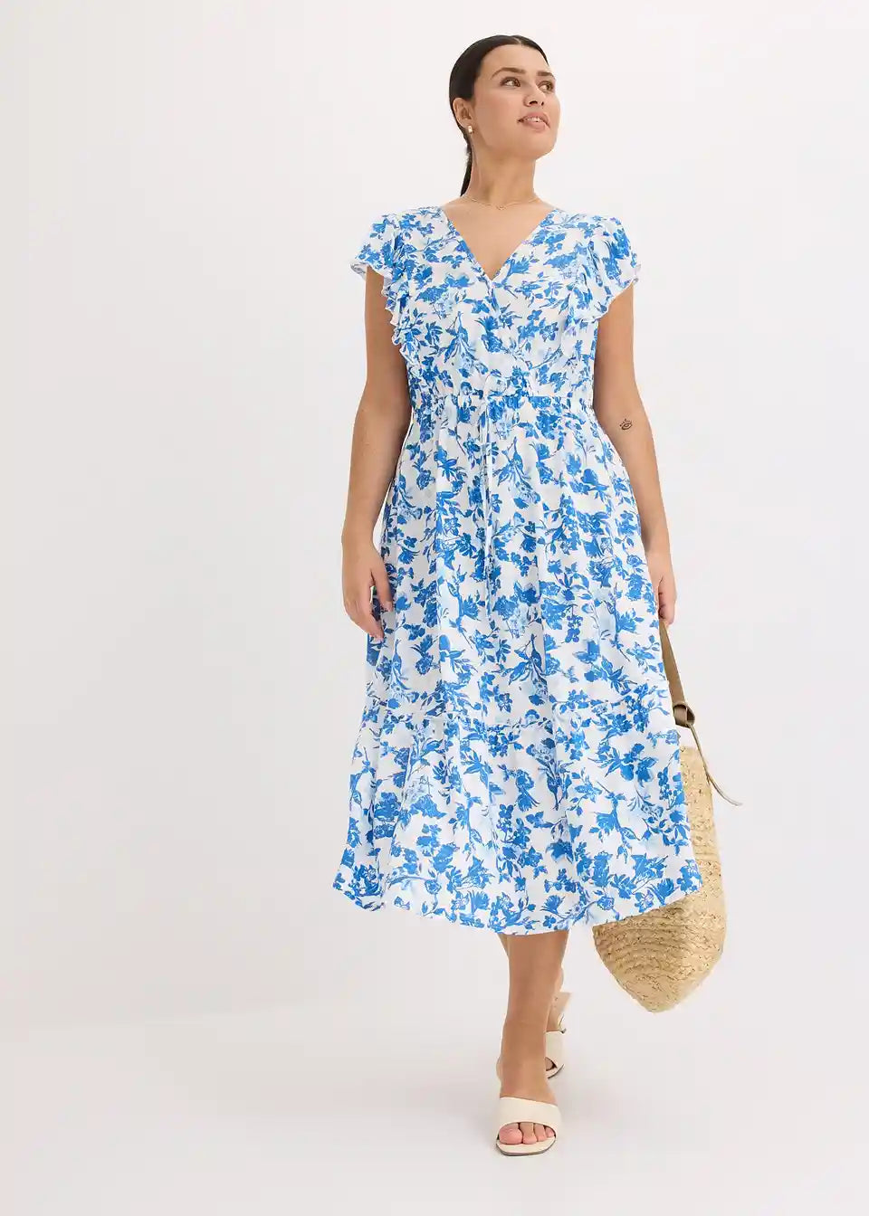 Obleka s krilnimi rokavi in tunelsko vrvico v pasu