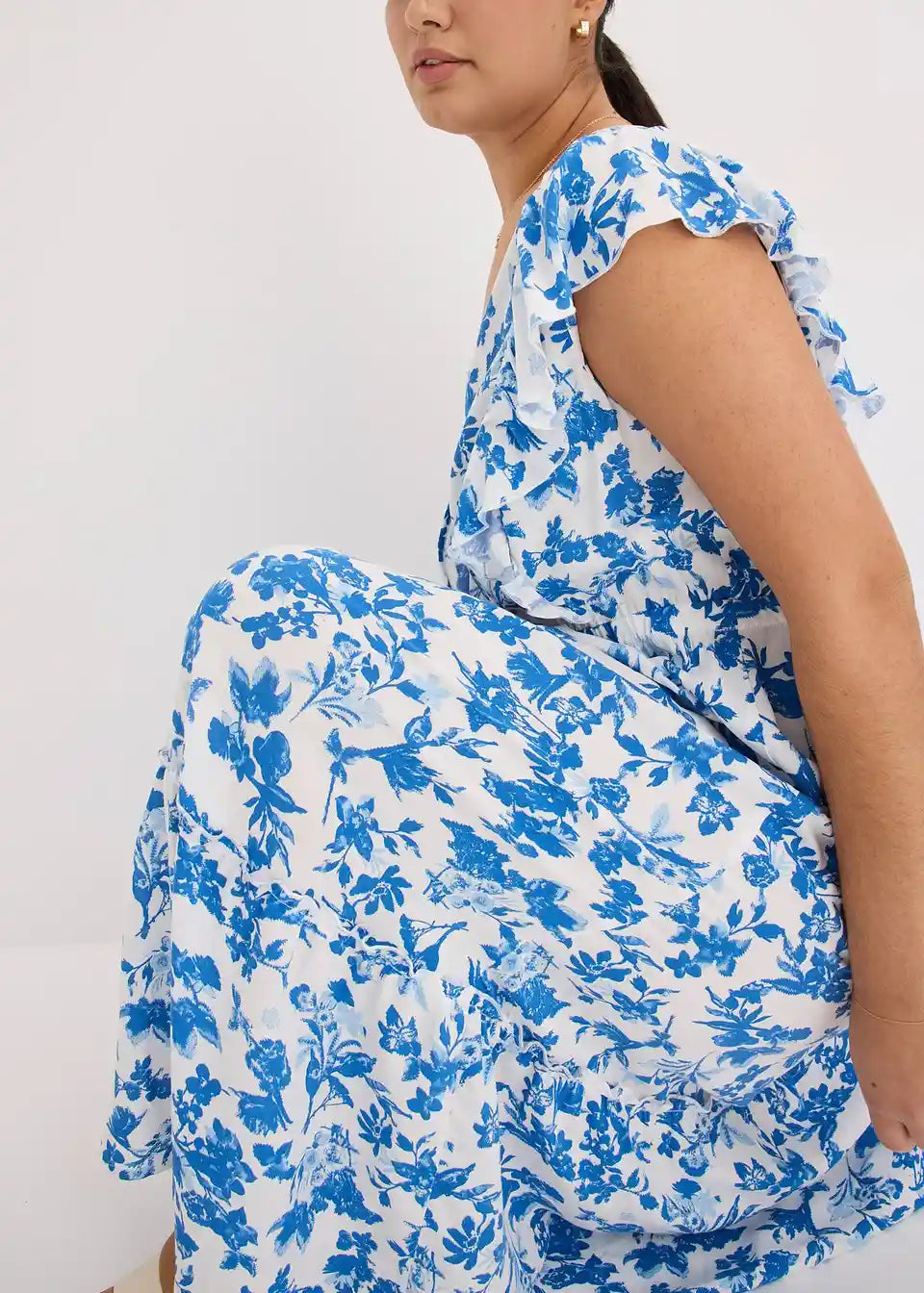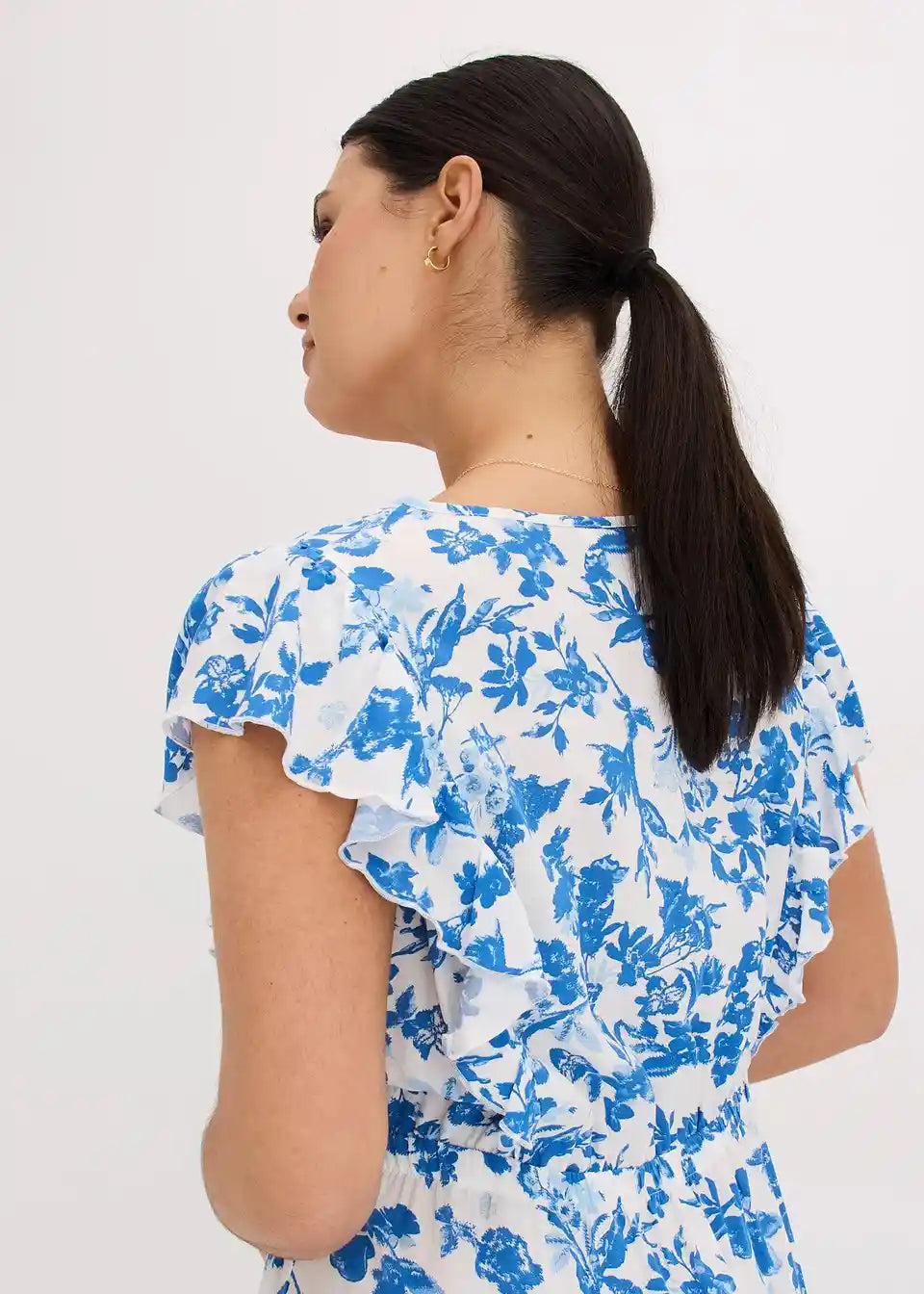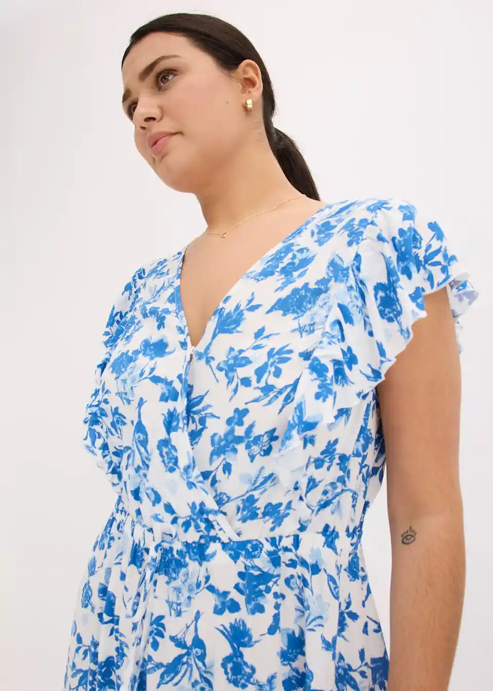 Obleka s krilnimi rokavi in tunelsko vrvico v pasu