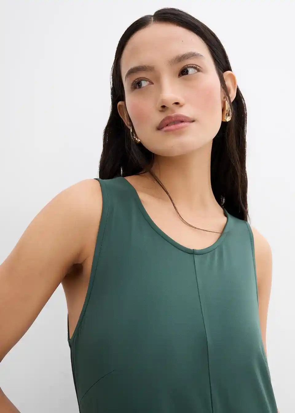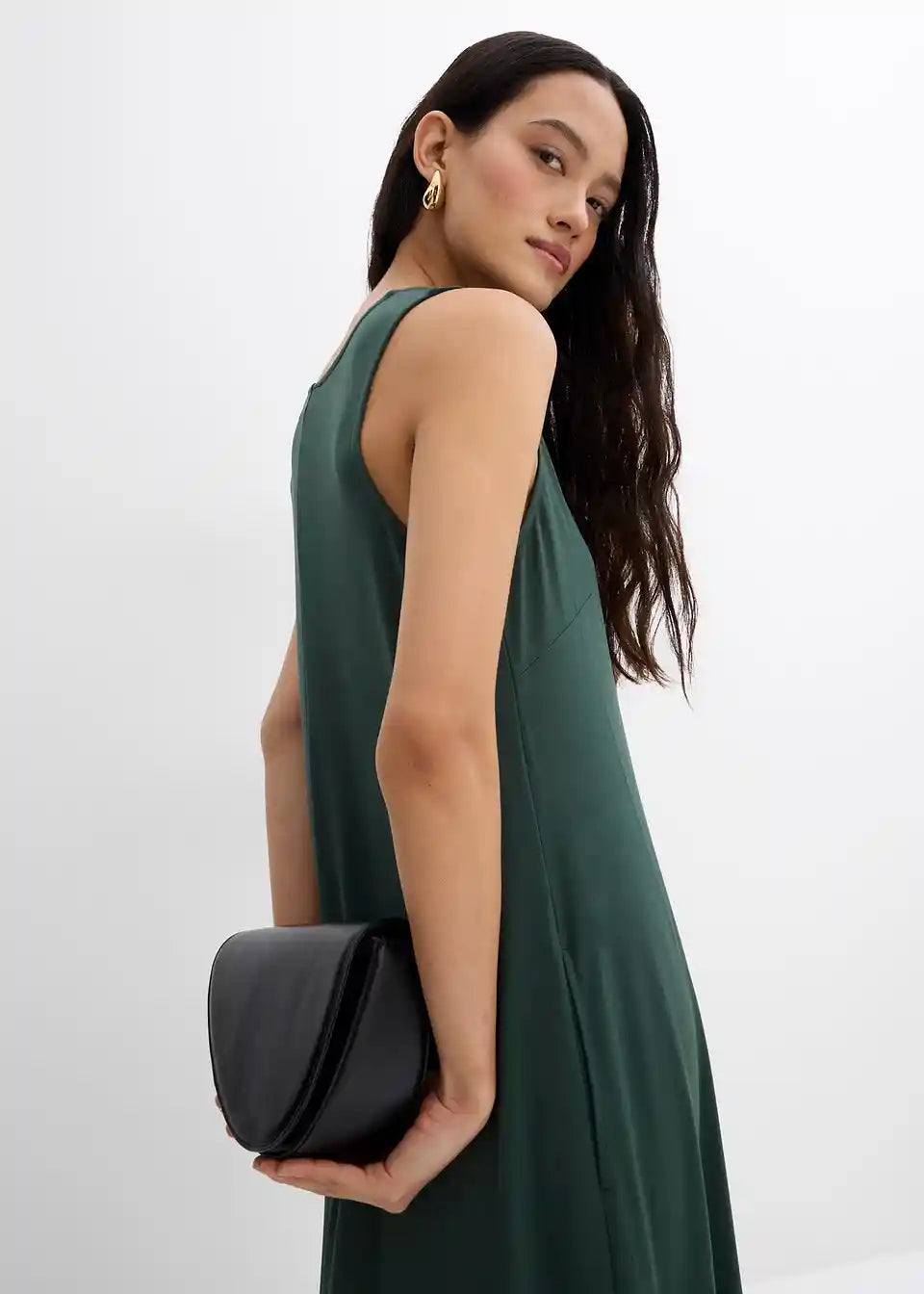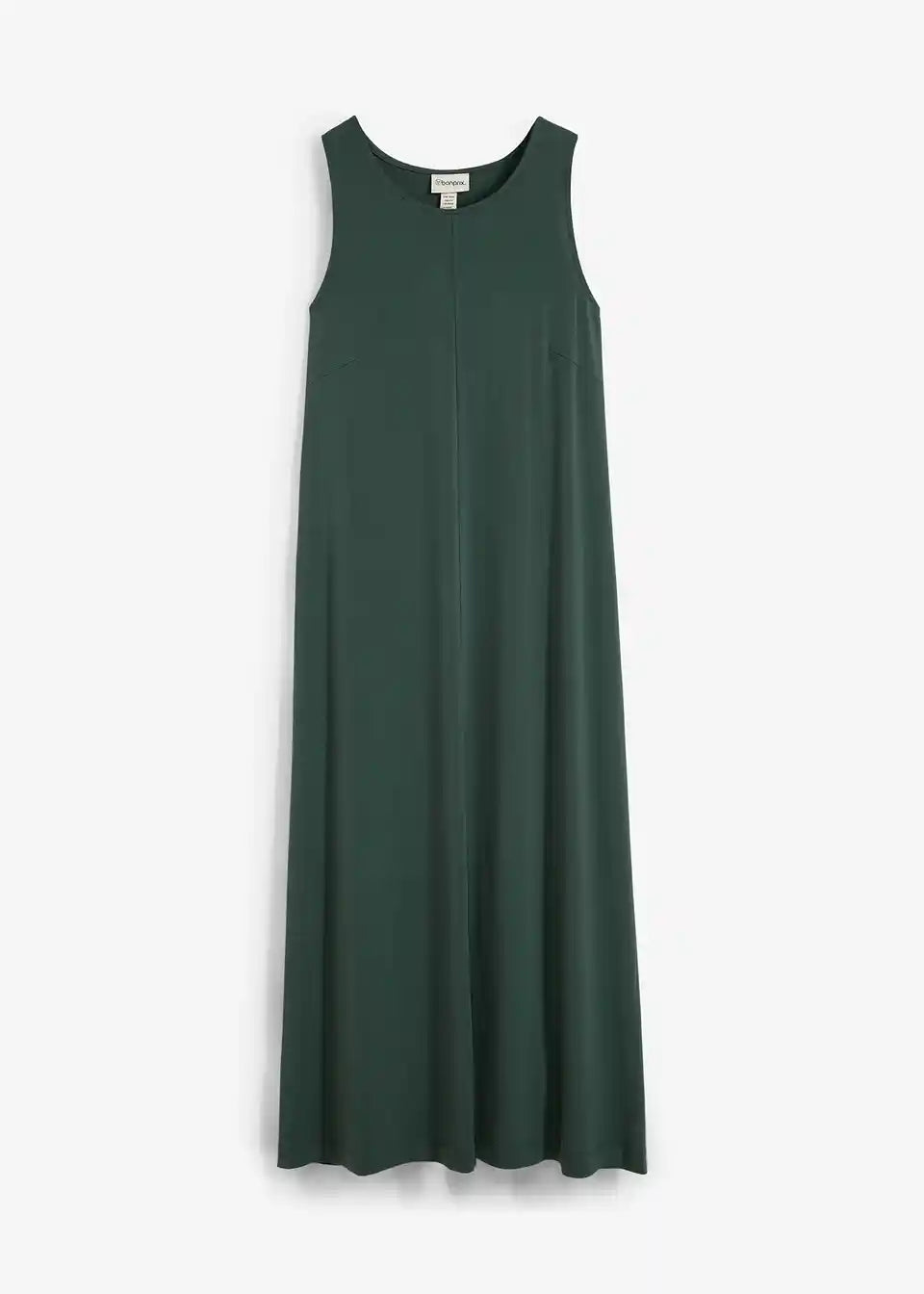 Razširjena brezrokavna obleka z žepi ob strani v midi dolžini