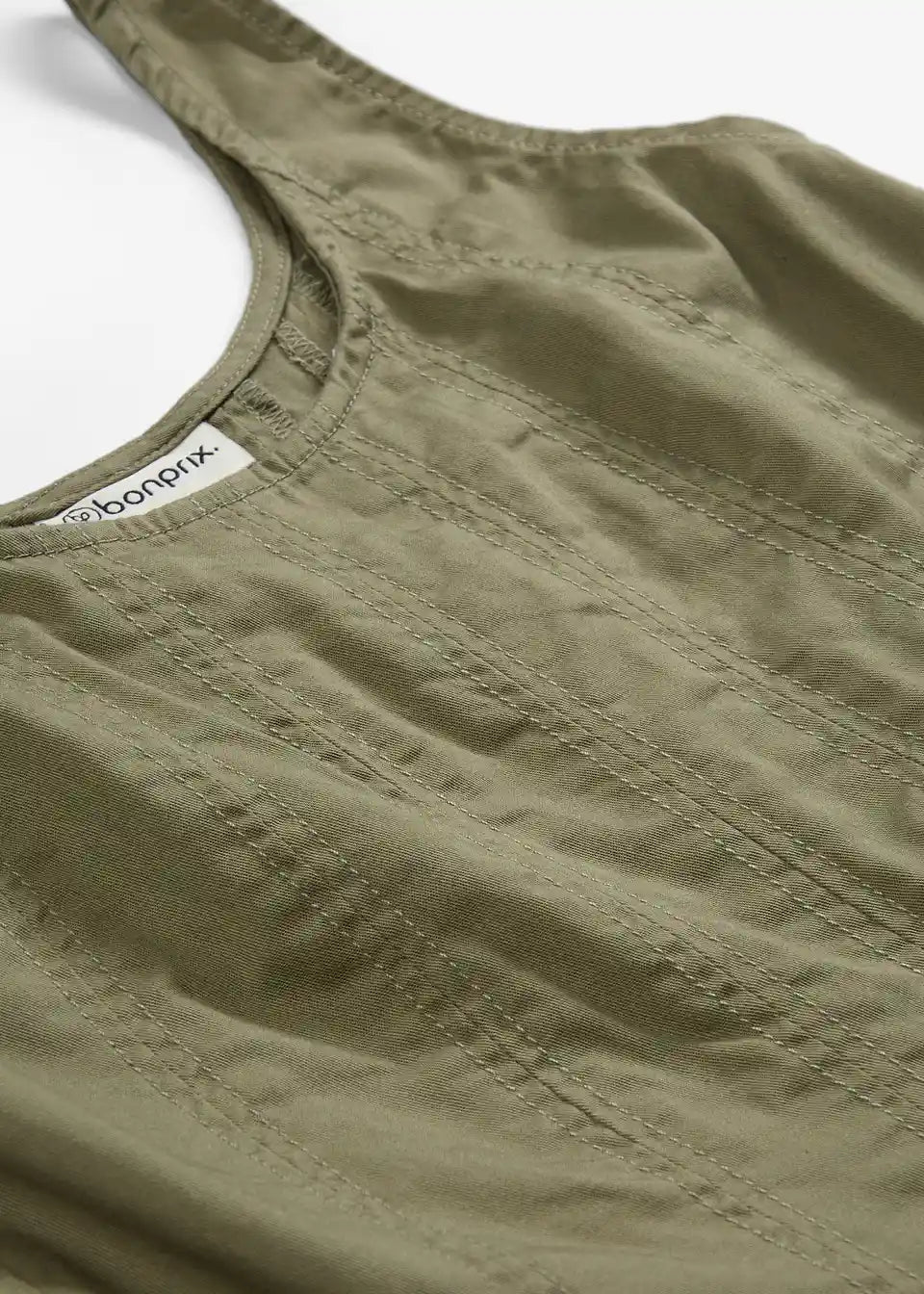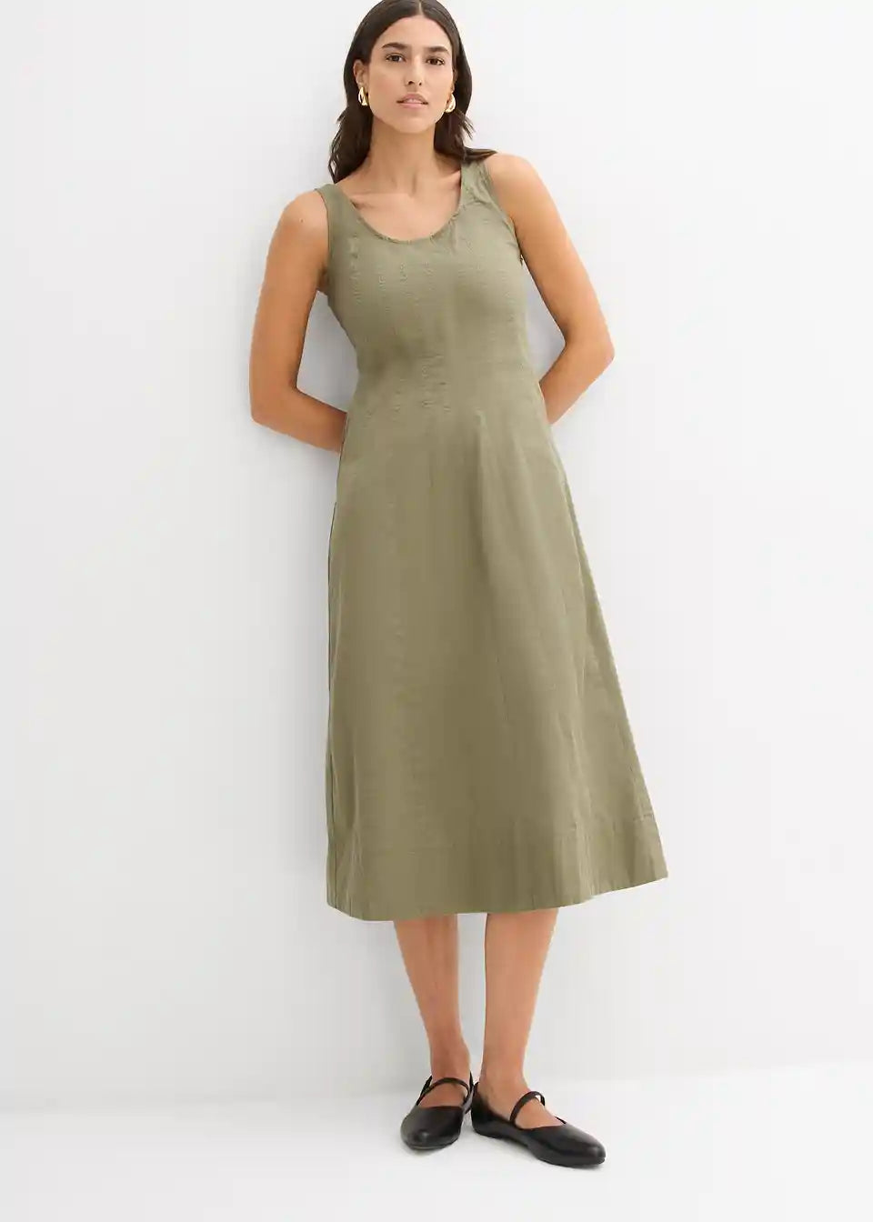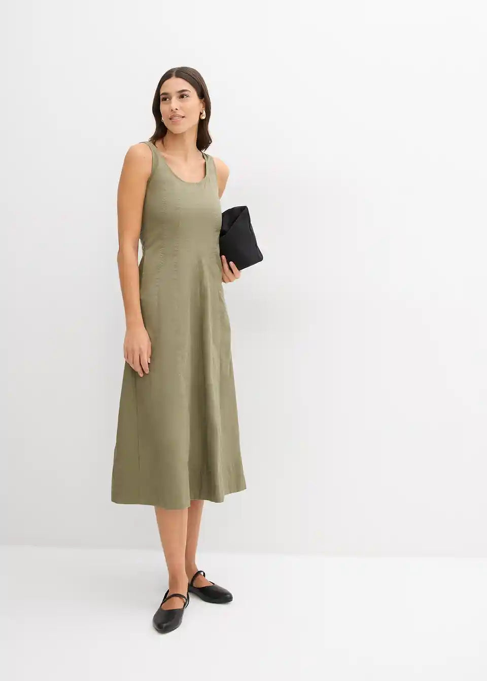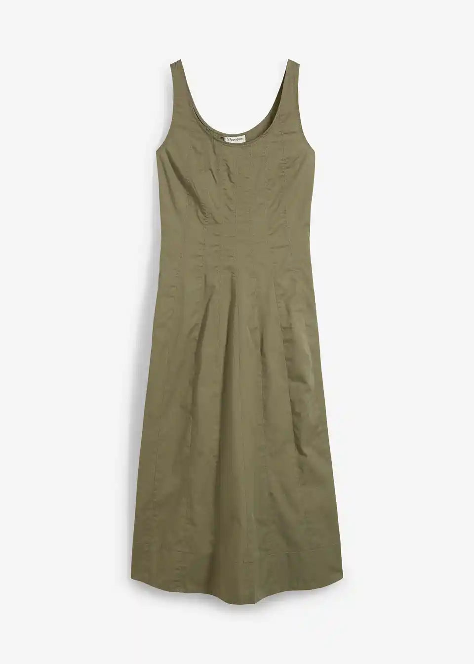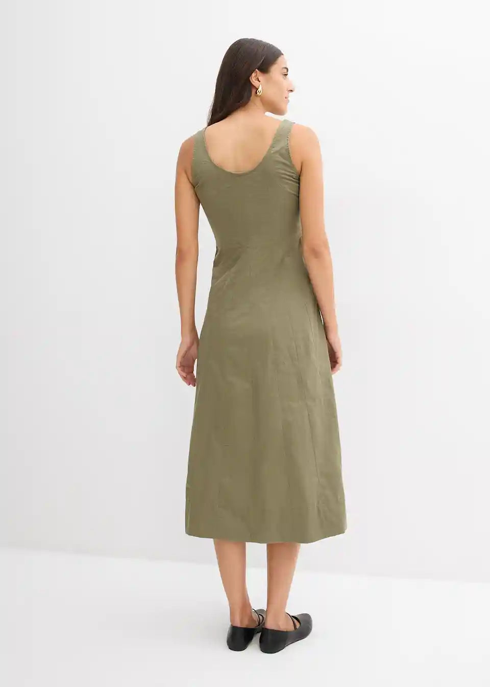 Brezrokavna MIDI obleka s prednjimi delilnimi šivi in globokim izrezom spredaj in zadaj