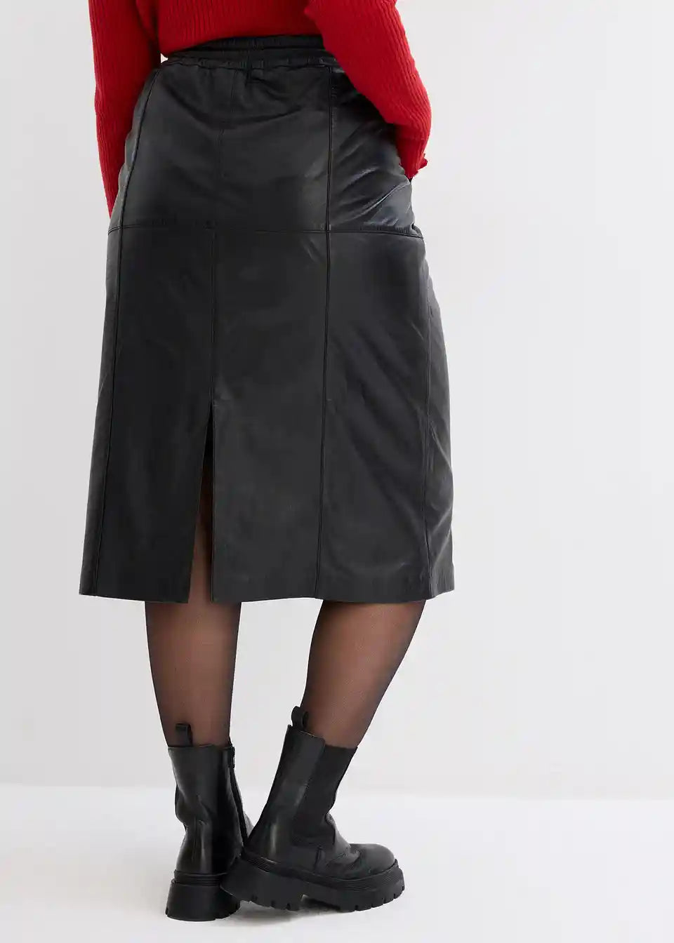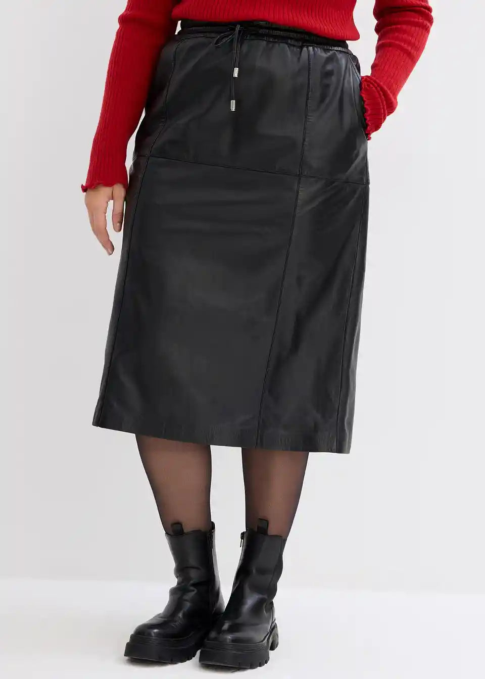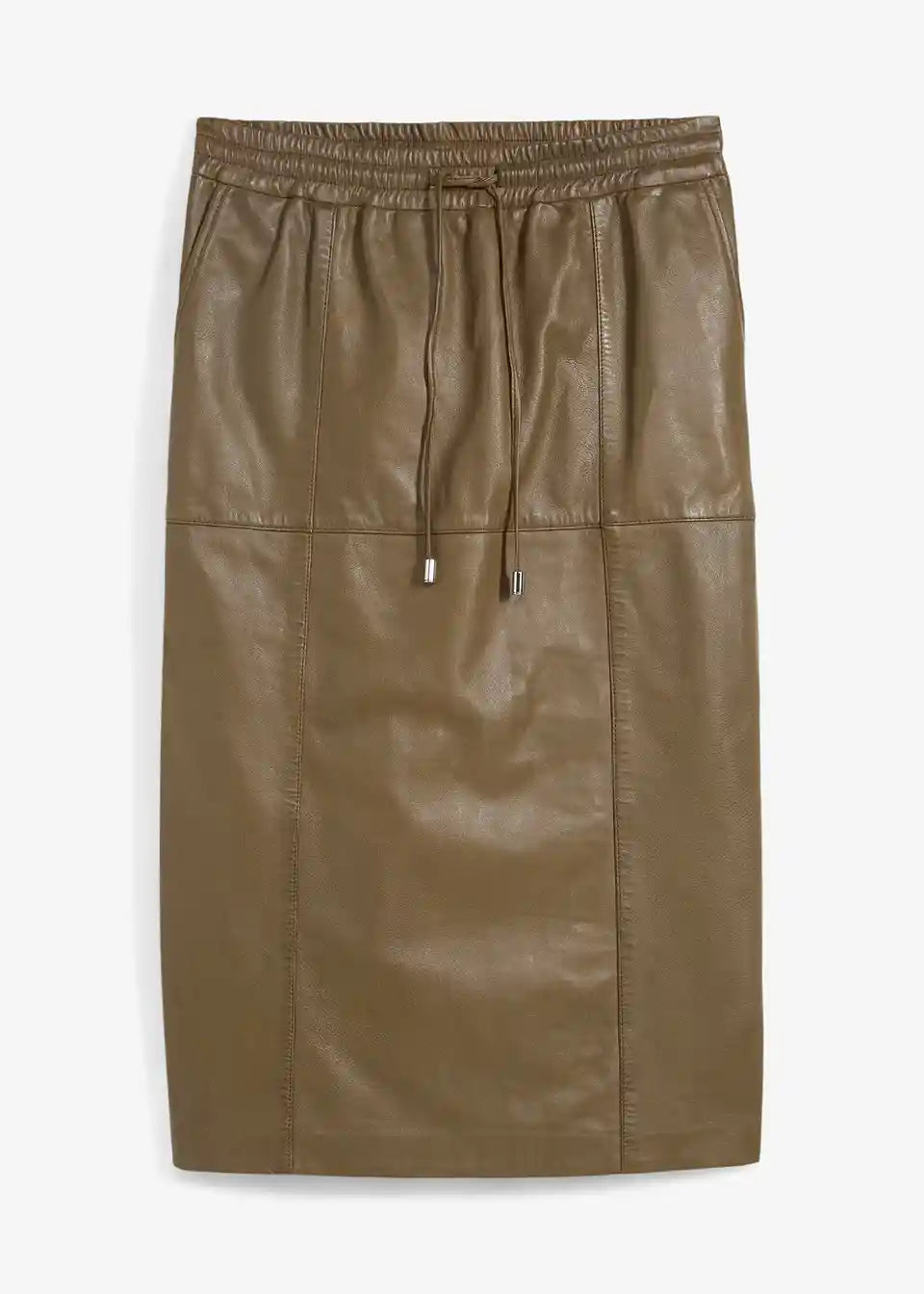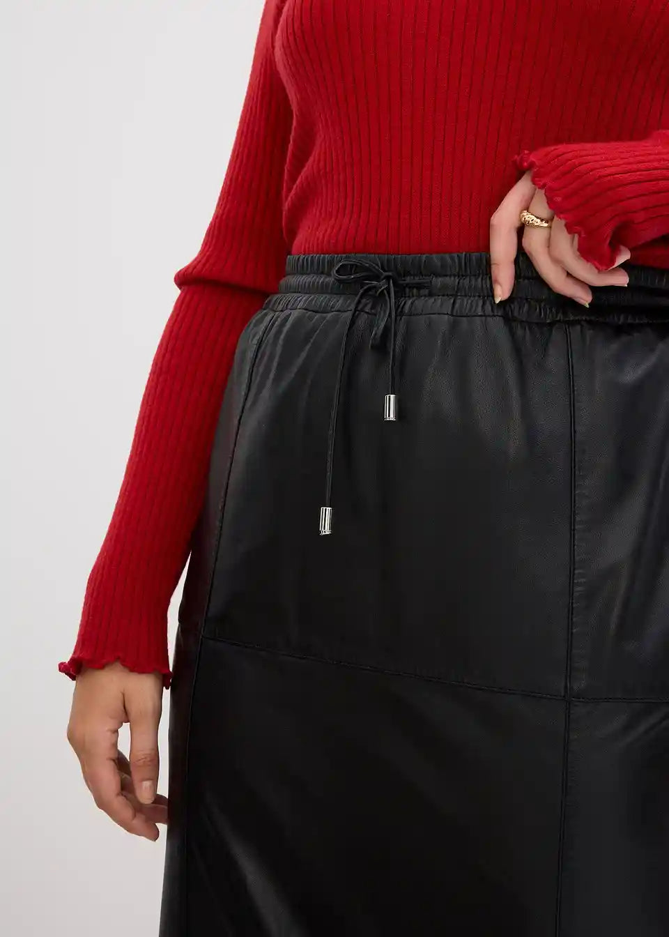 Mehko usnjeno krilo v dolžini midi s pasom za zavezovanje, popolnoma podloženo