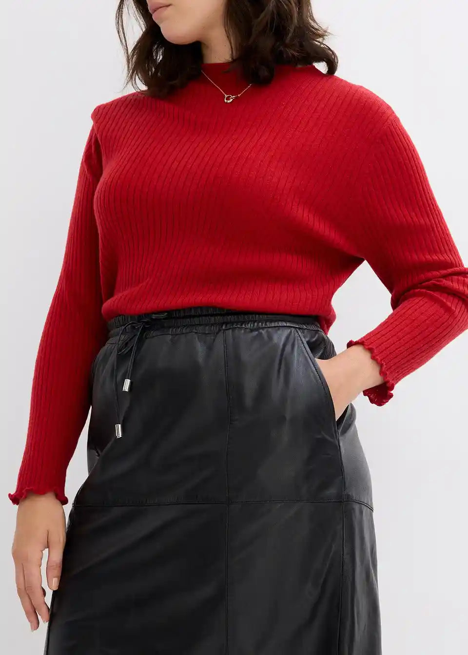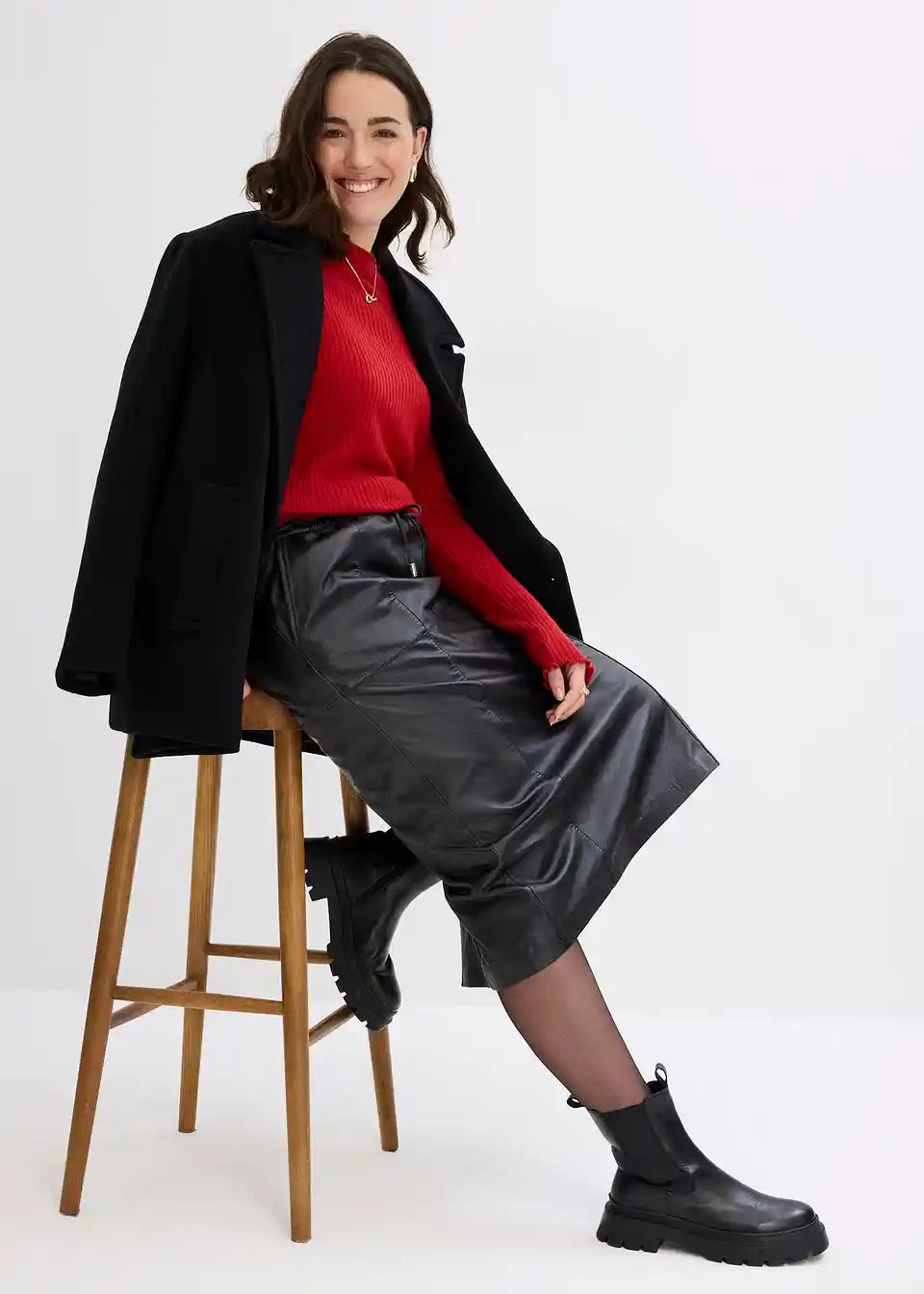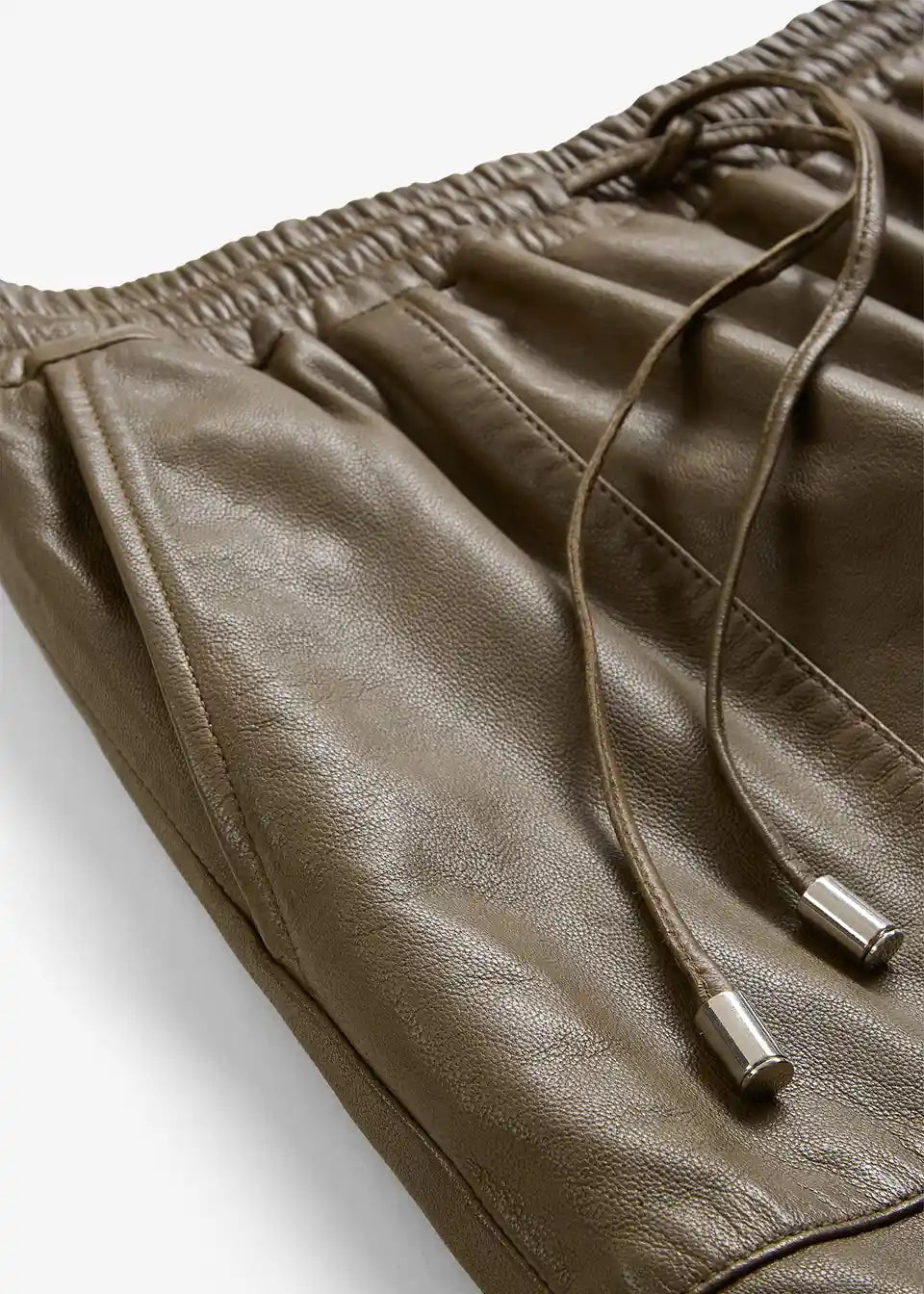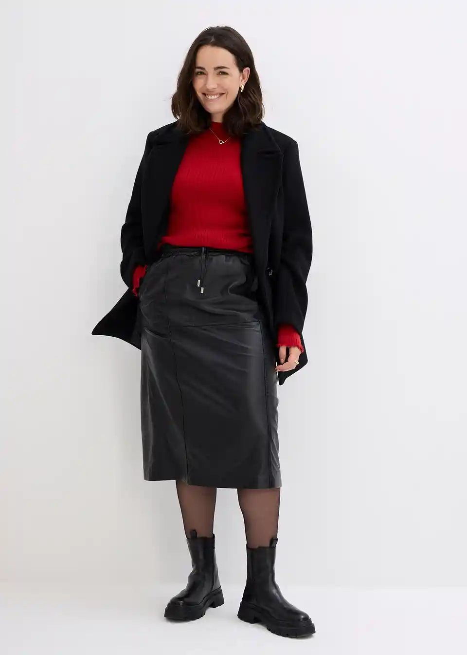 Mehko usnjeno krilo v dolžini midi s pasom za zavezovanje, popolnoma podloženo