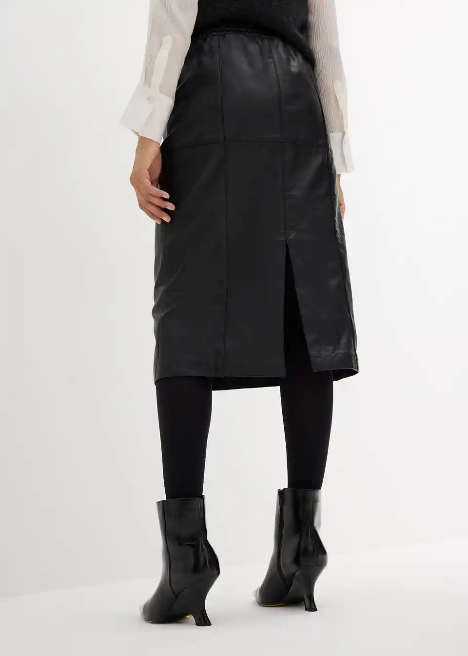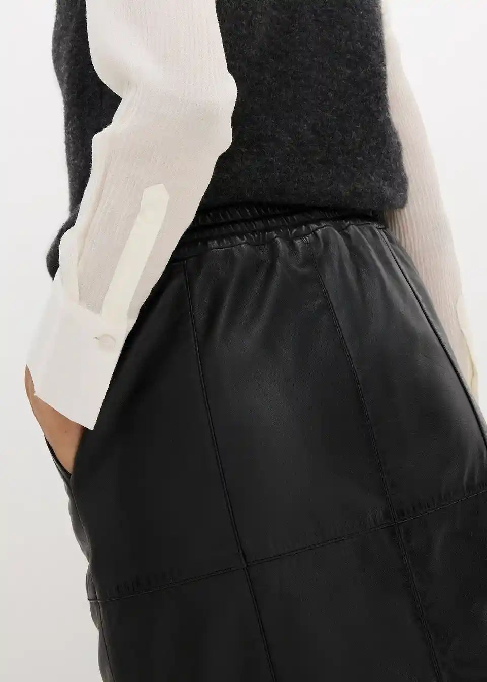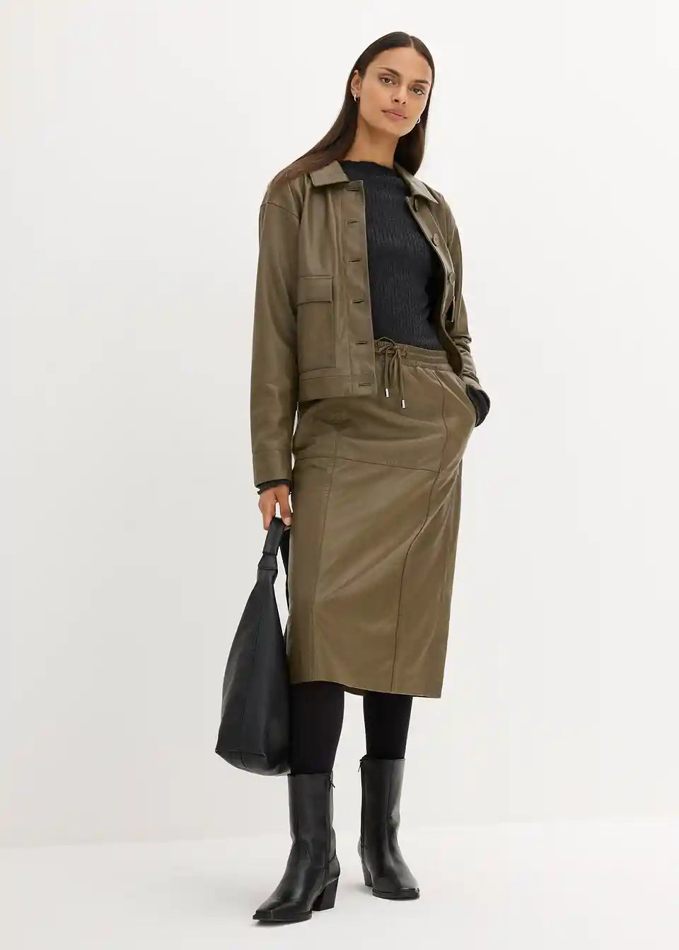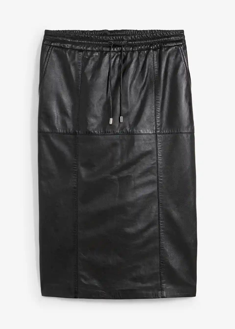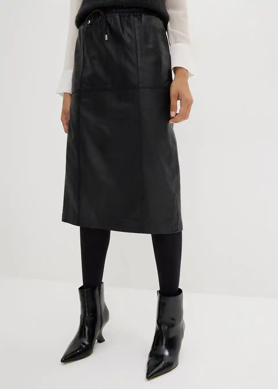 Mehko usnjeno krilo v midi dolžini z vezalnim pasom, v celoti podloženo