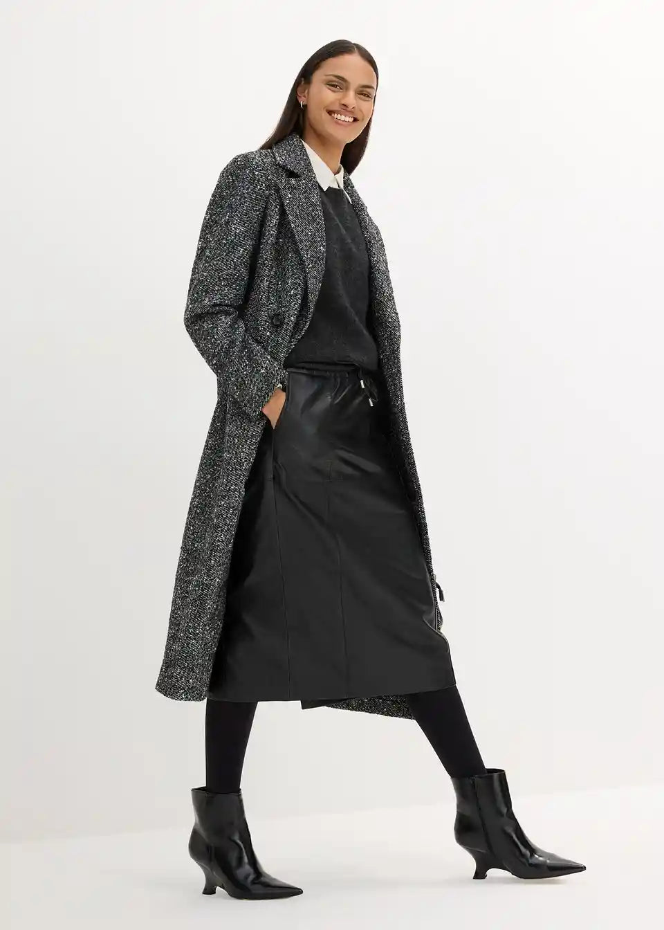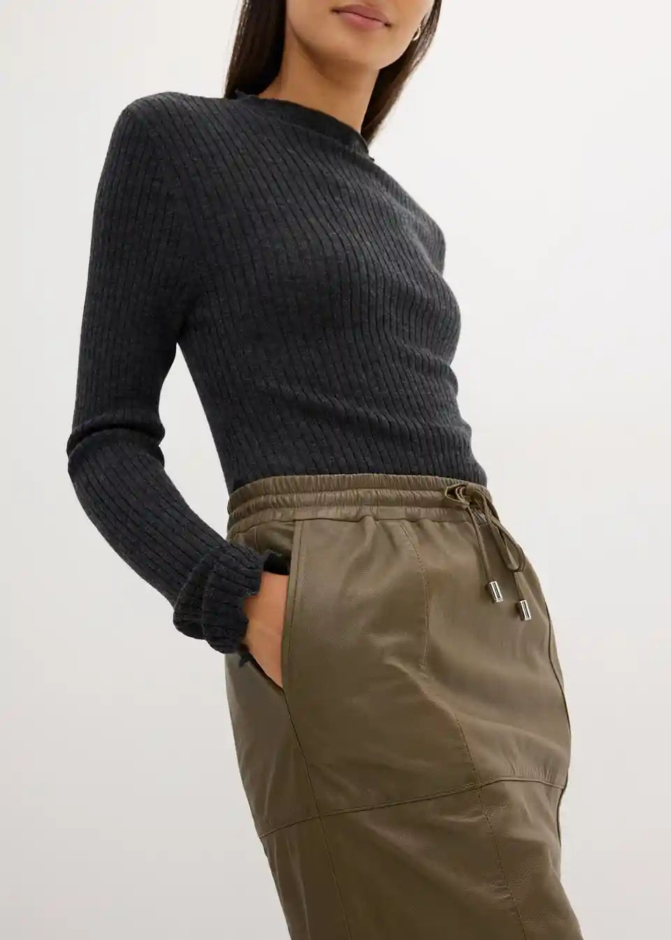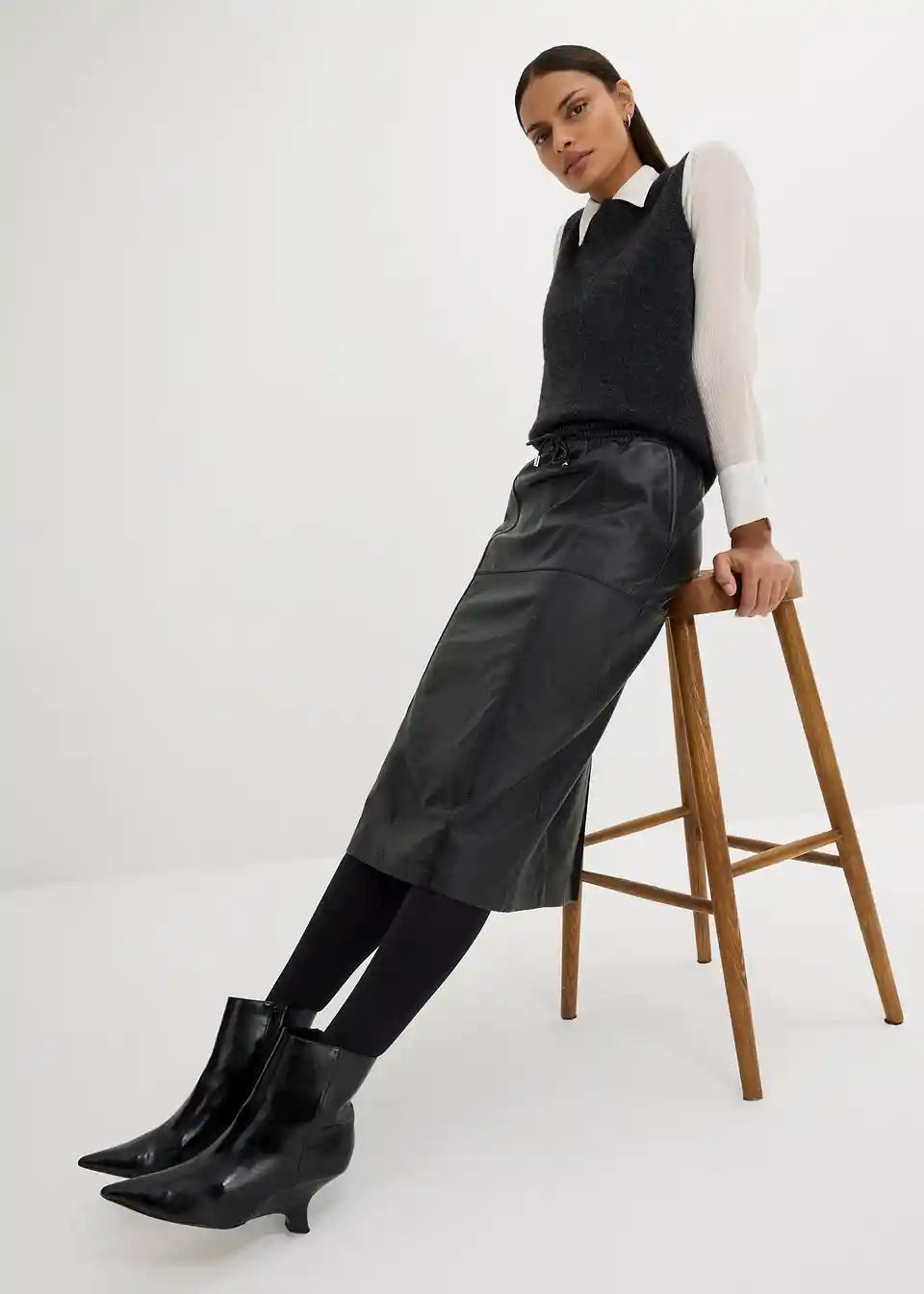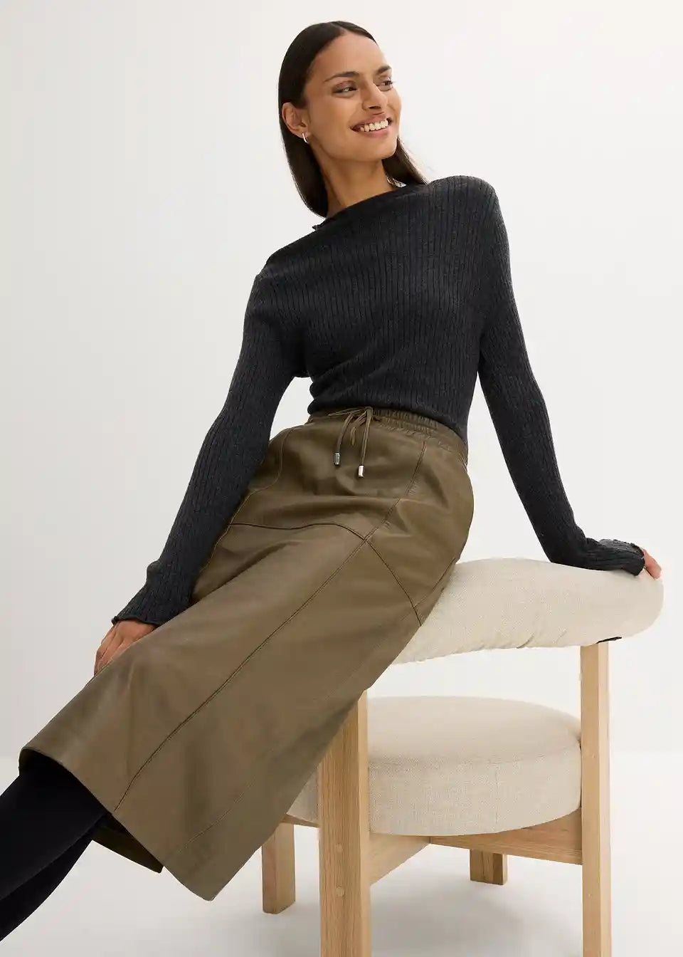 Mehko usnjeno krilo v midi dolžini z vezalnim pasom, v celoti podloženo