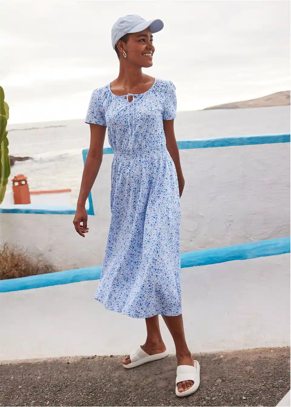 Midi obleka iz elastičnega materiala z deležem ekološkega bombaža