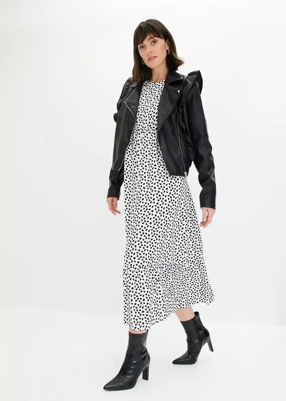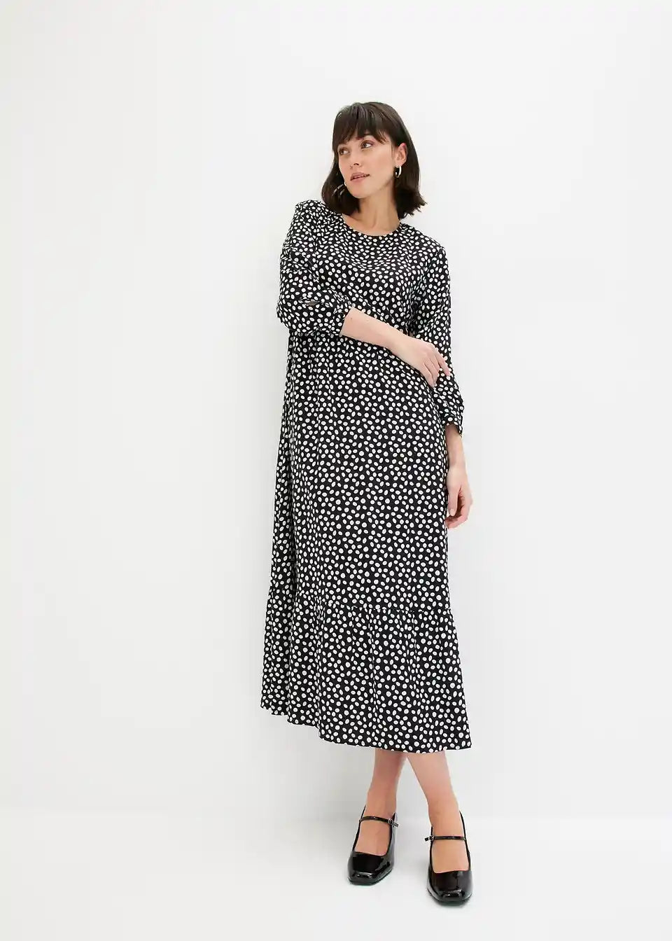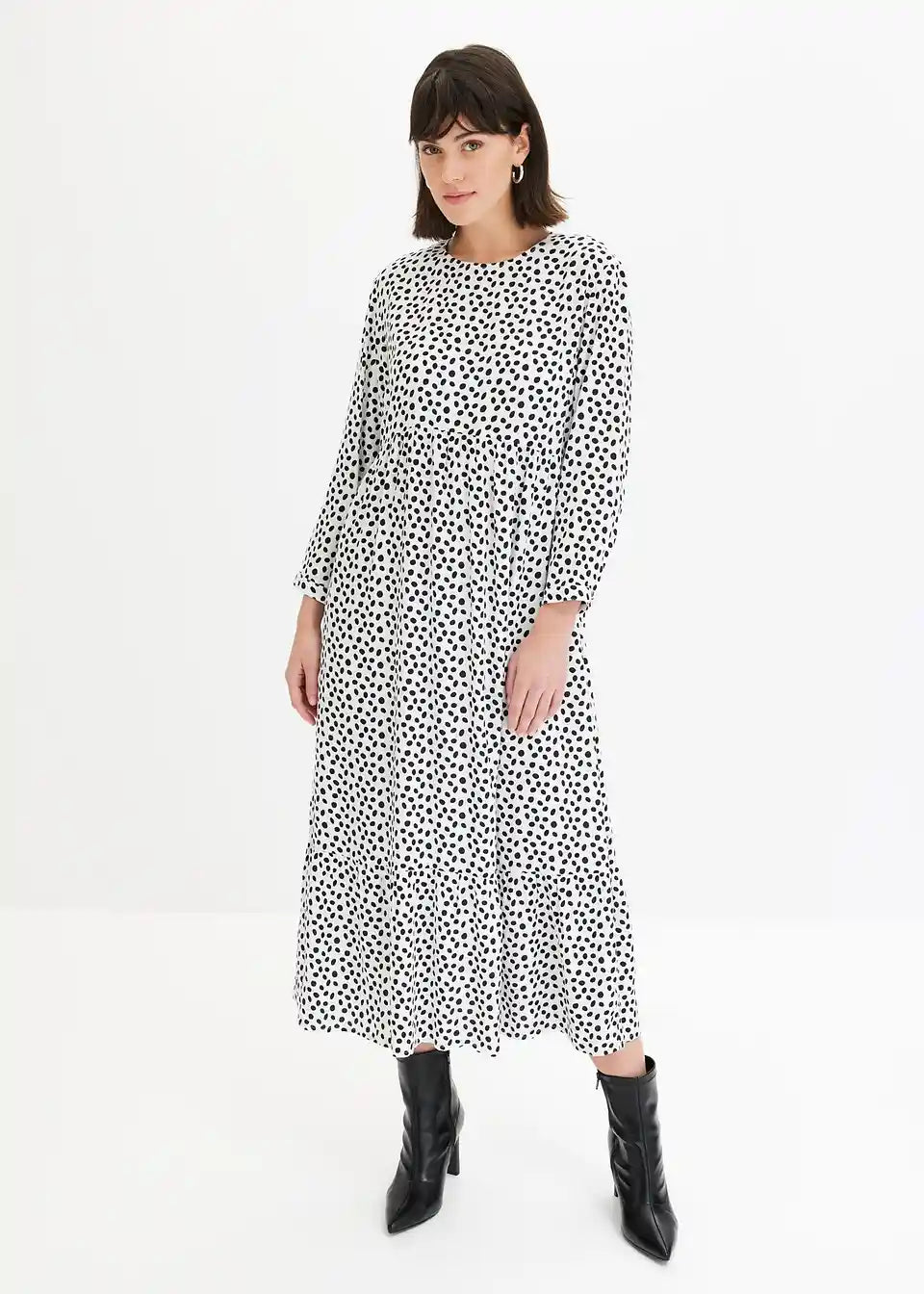 Midikleid z modnim pikčastim vzorcem